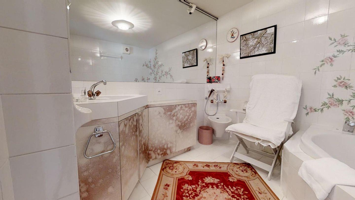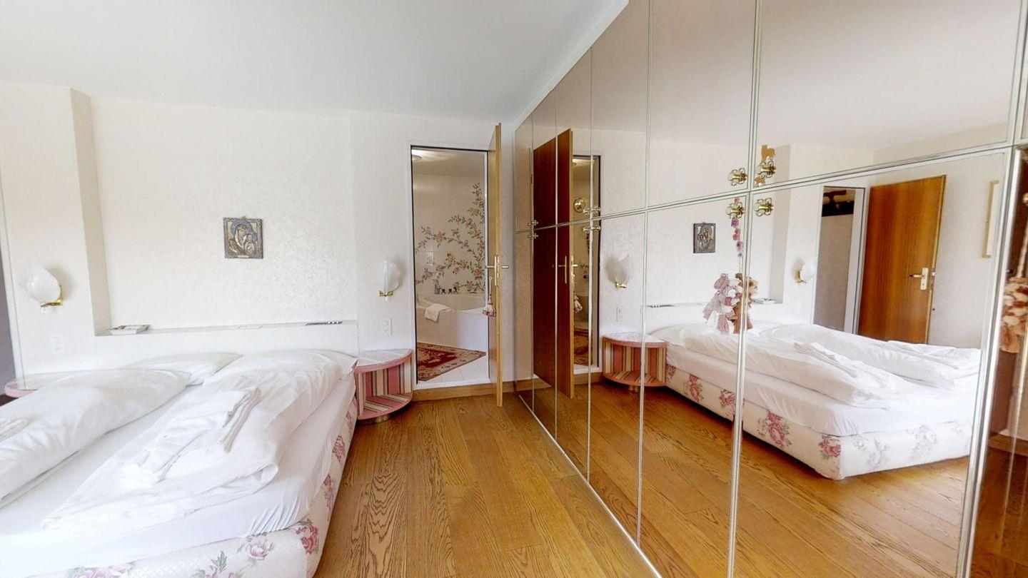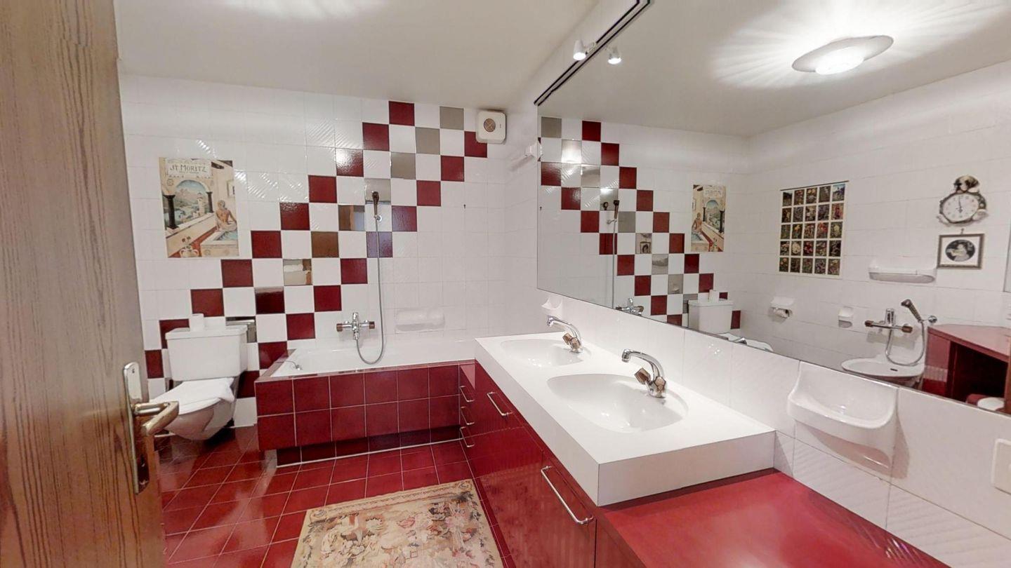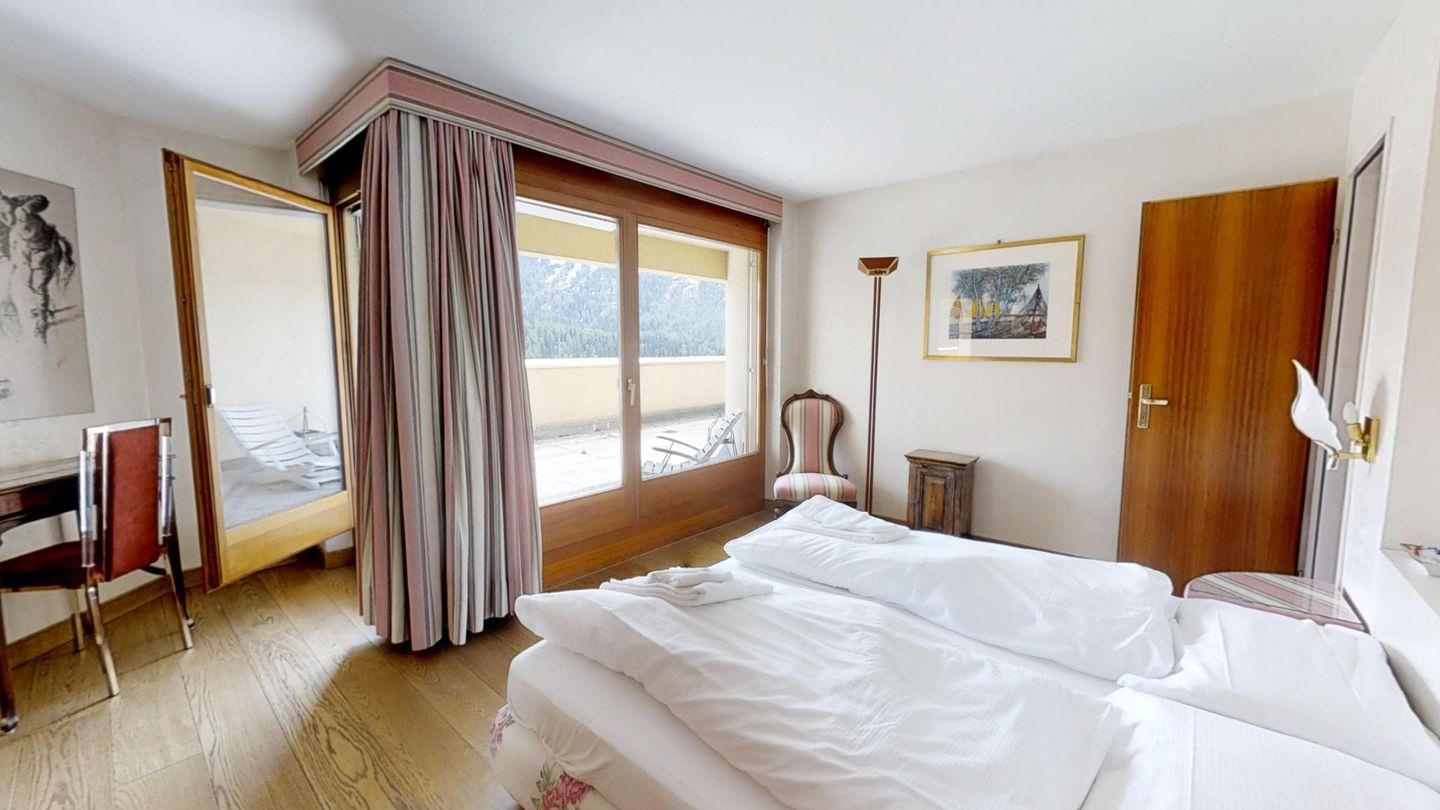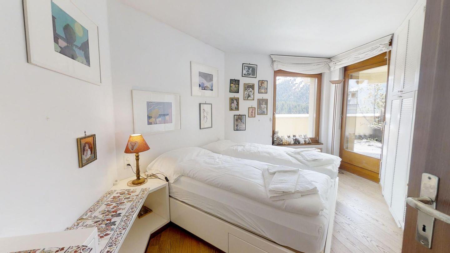4-Zimmerwohnung mit ca. 180 m². Eingang mit Garderobe. Grosszügiges Wohn- / Esszimmer, TV/DVD/Tel. mit Ausgang zur grossen Terrasse mit Blick auf den St. Moritzersee und die Berge. Separate Küche mit Backofen, Geschirrspüler, Kühlschrank. Ein Doppelzimmer mit Bad mit Wanne/Bidet/Lavabo/WC und Ausgang auf die Terrasse. Ein Bad mit Wanne/WC/Lavabo und Bidet. Ein Doppelzimmer mit Ausgang auf die Terrasse. Ein drittes Bad mit Wanne/Doppellavabo/Bidet und WC. Ein zweites Wohnzimmer mit TV und zwei Schlafsofas, mit Ausgang auf die Terrasse. Waschküche zur Mitbenützung. 2 Garagenplätze. Haustiere sind nicht erlaubt.