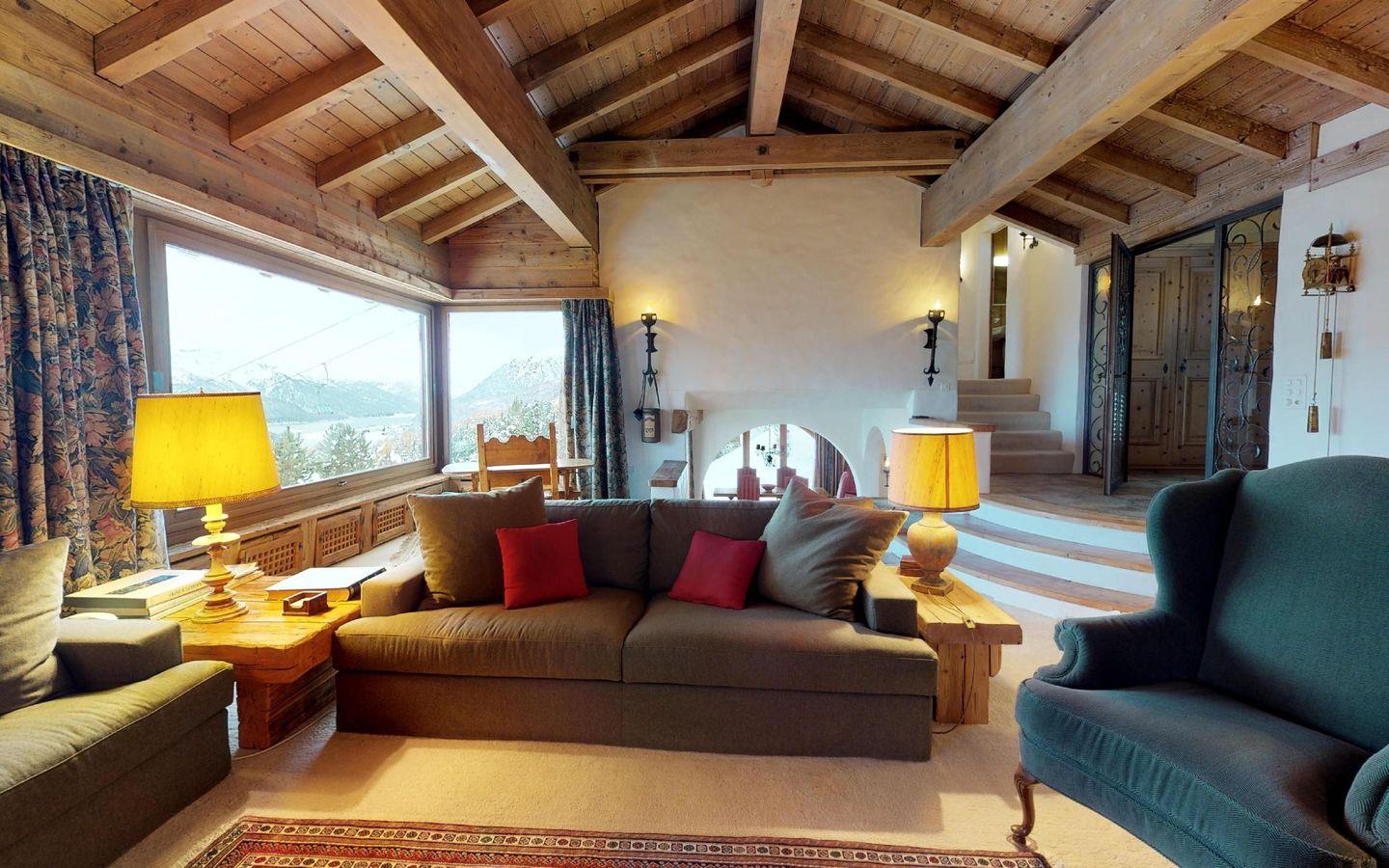 Super attraktive, persönliche Villa im exklusiven Suvretta-Gebiet. Traumhafte Lage mit perfekter Aussicht auf die Seen, die Berge und das Tal. Ski in - Ski out. Ganz in der Nähe vom Suvretta-Skilift. 3 Gehminuten zur Skipiste. 8 Autominuten vom Zentrum St.Moritz entfernt.
