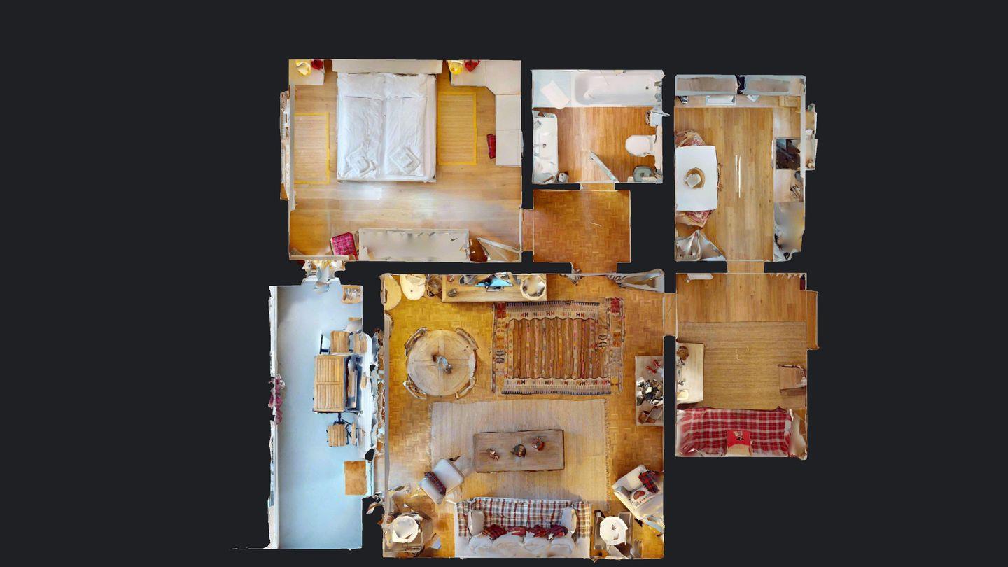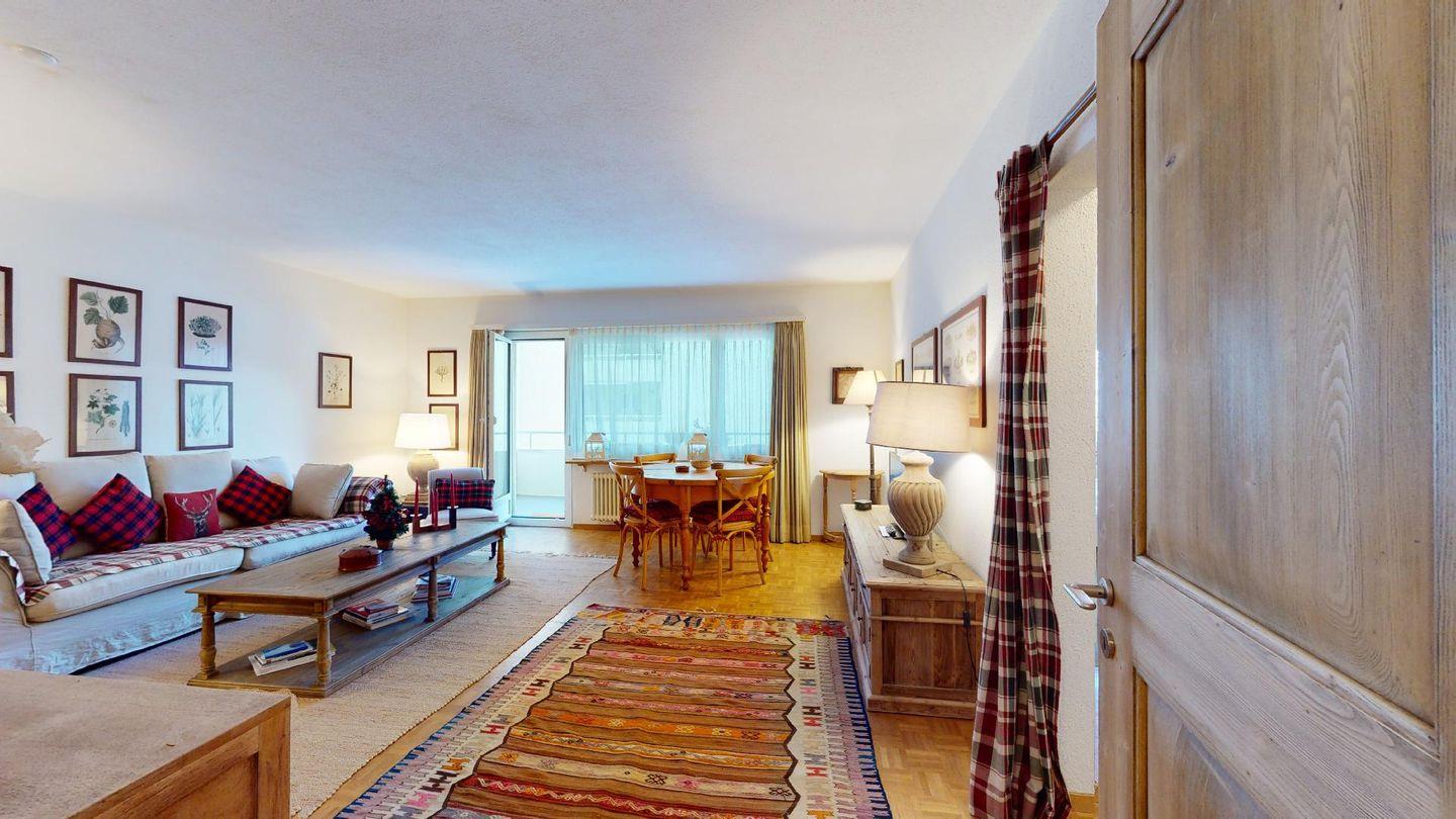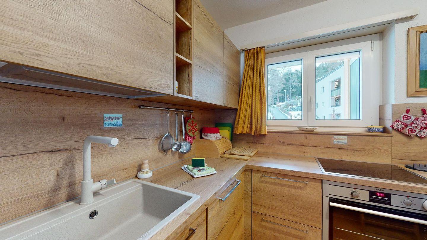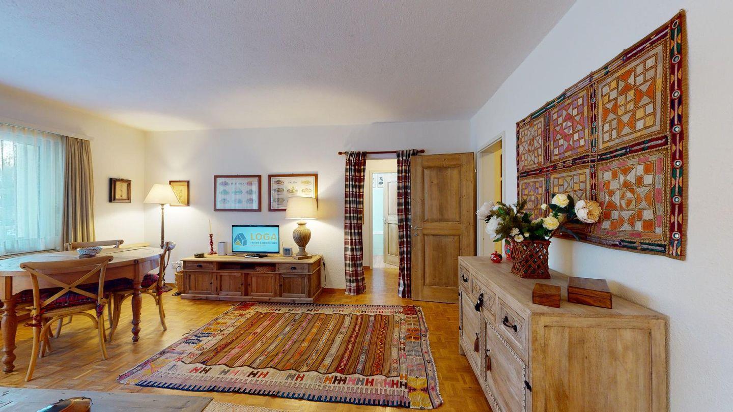 2½ -Zimmerwohnung ca. 72 m² auf der ersten Etage, mit Lift. Entree mit Garderobe und einem Einzelbett. Wohn-/ Esszimmer mit Ausgang zum Süd-Balkon. Radio/TV und Internet. Separate Küche mit Fenster, Geschirrspüler, Backofen, Kühlschrank mit kleinem Gefrierfach. Bad/WC/Bidet/Lavabo. Doppelschlafzimmer. Waschküche zur Benützung (gegen Bezahlung). Garagenboxparkplatz (nicht für grössere Autos geeignet). Kein Ski- oder Veloraum