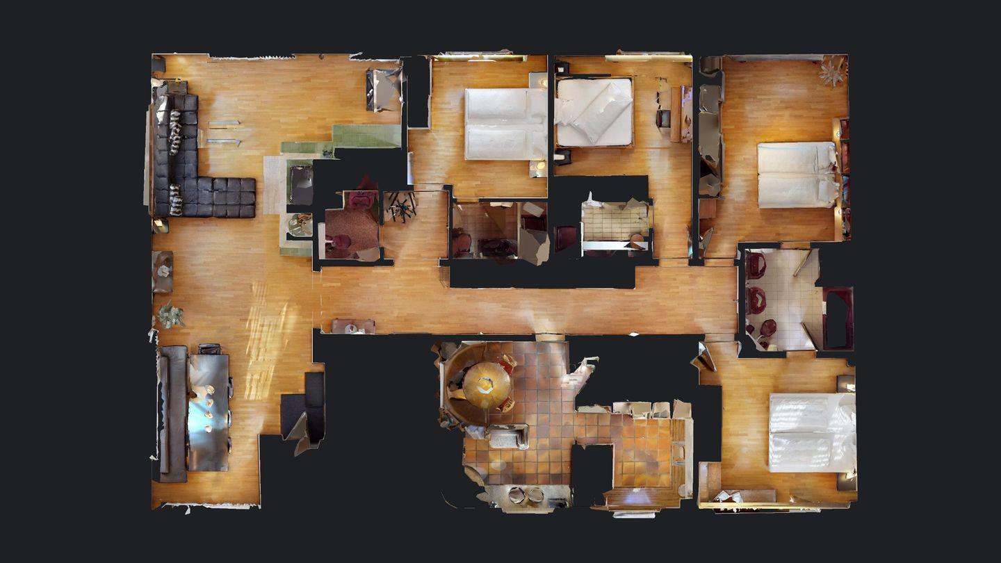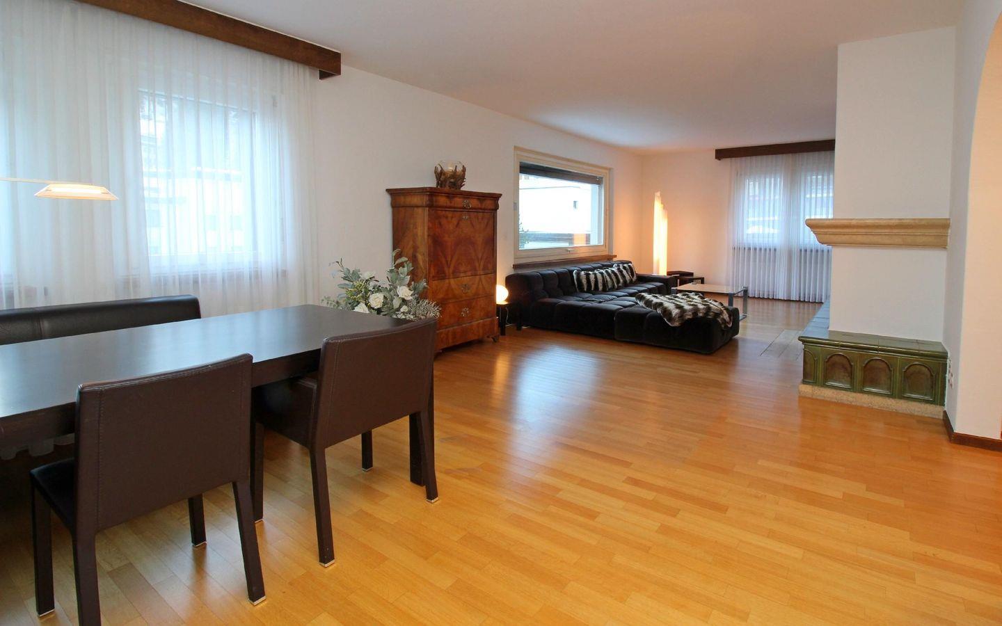 Sehr grosszügige und komfortable 5-Zimmer Ferienwohnung im obersten Stock des Hauses. Mit dem Lift gelangen Sie direkt in den hellen Wohn-/Essbereich mit Kamin. Separate, komplett ausgestattete Küche mit Esstisch. Gäste-WC. 1 Schlafzimmer mit Doppelbett, Bad/DU, 2 Schlafzimmer mit Doppelbetten verbunden durch Badezimmer mit Badewanne/DU, Doppelwaschbecken/WC. 1 weiteres Schlafzimmer mit Bad/DU. 1 Garagenparkplatz im Parkhaus "Quadrellas" gegenüber der Wohnung inklusive. Weitere Parkplätze gegen Gebühr möglich.