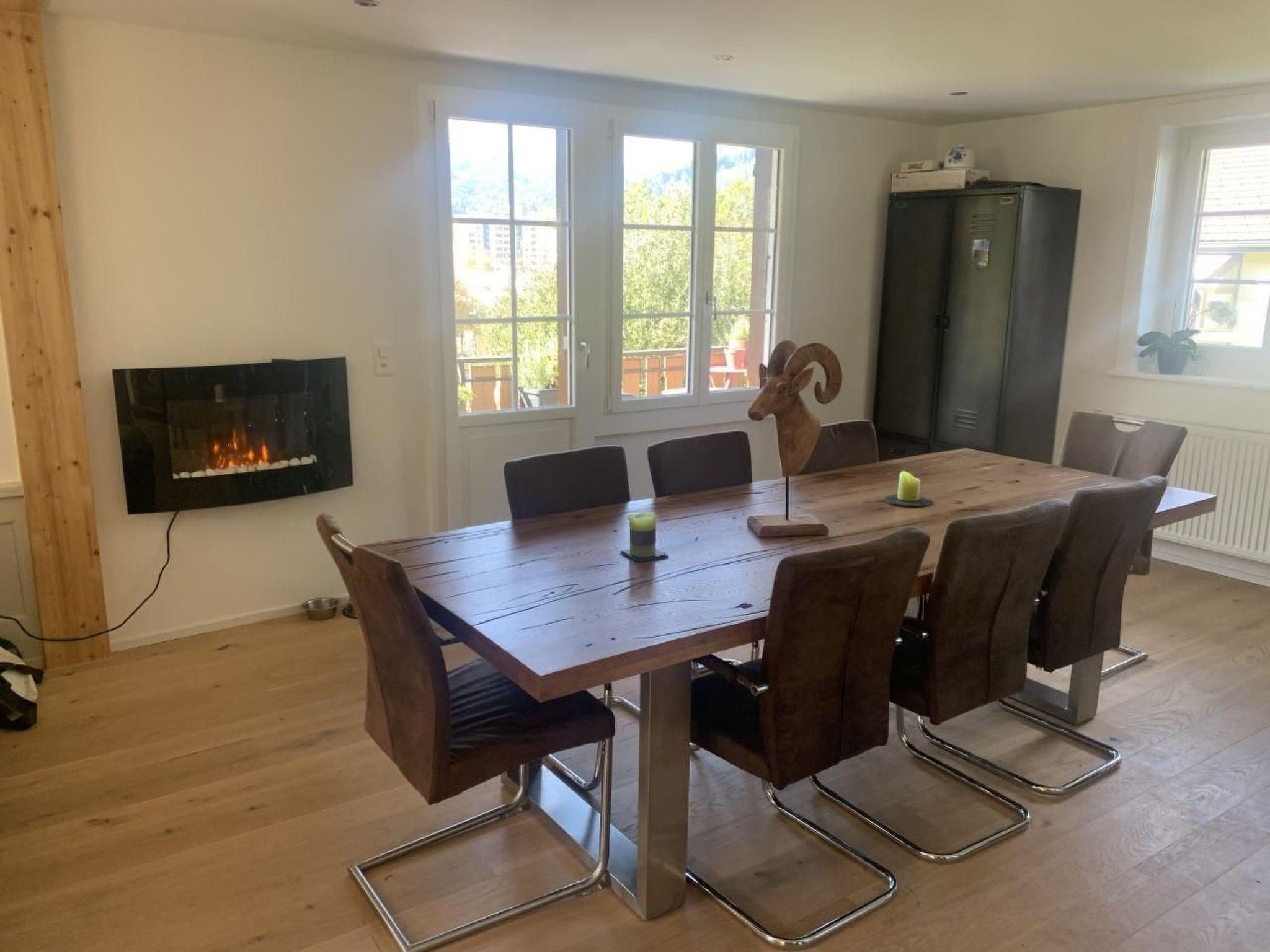 Other kitchen equipment (Kitchen1): Open-plan fitted kitchen with bar for 2 people. The dining area has a beautiful solid wood table for up to 8 people, a fondue pot, a raclette oven and a monk's head chanterelle (a Jura speciality cheese).