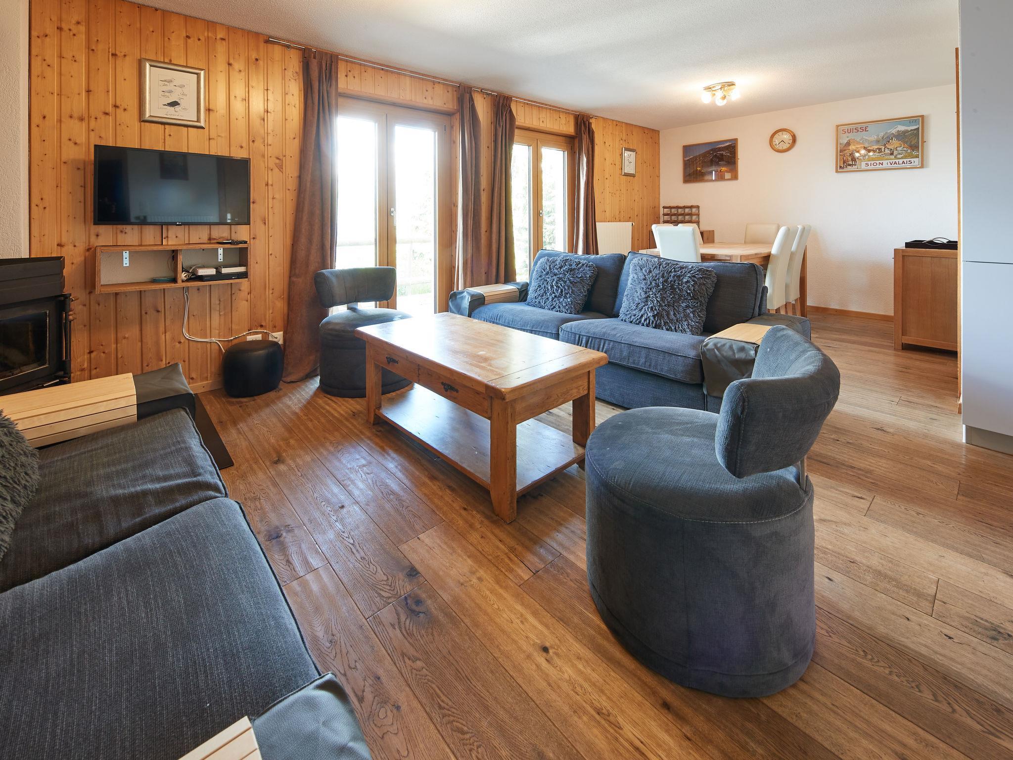 Chalet "Muraz I", 1'800 m a.s.l.. 5 apartments in the residence. 250 m from the centre of Les Collons, on the outskirts, 9 km from the centre of Vex, 18 km from the centre of Sion, 10 m from the skiing area. For shared use: natural state property. In the house: washing machine, tumble dryer (for shared use, extra). 200 m footpath to the house. Parking (limited number of spaces, extra) at 200 m. Shop 250 m, supermarket 150 m, bus stop "Sporting" 1.4 km, railway station "Sion" 18 km, indoor swimming pool 5 km. Ski lift 100 m, slopes 10 m. Please note: In case of good snow conditions, the house is accessible on skis. The keys‘ handover takes place by the agency Imalp SA in Les Collons.