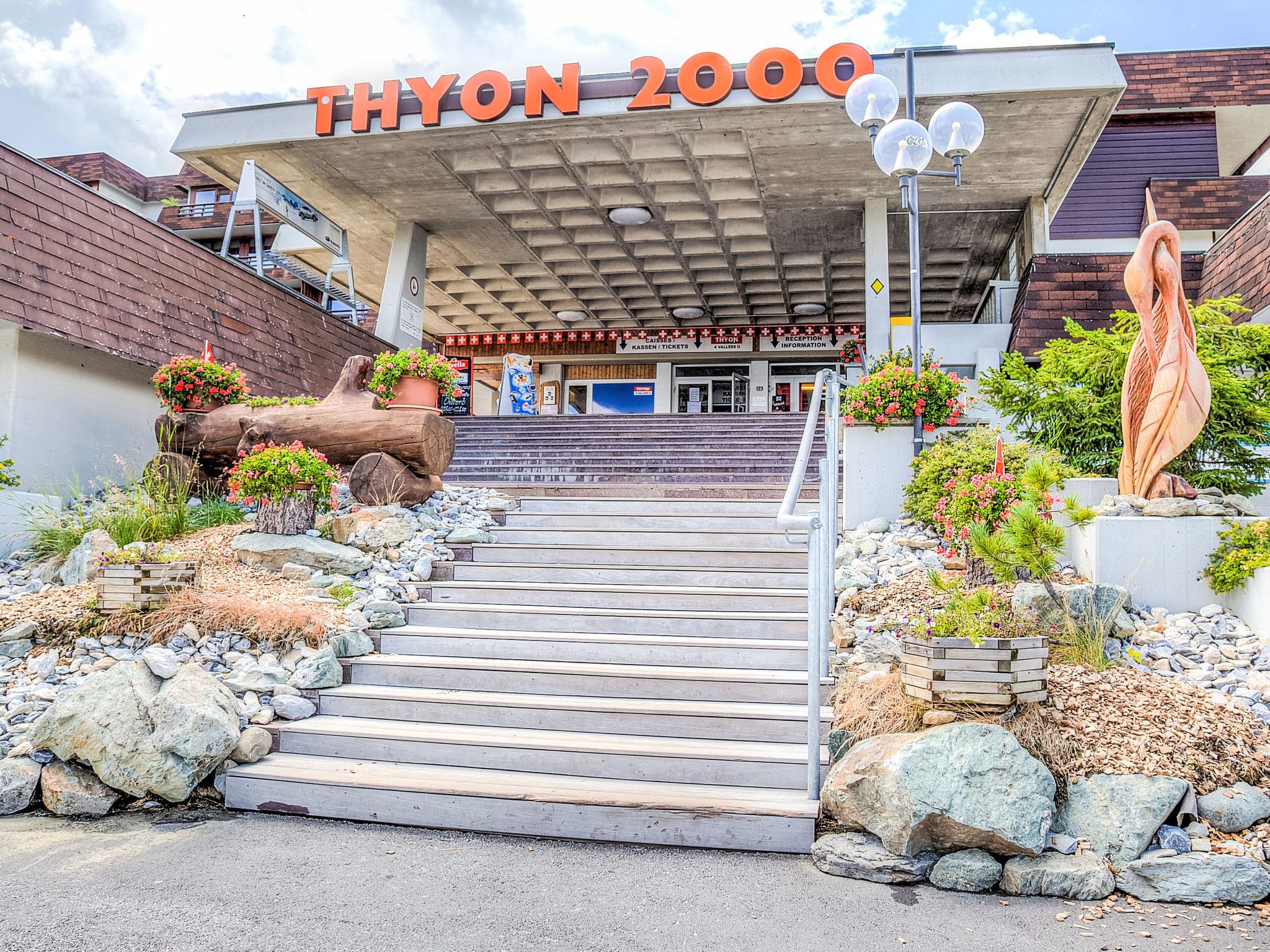 Resort. In the resort, 20 m from the skiing area. For shared use: indoor pool (seasonal availability: 14.Dec. - 10.Apr. and 13.Jul. - 24.Aug. pool opening hours: 10:00-12:00 and 15:00-19:00). In the house: storage room for skis, central heating system. Parking (extra), communal covered parking (extra). Grocery 100 m, restaurant, bus stop 20 m. Walking paths from the house 1 m, ski lift 100 m, slopes 20 m. Please note: car recommended. The keys‘ handover takes place by the agency Imalp in Thyon.