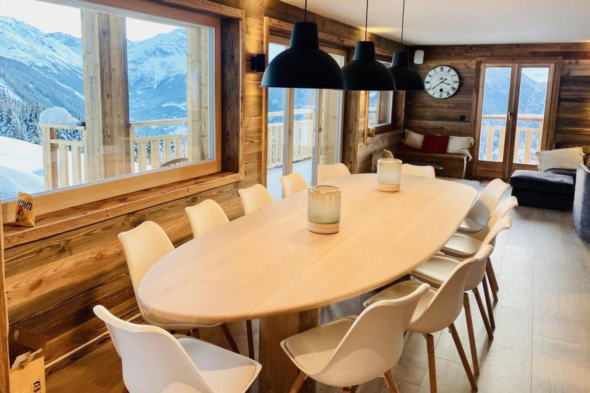 Denne fuldstændig renoverede hytte, beliggende i en højde af 1930 meter i hjertet af 4 Vallées skiområde, tilbyder en perfekt bjergflugt. Med en kapacitet til at være vært for op til 14 personer, har den fem velindrettede soveværelser, herunder fire dobbeltværelser og en rummelig sovesal. Gæsterne kan nyde varmen fra gulvvarme og en hyggelig stue med Stuv-komfur, store sofaer og en Netflix-konto til underholdning. Hytten er udstyret med et fuldt møbleret køkken, herunder en Nespresso-kaffemaskine, induktionskomfur, opvaskemaskine og raclette- og fonduemaskiner for en smag af schweizisk tradition. Hyttens førsteklasses beliggenhed gør den ideel til både vinter- og sommeraktiviteter. Om vinteren kan du stå på ski direkte fra hytten og nyde en ski-in-adgang til pisterne. Om sommeren byder området på en bred vifte af aktiviteter, herunder vandreture, mountainbiking og via ferrata. Lokale butikker og fritidsfaciliteter er kun en kort 5,2 km kørsel væk, og tilbyder alt hvad du behøver for et bekvemt ophold. Hytten har også en stor sydvendt terrasse med en betagende udsigt over det omkringliggende landskab, hvilket gør det til et idyllisk sted at slappe af efter en dag på pisterne eller stierne. For ekstra komfort tilbyder hytten tre moderne badeværelser, en garderobe med bænke, et skirum og et vaskerum med en vaskemaskine-tørretumbler kombination. Hyttens faciliteter inkluderer også et spilleområde, et kontorområde og et stort spisebord med plads til op til 14 personer, perfekt til familiemåltider eller gruppesammenkomster. Bemærk, at hytten er røgfri, og kæledyr er ikke tilladt. Med en jacuzzi tilgængelig fra julen 2024 sikrer denne hytte et virkelig luksuriøst ophold for gæsterne.