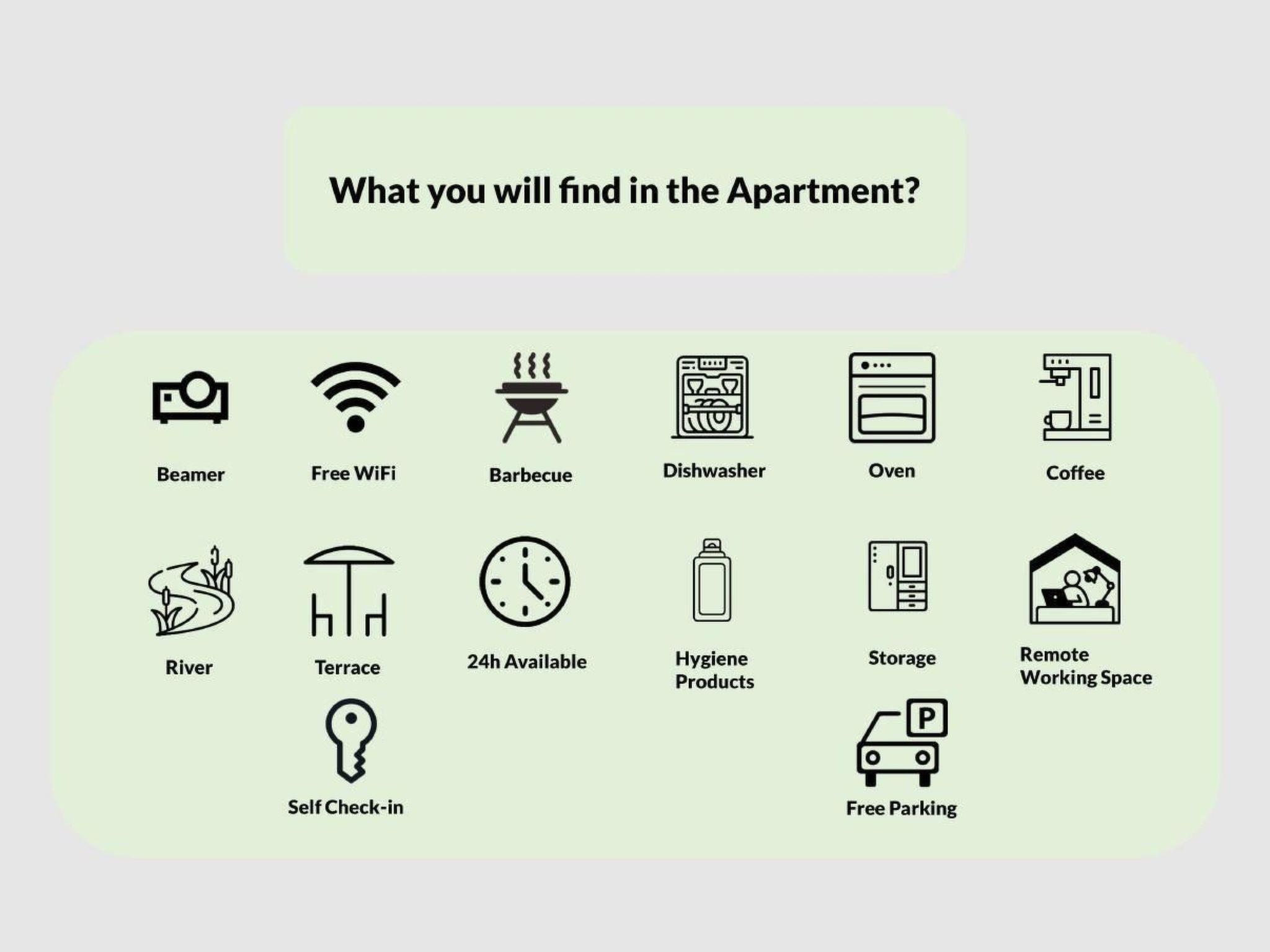 Your personally marked car park directly in front of the house makes your arrival easier. A relaxed check-in via key safe gives you access to the flat via the terrace entrance, from where you can enjoy the beautiful view of the River Aare. The garden area has a terrace and a lounge area including a gas barbecue - ideal for cosy hours outdoors.
