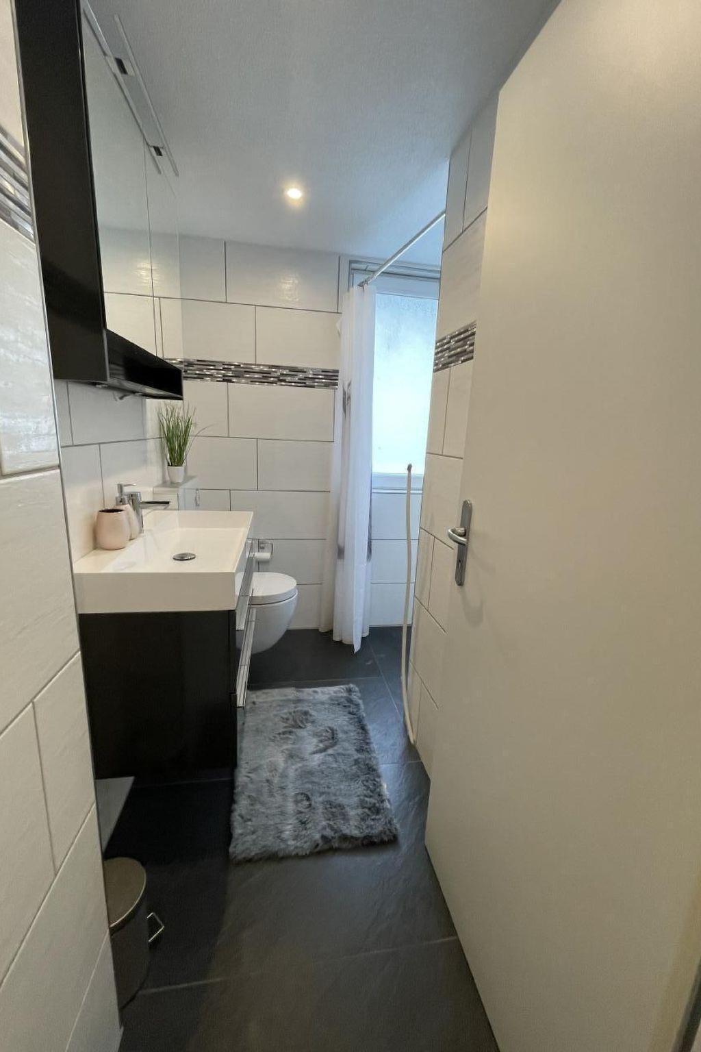 The holiday flat is located on the first floor and has a bedroom with double bed, (additional sleeping possibility is the pull-out sofa bed in the living room). Living/dining area and a fully equipped new kitchen with oven, ceramic hob, fridge, dishwasher, a Tchibo capsule machine, toaster, fondue set etc. Bathroom with shower, washbasin and hairdryer. Living area with sofa bed, table and TV with Netflix and Bluewin TV included.