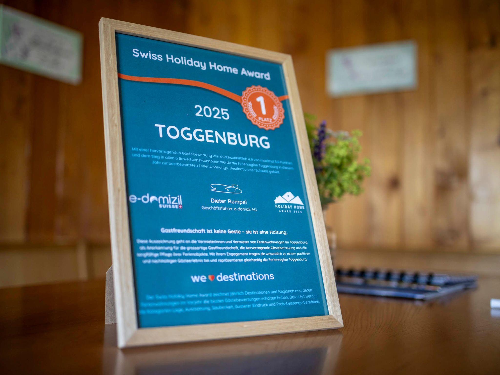 With an exclusive view of the mountains, the Churfirsten panorama and the Alpstein, we offer you the perfect retreat. Our farm is situated on a south-facing slope, which makes us an ideal starting point for numerous hikes in the beautiful surroundings. Whether you are looking for adventures in the Säntis area, Chäserrugg, or picturesque walks to the Thur waterfall and Gräppelensee - families are welcome here at any time of year.