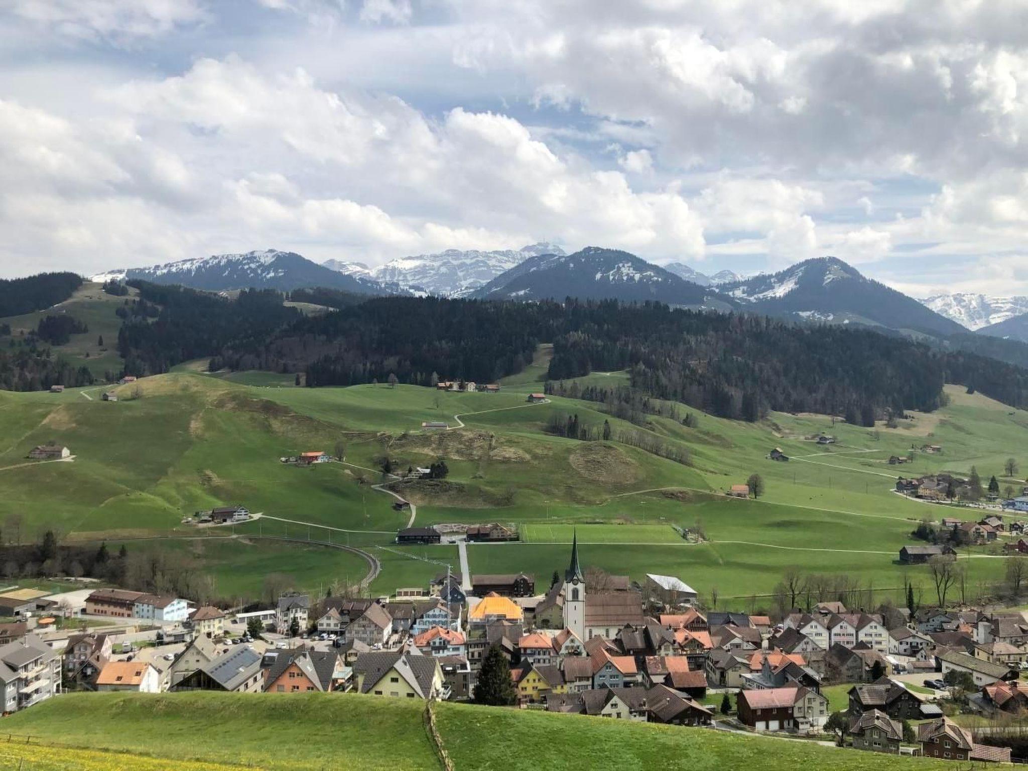 Time for beautiful hikes or relaxation! Enjoy a stylish experience in our centrally located 2.5 room flat in the village of Urnäsch in the beautiful Appenzellerland. The newly renovated flat has a modern kitchen with a spacious cooking island. In the living room there is a round dining table for 4 people, a children's chair can be added on request. In addition, a cosy sofa (extendable, space for 2 adults) invites you to linger. Two cosy armchairs round off the stylish furnishings. The bedroom with a double bed promises restful nights. A baby cot can also be booked. The baby cot must be placed in the living room. The stylish bathroom has a walk-in shower, WC and washbasin with large mirror. A separate garden seating area awaits you outside, inviting you to enjoy cosy evenings. There is free public parking directly opposite the holiday flat. The railway station, the post bus stop (connection to Schwägalp - Säntis) and all shops for daily needs are just a two-minute walk away. Despite the rural location, the village of Appenzell (10 km) and the cultural city of St. Gallen (20 km) are within easy reach. We are a member of the Oskar holiday card, which can be purchased directly from us.