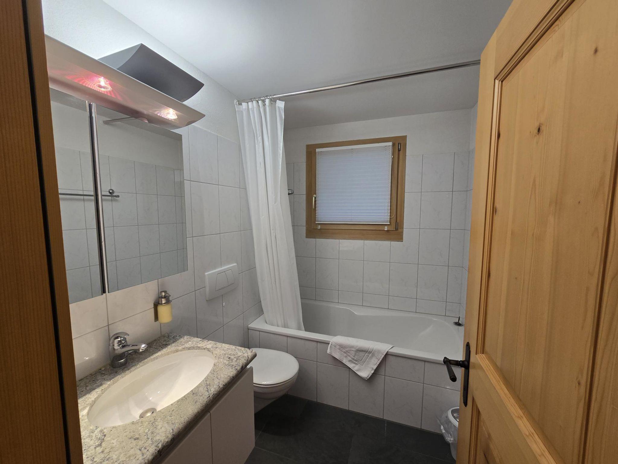 This beautiful 3.5-room holiday apartment offers the highest level of comfort and stylish furnishings. The bright, tastefully decorated living room features direct access to a covered garden seating area and creates a cozy atmosphere for relaxing, thanks to its spacious layout and breathtaking views. The open, modern kitchen is fully equipped. The apartment includes one bedroom with a double bed and another bedroom with two single beds. There are two bathrooms – one with a shower/WC and one with a bathtub/shower/WC – providing maximum convenience. A special highlight is the generously sized, south-facing garden seating area, offering stunning views of the Lenzerheide mountain landscape and Lake Heidsee. In the basement, a ski room and a shared laundry room are available. The apartment also includes two spacious underground parking spaces. The ski slope runs directly past the building, allowing for true ski-in/ski-out access – perfect for winter sports enthusiasts.