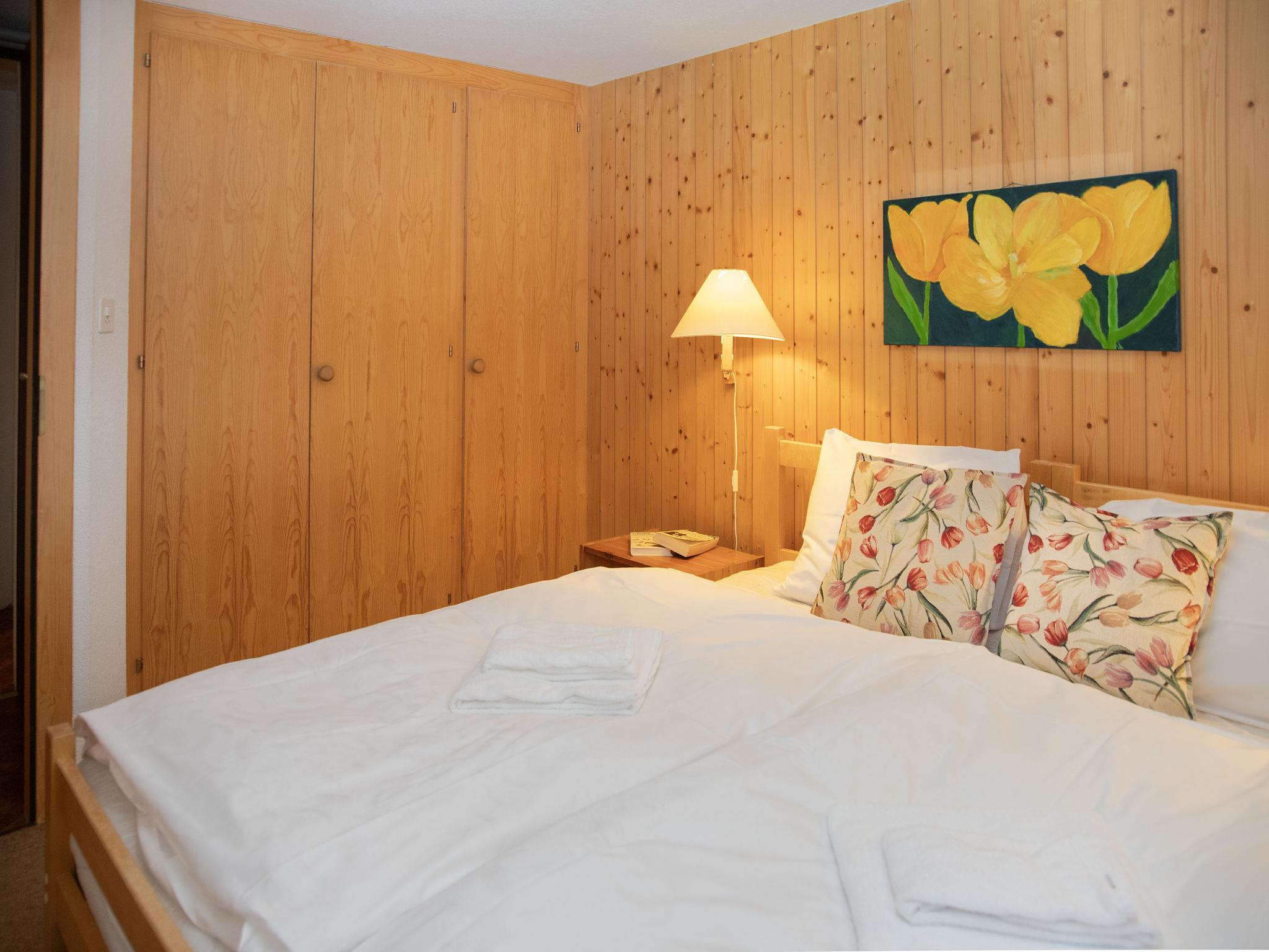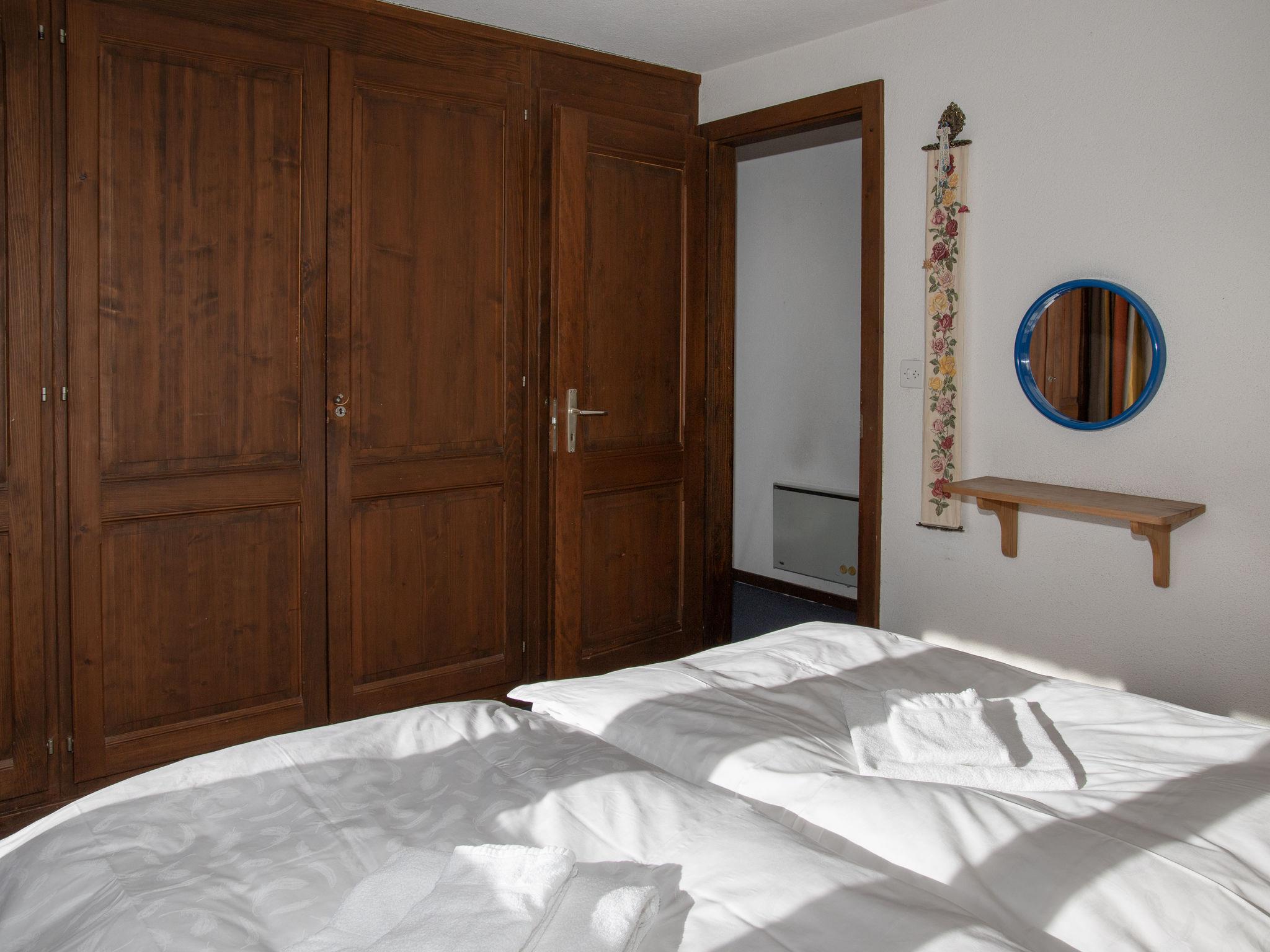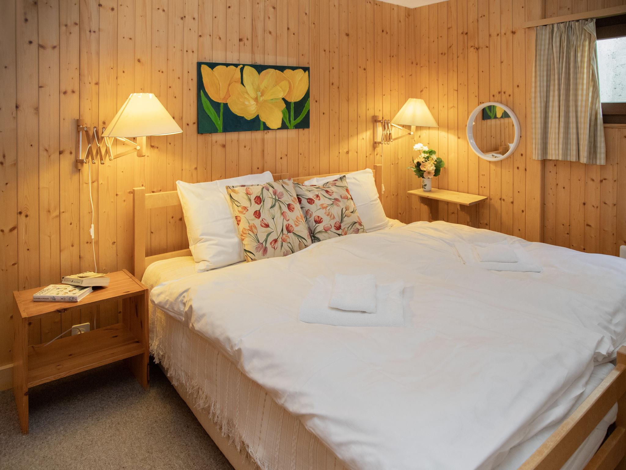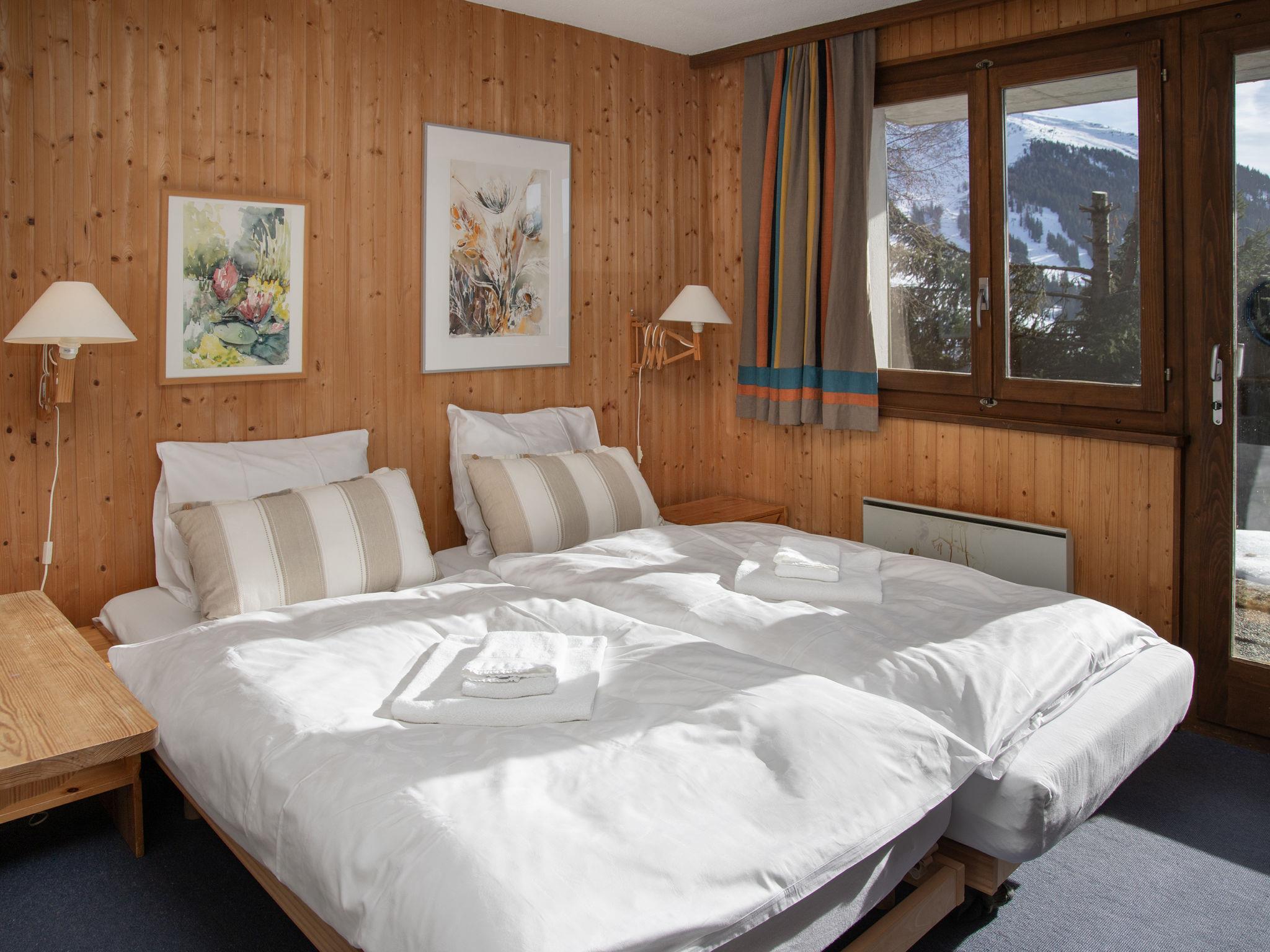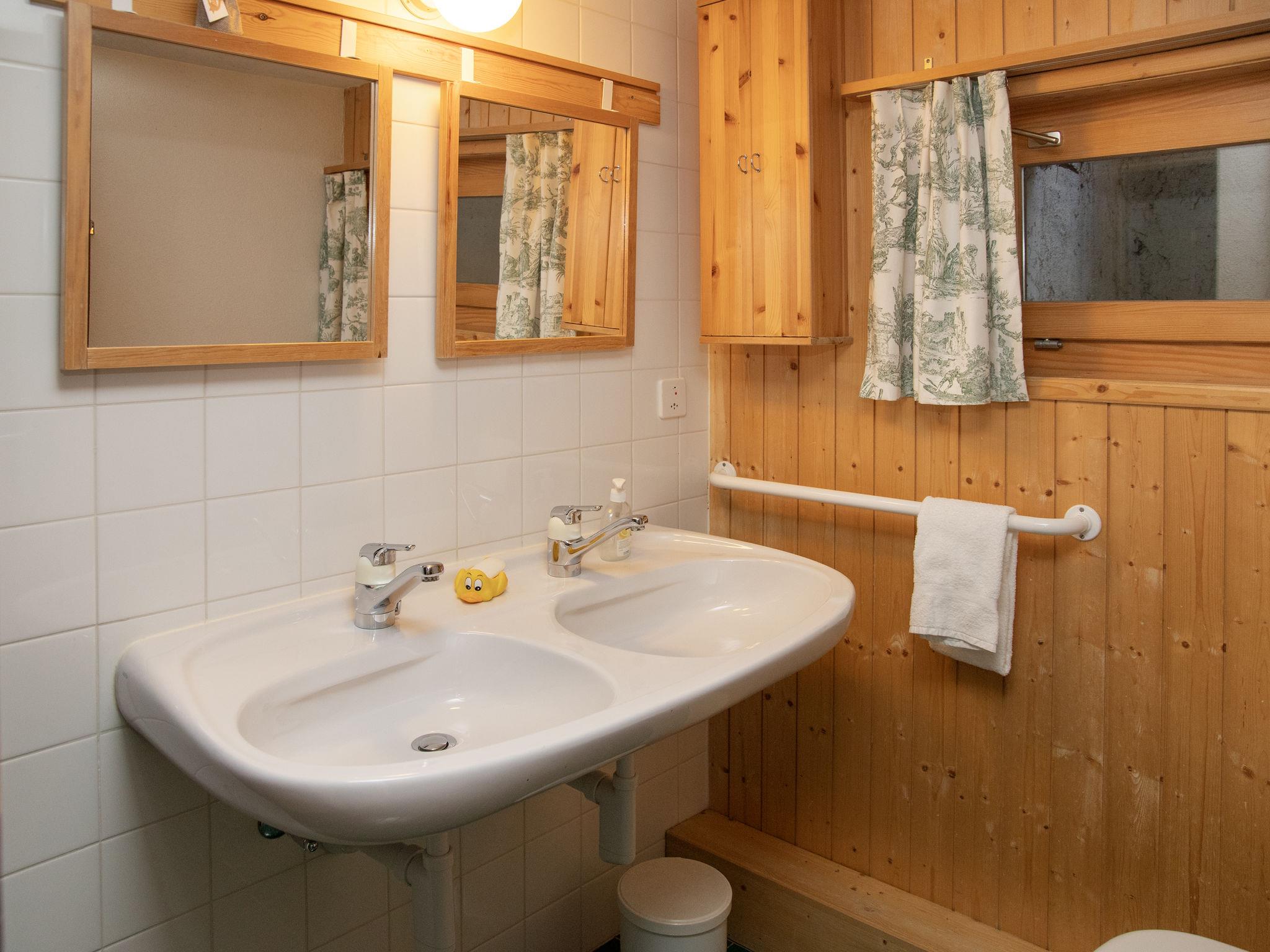 "5 Ecorces", 5-room chalet on 3 levels, south facing position. Comfortable and cosy furnishings: living/dining room with open-hearth fireplace and cable TV. Exit to the balcony. Open kitchen (4 hot plates, oven, dishwasher, kettle, electric coffee machine, Capsules for coffee machine (Nespresso) extra, fondue Set (cheese)). 2 showers/WC, sep. WC. Electric heating. On the lower ground floor: 2 rooms, each room with 2 beds (90 cm, length 200 cm), hand-basin. Exit to the terrace. 1 room with 1 bed (90 cm, length 200 cm). 1 room with 2 beds (90 cm, length 200 cm). Carpet. Balcony, south facing position, terrace. Balcony furniture. Very beautiful view of the mountains, the countryside and the resort. Facilities: washing machine. Internet (WiFi, free). Parking (1 car) at 50 m. Please note: non-smokers only.