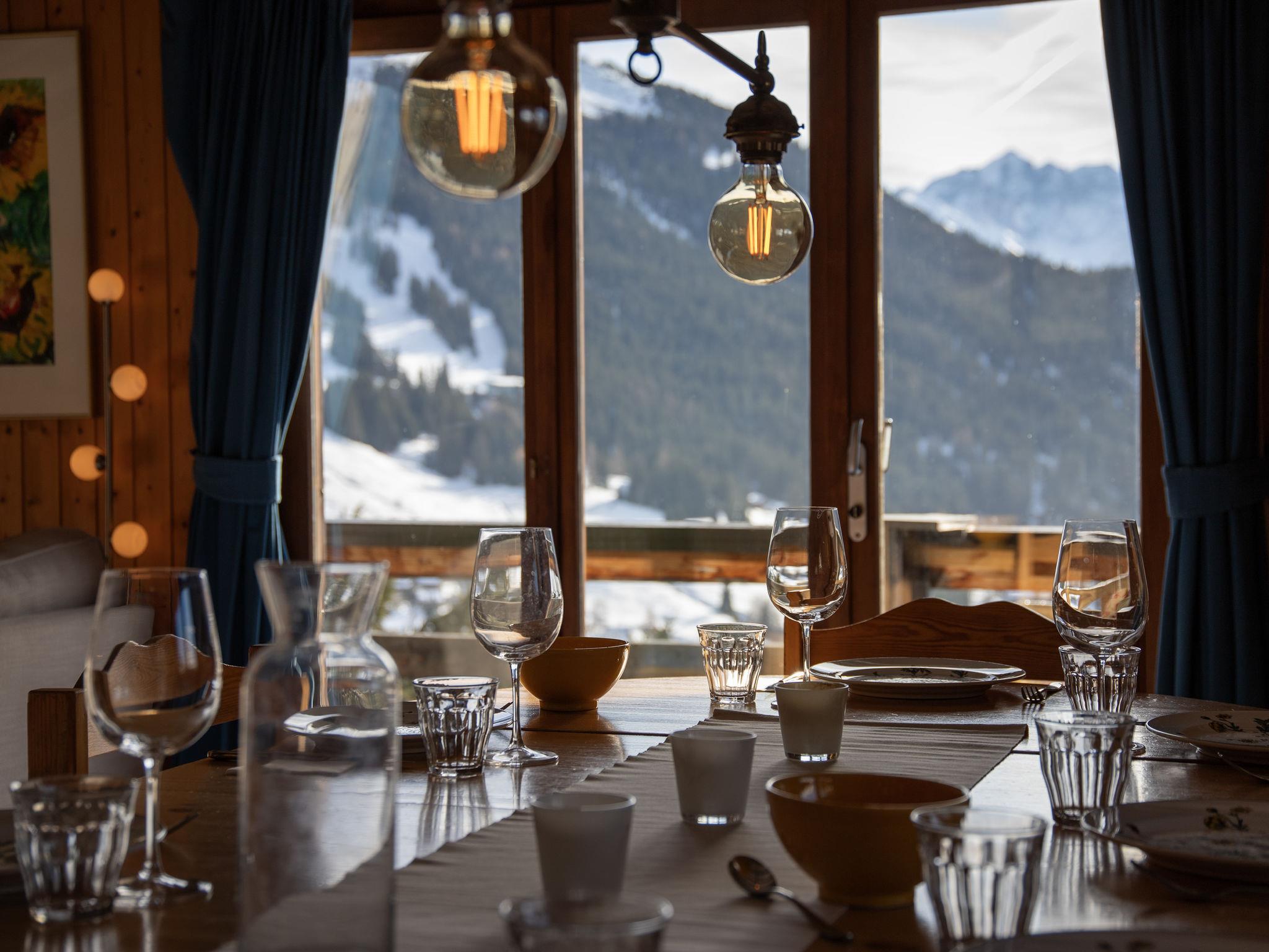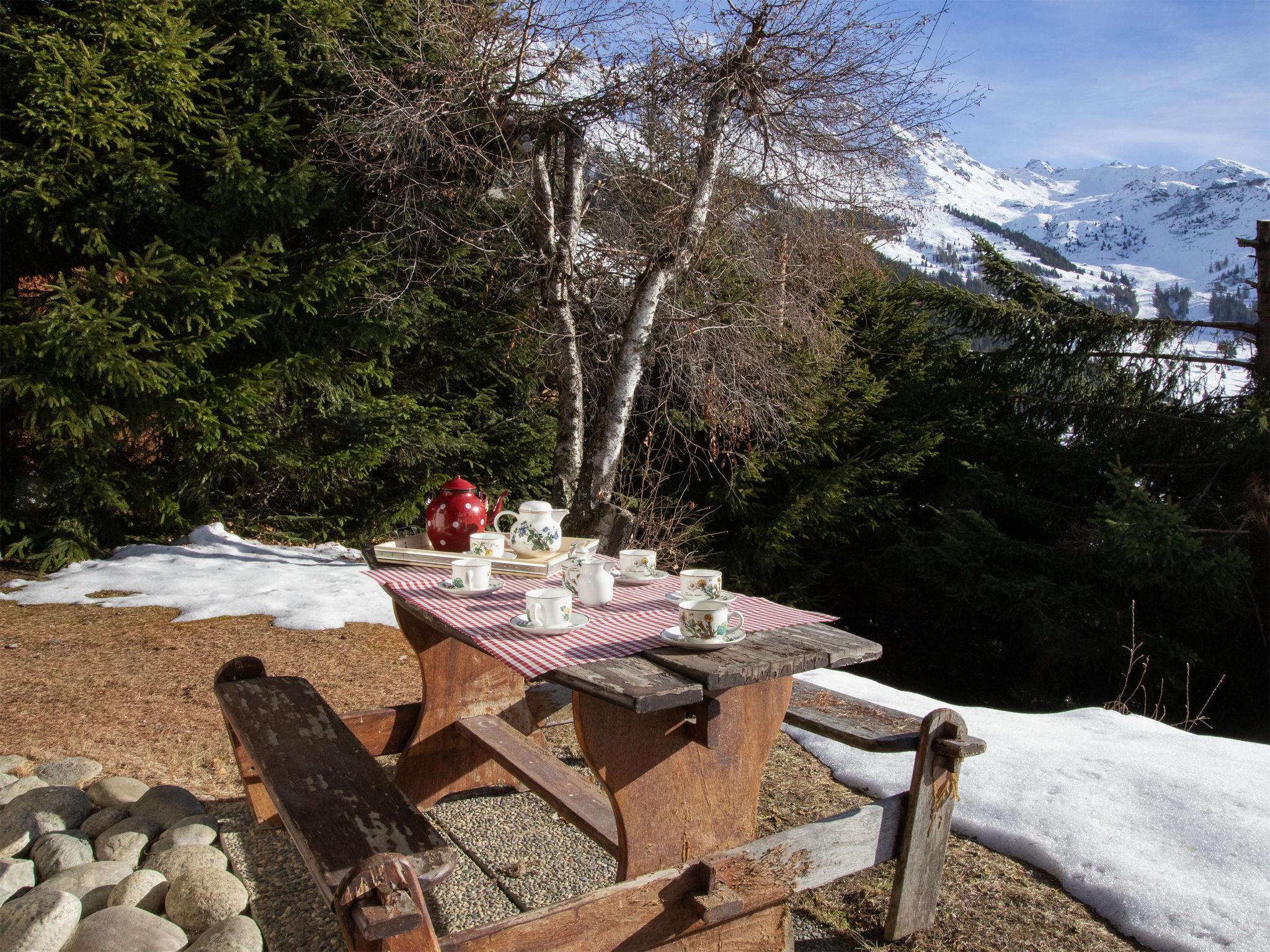 Chalet "5 -Ecorces", 3 storeys. Above Verbier, in a quiet, sunny position, south facing position. In the house: storage room for skis. Stepped path to the house. Supermarket 3 km, restaurant 500 m, bakery 2.8 km, bus stop 50 m. Golf course (18 hole) 2.1 km, sports centre 3.2 km, gondola lift 1.7 km, ski bus stop 50 m, ski school 1.6 km. Please note: car recommended.