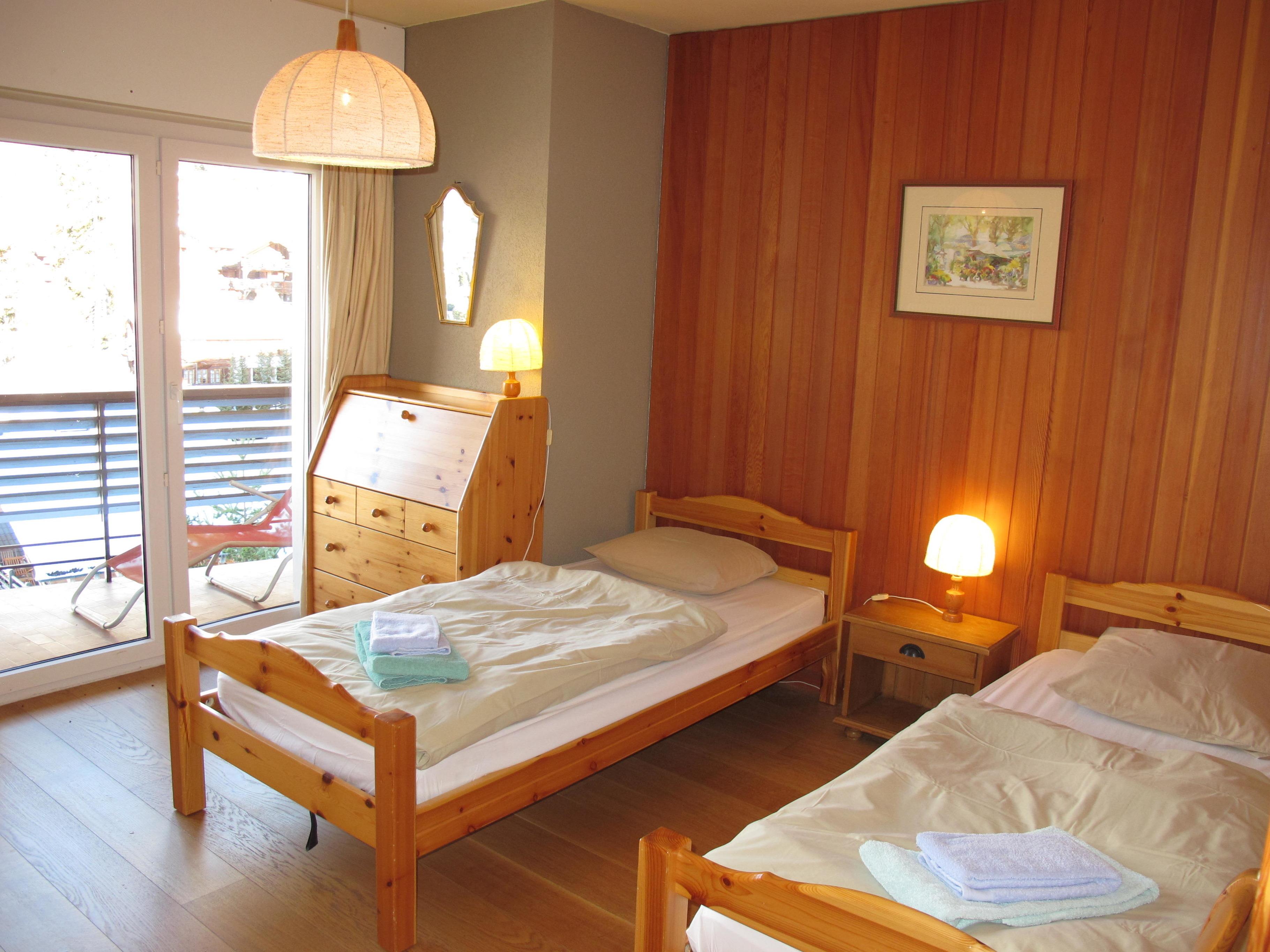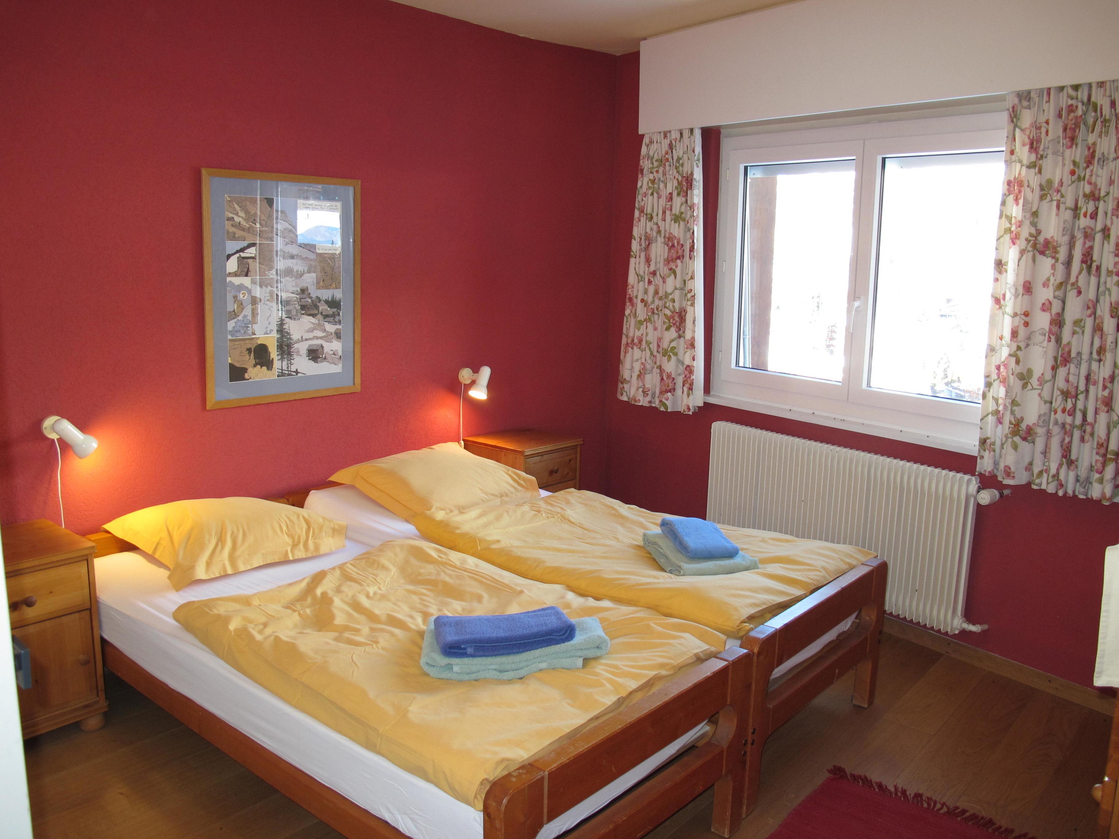 4-Zimmer-Wohnung, 4. Etage, ca. 100 m². Großer Wohnraum mit Sitzgruppe, Kamin, Kabel-TV, WLAN, Essplatz, Ostbalkon. Separate Küche mit Einbauherd (4 Platten, Backofen), Geschirrspüler, Mikrowelle, Kühlschrank, Kaffeemaschine, Wasserkocher, Fondue-Rechaud, Raclette-Gerät. Großes Zweibettzimmer, Westbalkon mit spektakulärem Blick über Verbier. Zweibettzimmer, Waschbecken. Schlafzimmer mit Etagenbett. Bad/WC. Sep.WC. HAUSTIER: NEIN!