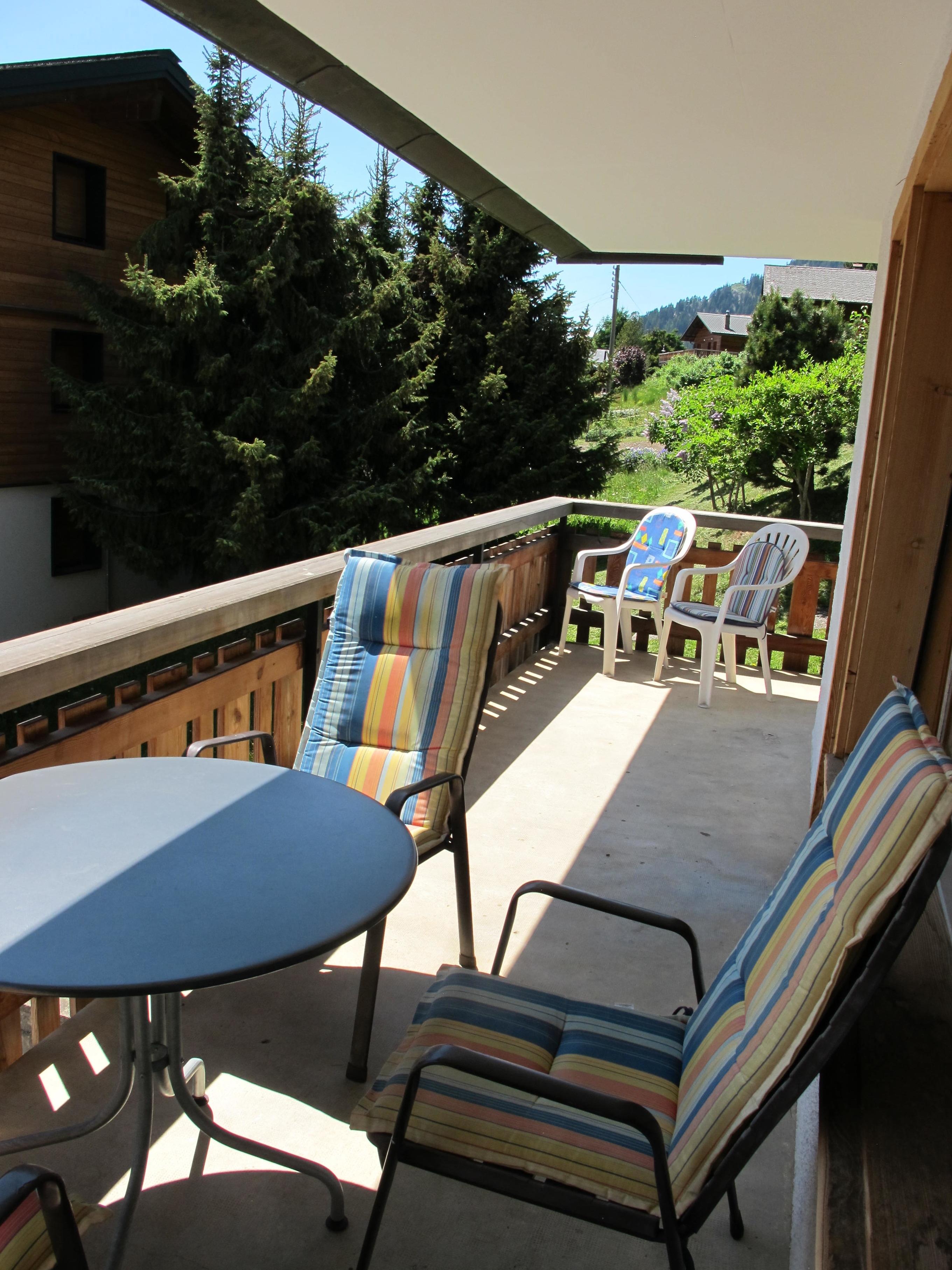 Vom Südbalkon toller Blick hinüber auf das Mont-Blanc-Massiv. Die Wohnung hat Laminatböden, in einem der Schlafzimmer ist ein Teppichboden vorhanden. Kabel-TV, DVD, CD-Player, Radio und WLAN (frei verfügbar in allen Räumen). Helle, freundliche und feriengerechte Einrichtung, zweckmäßige Ausstattung.