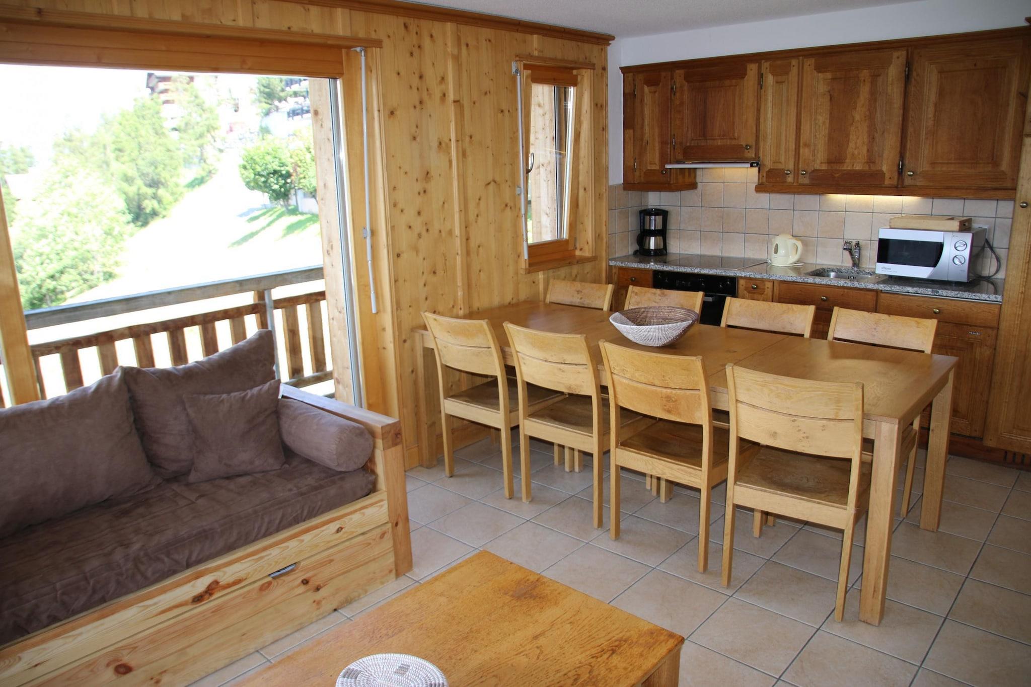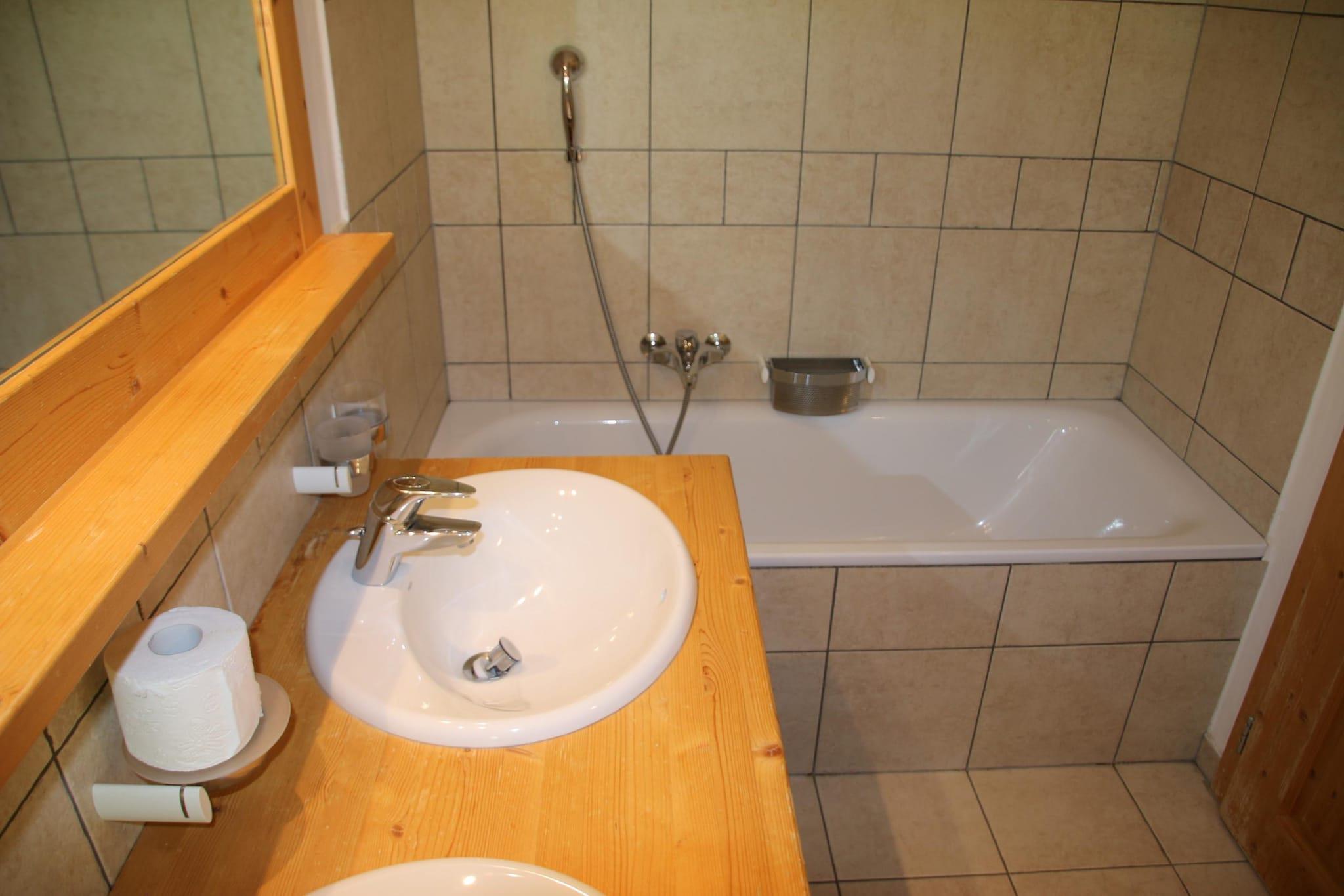 Oplev denne solrige, familievenlige bjerglejlighed i Veysonnaz, Schweiz, perfekt til op til 5 gæster. Nyd en fantastisk udsigt over Rhône-dalen fra balkonen i denne lyse og rummelige lejlighed på 60 m², som har en hyggelig stue udstyret med en sovesofa, en pejs, kabel-tv og en dvd-afspiller. Det åbne køkken er fuldt udstyret med køleskab, ovn, mikroovn, brødrister, filterkaffemaskine, kedel og opvaskemaskine, hvilket gør madlavning til en fornøjelse. Lejligheden ligger i Plein Ciel-boligen, kun 270 meter fra butikker og restauranter, hvilket placerer dig i hjertet af feriestedet. Lejligheden indeholder to soveværelser: Soveværelse 1 har to enkeltsenge (90x200), og Soveværelse 2 har også to enkeltsenge (90x200). Derudover er der en køjeseng (90x200) i korridoren for ekstra soveplads. Der er to badeværelser - et med badekar og toilet, og et andet med bruser og toilet. Træd ud på balkonen for at nyde panoramaudsigten, komplet med havemøbler. Yderligere faciliteter omfatter vaskeri (digital betaling), et skirum og en indendørs parkeringsplads, med mere tilgængelig på den offentlige betalingsparkering. Kæledyr er tilladt, og adgang er via elevator eller trapper. Bemærk venligst, at der er ekstra omkostninger til sengelinned og håndklæder (varierer efter antal gæster), slutrengøring, turistskat og et refunderbart depositum. Som gæst kan du nyde gratis adgang til den offentlige swimmingpool året rundt, deltagelse i aktivitetsprogrammet Sun&Fun i højsommersæsonen og rabatter på op til 50 % på lejemål. Valgfri tjenester som komfortpakker, gebyrer for kæledyr og særlige tjenester er tilgængelige mod et ekstra gebyr.