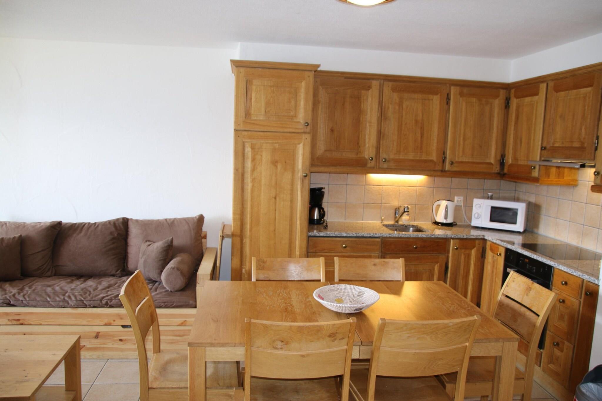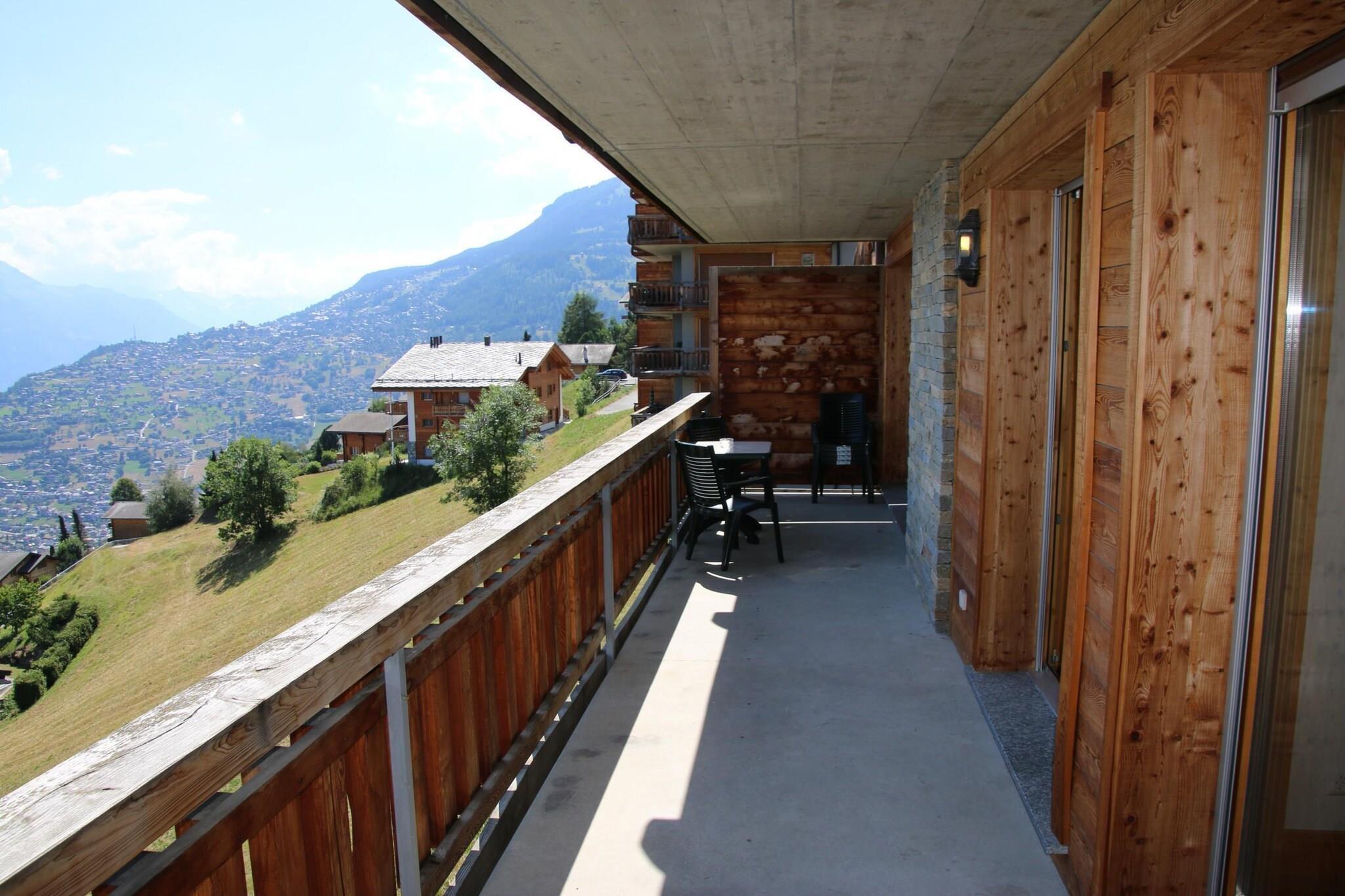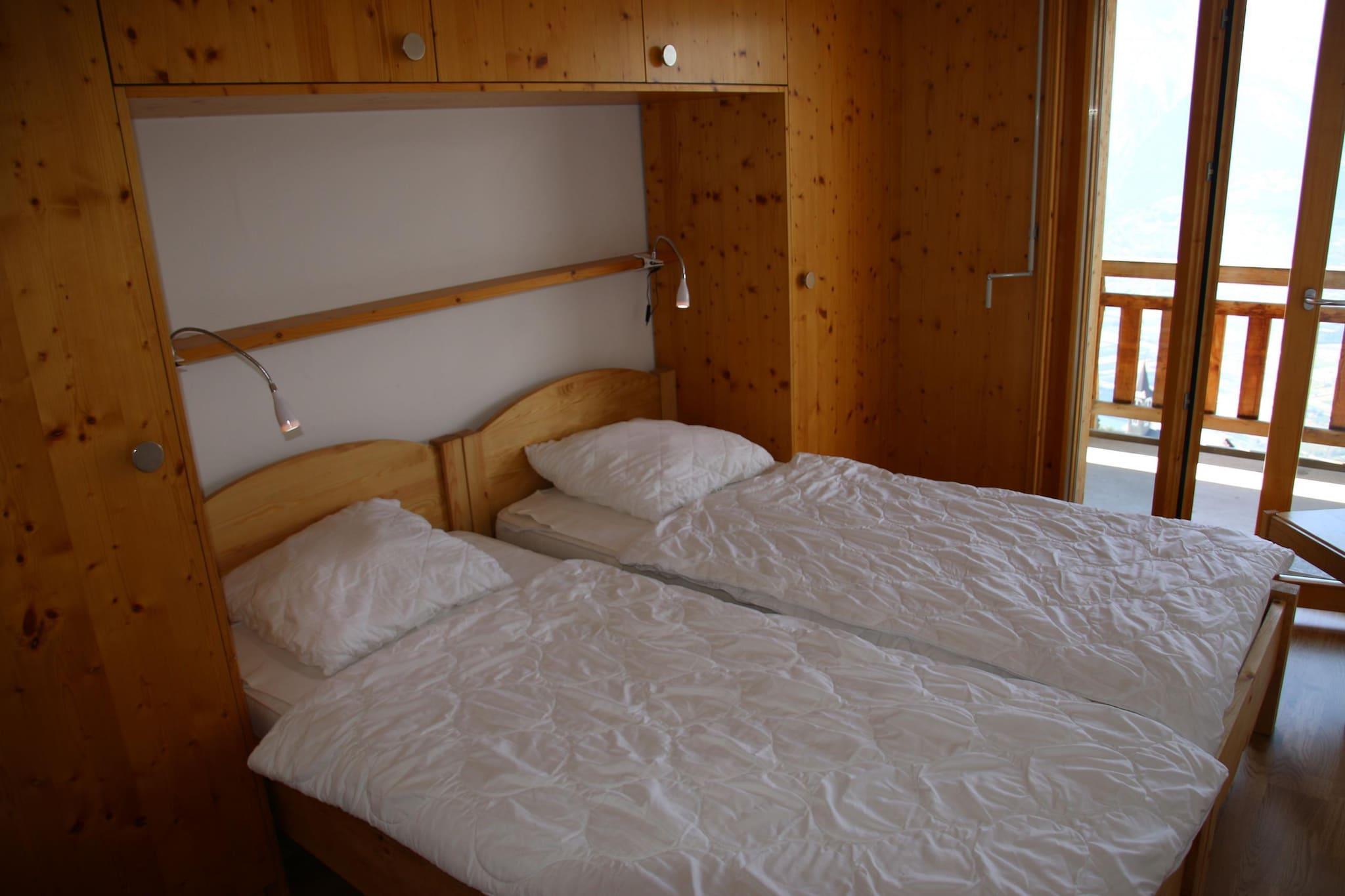 Oplev et hyggeligt familieophold i denne autentiske skisportslejlighed beliggende i Veysonnaz, Schweiz. Denne rummelige lejlighed på 60 m² kan rumme op til 8 gæster, hvilket gør den perfekt til familieferier eller grupperejser. Den charmerende lejlighed har en lys stue med en sovesofa, en hyggelig pejs, kabel-tv og en dvd-afspiller, hvilket skaber en indbydende atmosfære. Det åbne køkken er fuldt udstyret med køleskab, ovn, mikroovn, brødrister, filterkaffemaskine, kedel og opvaskemaskine til alle dine madlavningsbehov. Plein Ciel-residensen ligger kun 270 meter fra svævebanen, butikker og fritidsaktiviteter og sikrer bekvemmelighed lige ved hånden. Sovearrangementer inkluderer en køjeseng i korridoren (90x200) til to, soveværelse 1 med to enkeltsenge (90x200), og soveværelse 2 også med to enkeltsenge (90x200). Lejligheden har to badeværelser - det ene med badekar og toilet, og det andet med bruser og toilet. Træd ud på balkonen for at nyde panoramaudsigten over Rhône-dalen, møbleret til din afslapning. Yderligere faciliteter inkluderer et vaskerum (digital betaling), et skirum og en inkluderet indendørs parkeringsplads, med mere tilgængelig på den offentlige betalingsparkering. Kæledyr er velkomne, og adgang er let via elevator eller trapper. Bemærk venligst, at der opkræves ekstra omkostninger for sengelinned og håndklæder, slutrengøring, turistskat og et refunderbart depositum. Gæster nyder gratis adgang til den offentlige swimmingpool året rundt, deltagelse i aktivitetsprogrammet Sun&Fun i højsommersæsonen og rabatter på op til 50 % på leje af udstyr. Valgfri tjenester, såsom komfortpakker og gourmetkurve, er også tilgængelige. Velkommen til dit alpine hjem!
