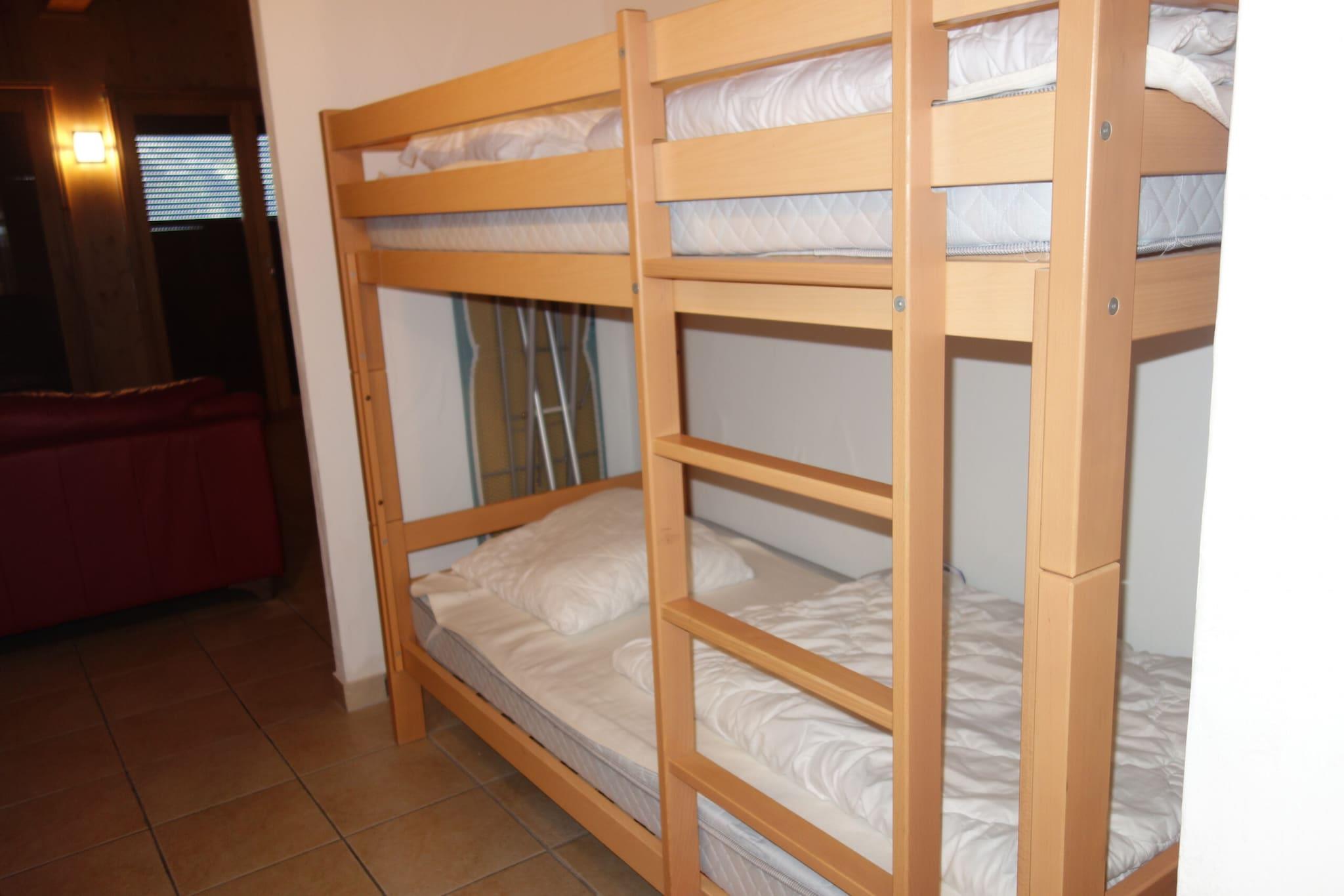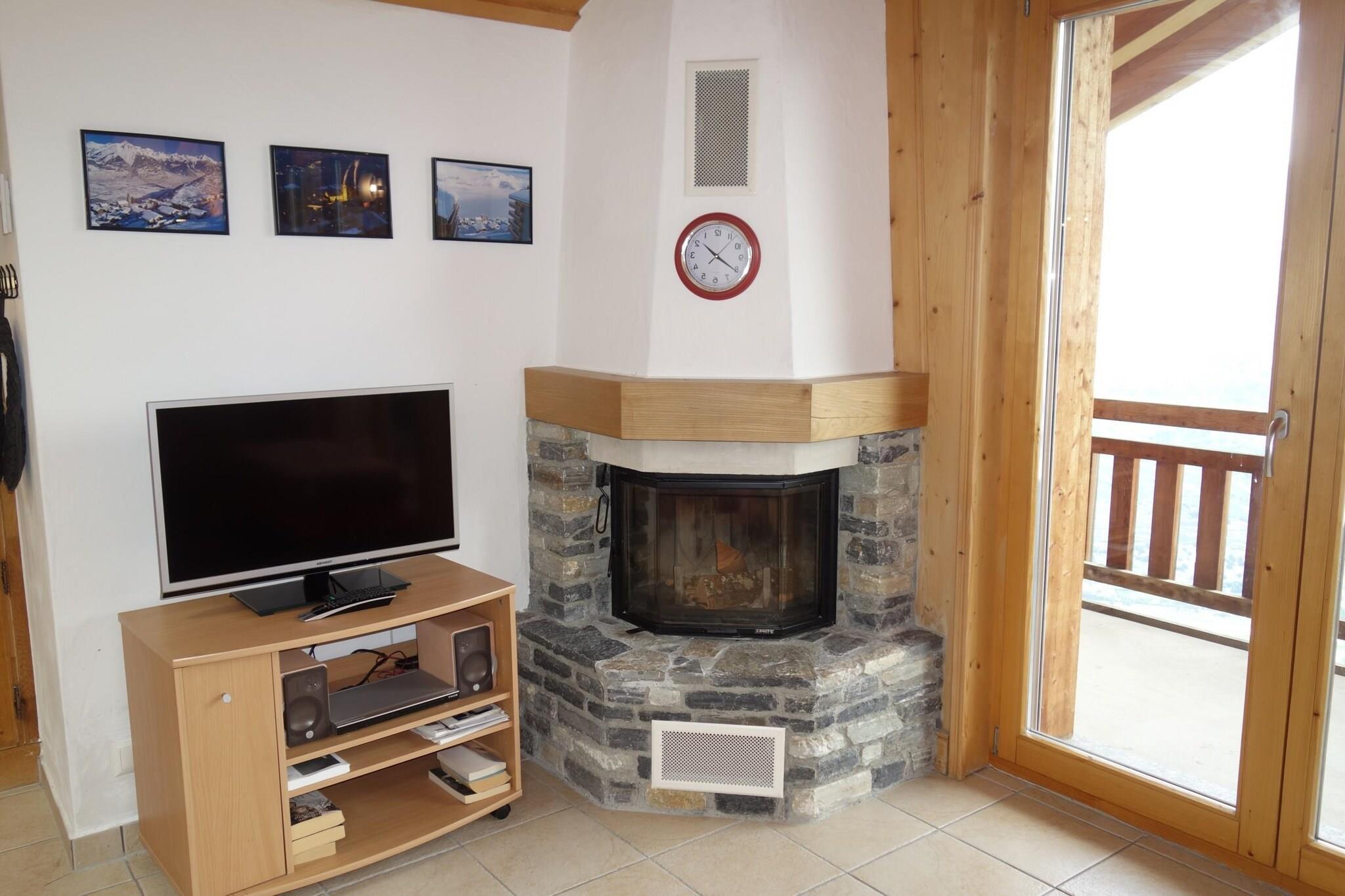Velkommen til en hyggelig bjerglejlighed beliggende i hjertet af Veysonnaz, Schweiz, med plads til op til 6 gæster. Nyd en betagende udsigt over dalen og bjergene i denne charmerende lejlighed, perfekt til familier eller grupper. Denne 3-værelses, 3-stjernede plus lejlighed har en lys stue med en indbydende pejs, komfortabel sofa, tv og dvd-afspiller. Det åbne køkken er fuldt udstyret med en keramisk kogeplade, ovn, mikroovn, brødrister, filterkaffemaskine, elkedel og opvaskemaskine, hvilket gør madlavning til en fornøjelse. Sovearrangementer omfatter en køjeseng (90x200) i korridoren, to enkeltsenge (90x200) i soveværelse 1 og yderligere to enkeltsenge (90x200) i soveværelse 2. Lejligheden har to badeværelser: det ene støder op til bad og toilet, og en anden med bad og toilet. Træd udenfor til balkonen, møbleret med et udendørs bord og stole, og nyd panoramaudsigten over Rhône-dalen. Yderligere faciliteter inkluderer et vaskerum (digital betaling), et skirum og en indendørs parkeringsplads inkluderet i din leje. Kæledyr er ikke tilladt, og adgang er via elevator eller trapper. Beliggende kun 270 meter fra svævebanen, butikker og fritidsaktiviteter, er denne bolig ideelt beliggende til at udforske resortet. Ekstra omkostninger inkluderer en turistskat, depositum og valgfri tjenester såsom sengelinned, håndklæder, slutrengøring og komfortpakker for et glat ophold. Nyd gratis adgang til den offentlige swimmingpool, Sun&Fun-aktivitetsprogrammet om sommeren og rabat på leje af udstyr. Velkommen til dit alpine tilbagetog!