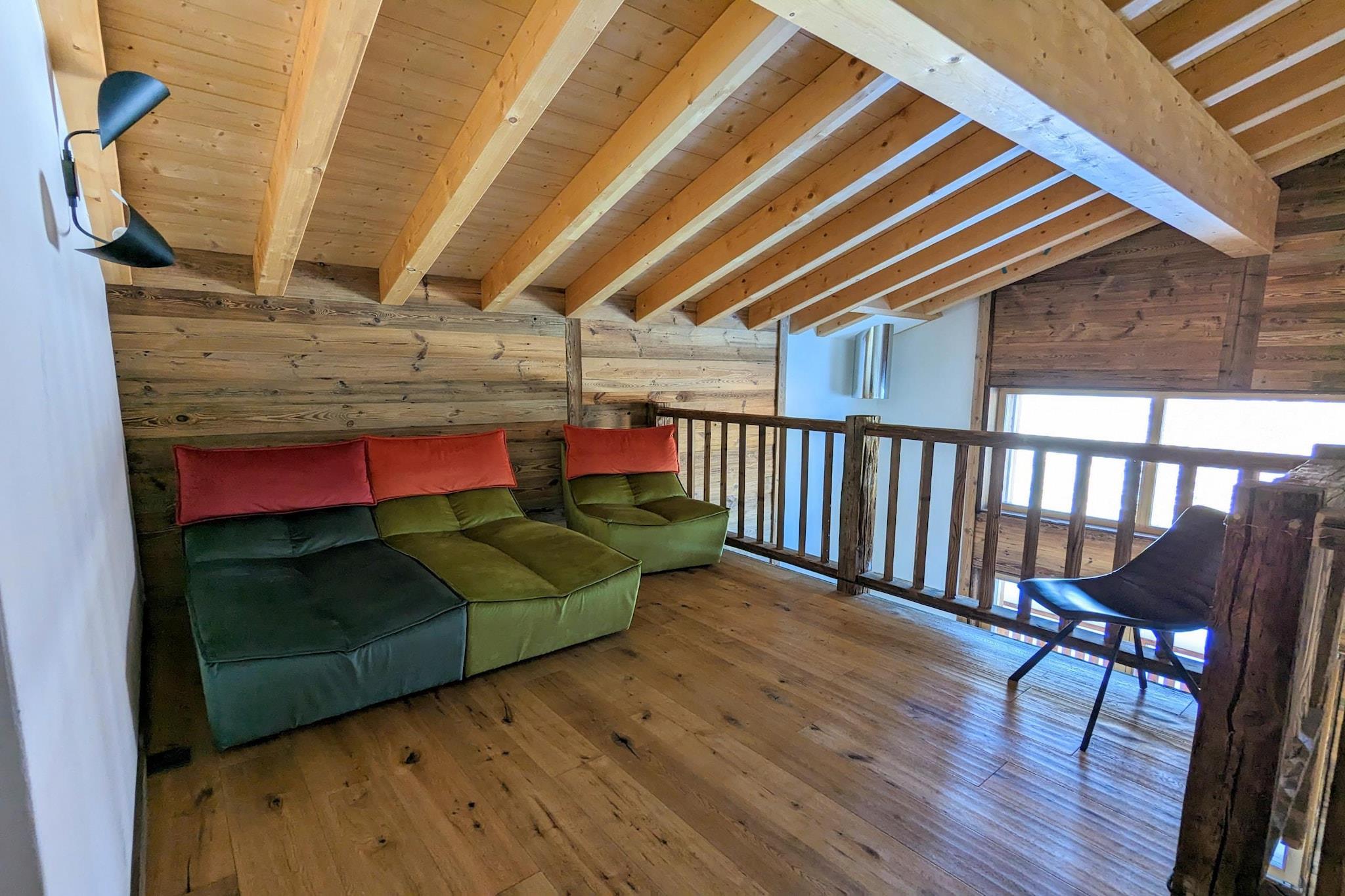 Velkommen til Les Mayens Appartement, en stilfuld 4-stjernet lejlighed beliggende i den maleriske landsby Veysonnaz i Schweiz. Med en størrelse på 186 m² og plads til op til 10 gæster er dette bjergferiested perfekt til familier eller grupper. Nyd direkte ski-in/ski-out-adgang og en betagende udsigt over alperne fra den private balkon. Den lyse opholdsstue har hyggelige sofaer og spiseplads, mens det åbne køkken er udstyret med moderne apparater, herunder ovn, mikrobølgeovn, opvaskemaskine og keramiske kogeplader. Ovenpå tilbyder mezzaninen en anden stue med et streamingkompatibelt tv og et musikanlæg i høj kvalitet, perfekt til aftenafslapning. Lejligheden har fire soveværelser med to enkeltsenge (90x200) og en sovesofa til to personer i den primære opholdsstue. Med fem badeværelser - fire med bruser og et med badekar - er komfort og bekvemmelighed garanteret. Yderligere fordele inkluderer et skirum, vaskemaskine, tørretumbler og en indendørs parkeringsplads (med flere tilgængelige til leje). Lejligheden ligger kun 150 m fra svævebanen og 700 m fra butikker og tilbyder underholdning året rundt. Gæsterne har adgang til den offentlige swimmingpool, sommerens Sun&Fun-programmer og op til 50 % rabat på leje af udstyr. Ekstraudstyr såsom babyudstyr og gourmetkurve gør opholdet endnu mere behageligt.