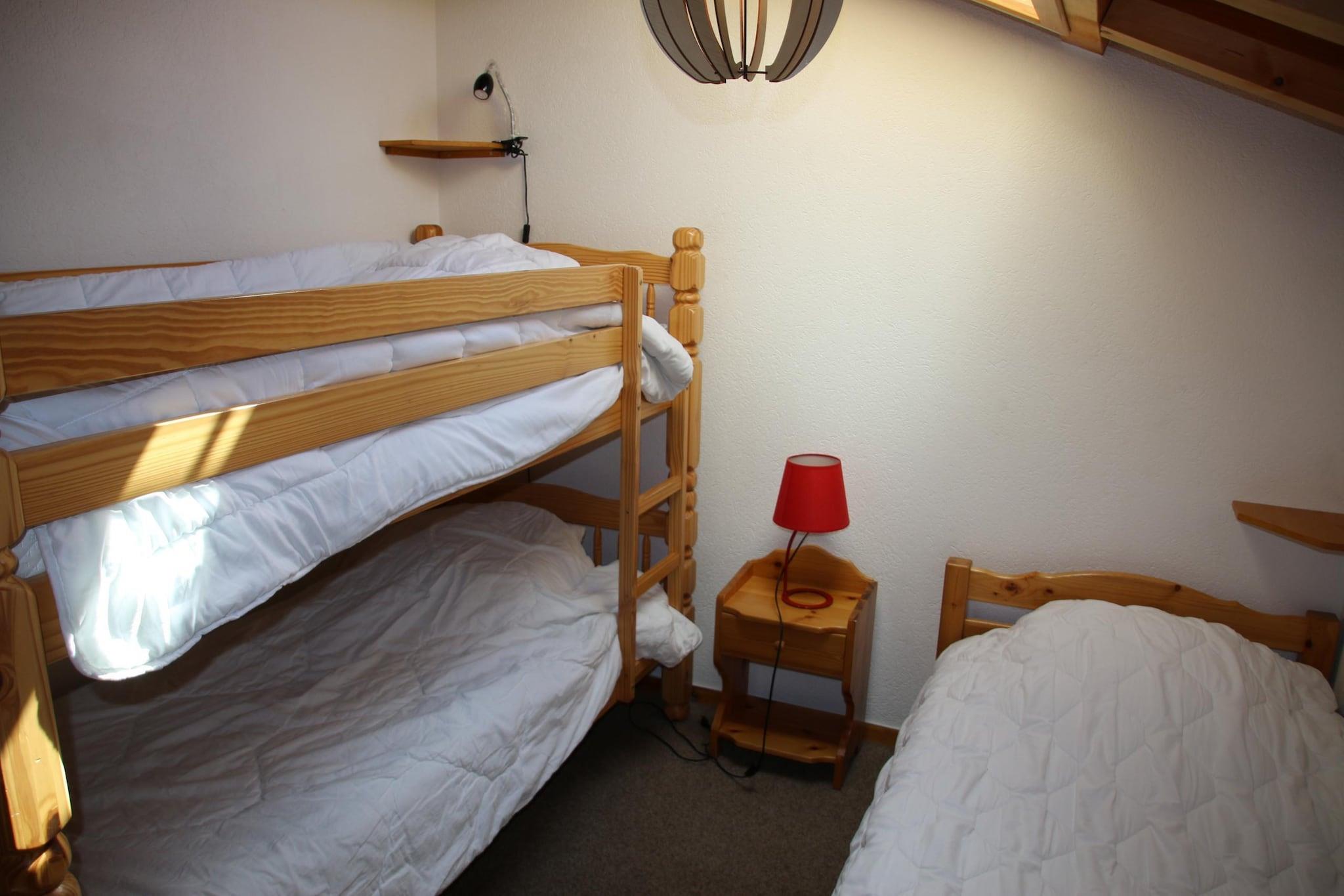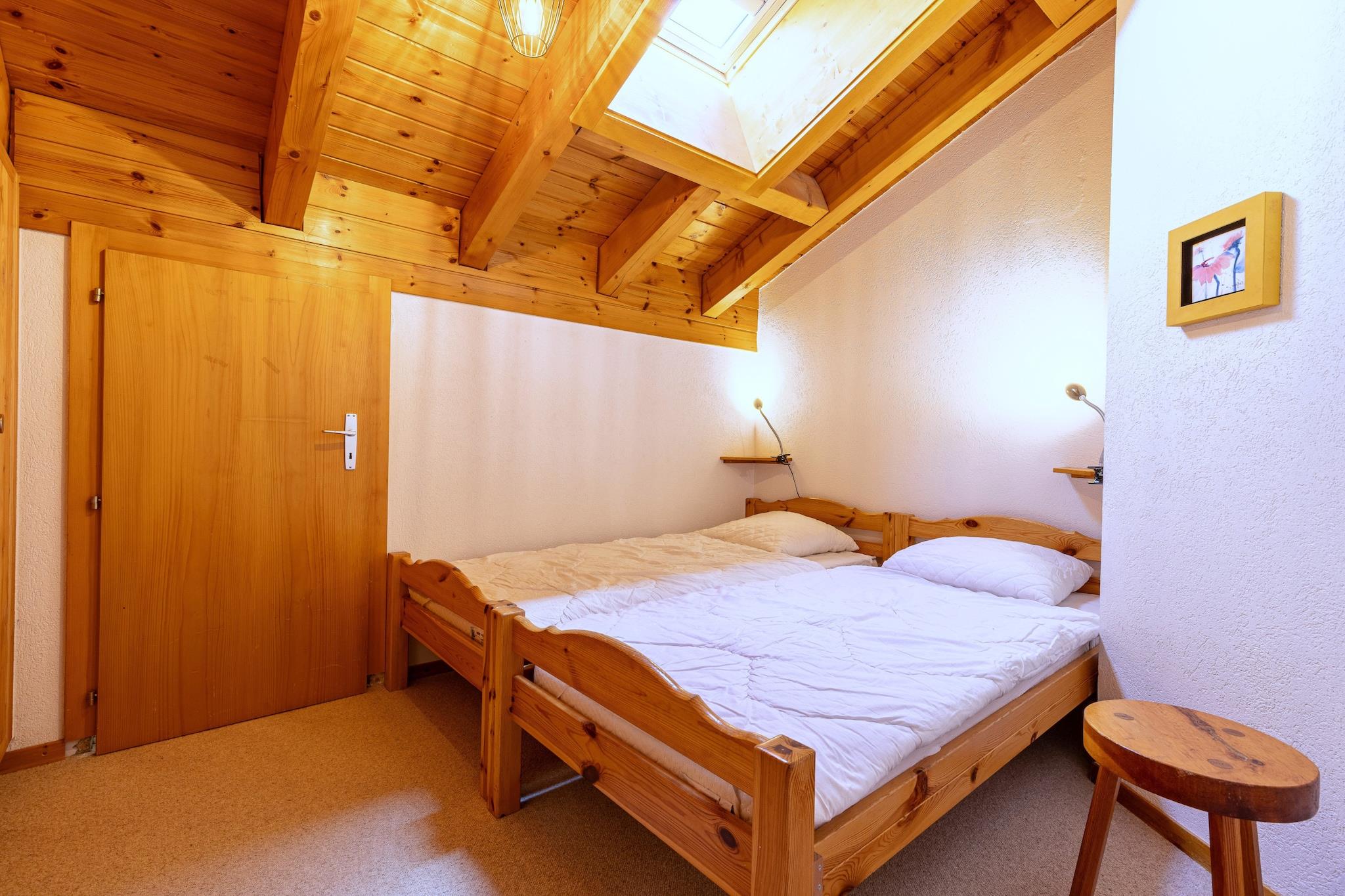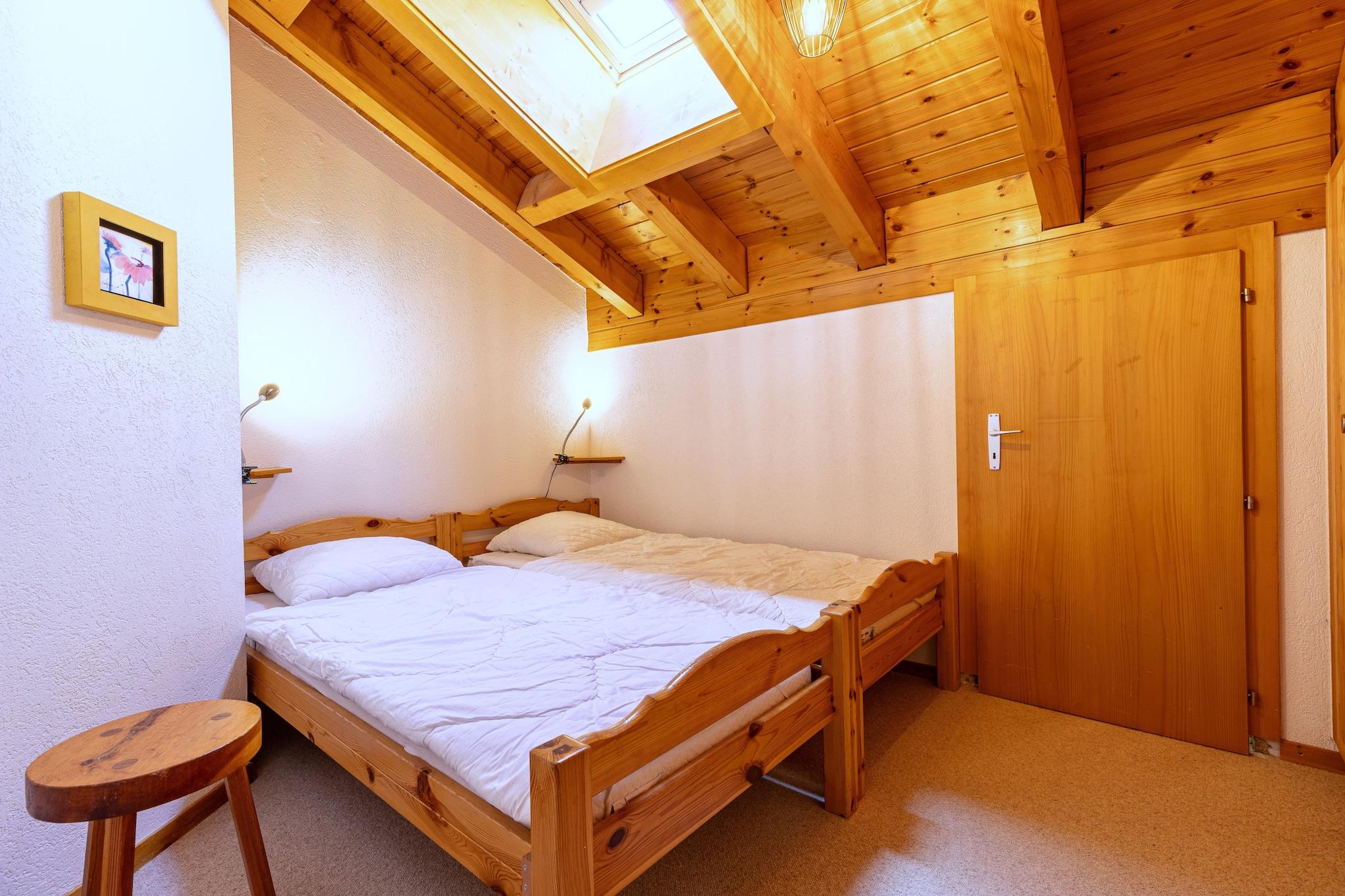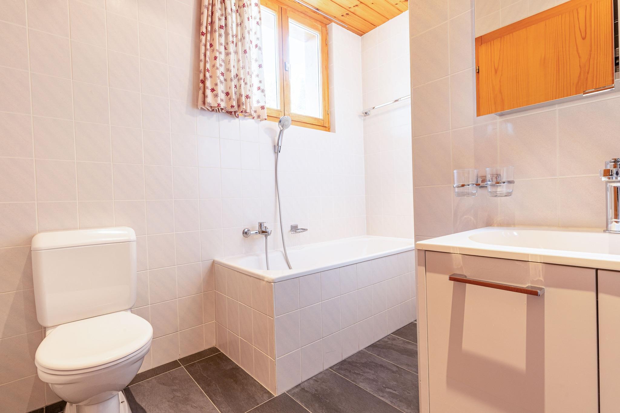 Denne hyggelige lejlighed kan komfortabelt rumme op til 7 gæster, og byder på tre soveværelser, inklusive en dobbeltseng, to enkeltsenge og en køjesengskombination, hvilket sikrer rigelig soveplads. En indbydende opholdsstue omfatter en sofa og en pejs, perfekt til afslapning. Ejendommen har også en balkon med en betagende udsigt over Rhône-dalen. Kæledyrsvenlige politikker tillader små kæledyr (op til 15 kg), og yderligere tjenester såsom sengelinned og slutrengøring kan arrangeres. Gæsterne kan også nyde godt af adgang til en offentlig swimmingpool og rabat på leje af udstyr under deres ophold. Beliggende i hjertet af Veysonnaz, er lejligheden ideelt beliggende kun 500 meter fra svævebanen, hvilket letter nem adgang til skiløb og vandreture. Lokale butikker ligger blot 140 meter derfra, hvilket giver bekvemmelighed for dagligvarer og det nødvendige. Det pulserende feriested tilbyder en række fritidsaktiviteter i nærheden, hvilket gør det til en fremragende beliggenhed for både vinter- og sommerferier. Tilgængelige transportmuligheder, herunder busser og togstationer, er inden for en rimelig afstand, hvilket forbinder gæster til den bredere region. Det fuldt udstyrede køkken har væsentlige apparater, herunder en ovn, opvaskemaskine og kaffemaskine, hvilket giver mulighed for nem tilberedning af måltider. Indkvarteringen omfatter to badeværelser - det ene med badekar og det andet med bruser - hvilket sikrer komfort og privatliv for alle gæster. Derudover tilbyder lejligheden fælles faciliteter såsom et skirum og vaskeri i bygningen.