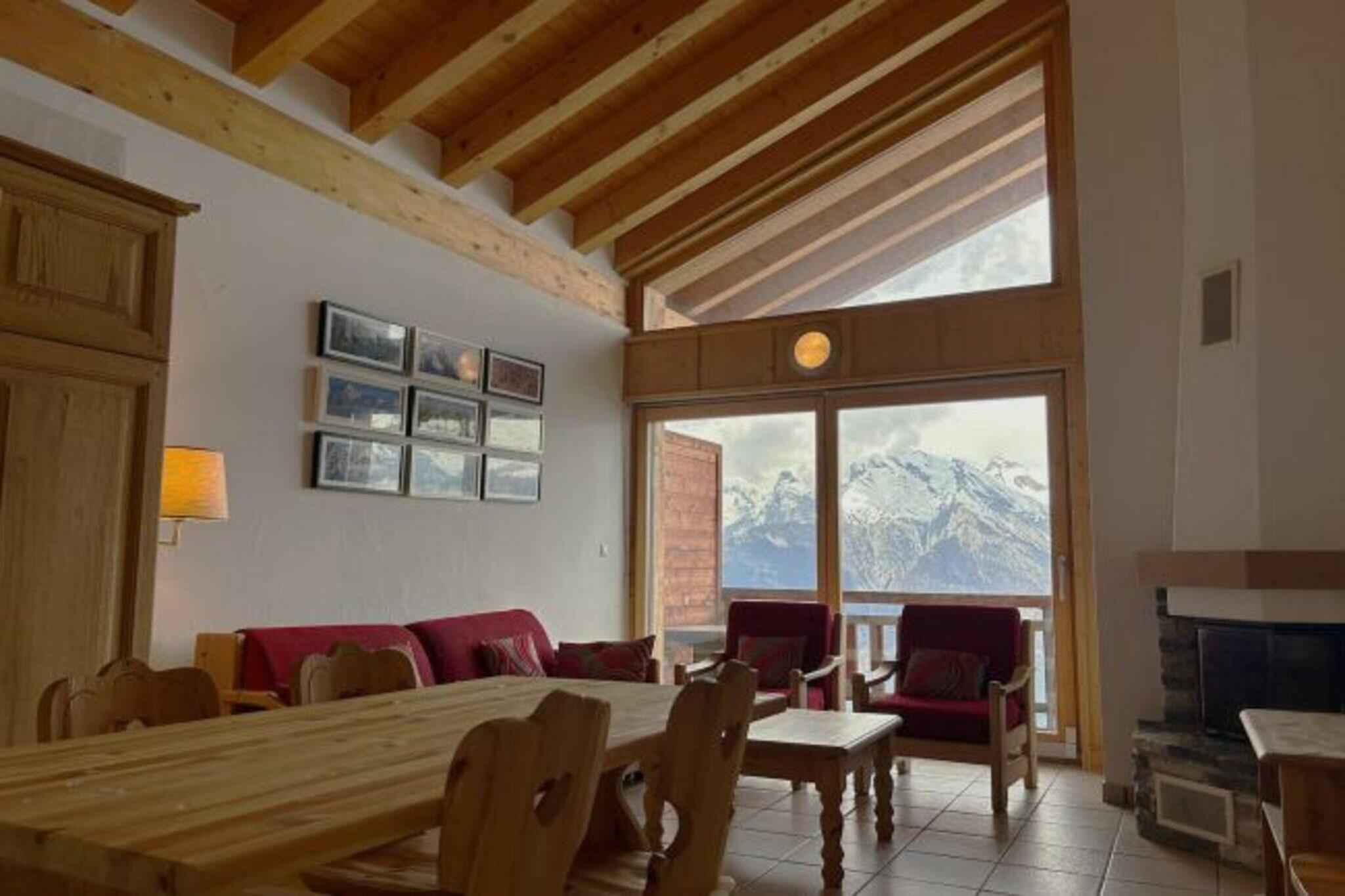 Denne hyggelige lejlighed i stueetagen er perfekt til op til 5 gæster og tilbyder en behagelig og indbydende atmosfære. Det omfatter en stue med en sovesofa, en pejs og en spiseplads, hvilket gør det til et ideelt sted til afslapning. Gæsterne kan nyde den smukke udsigt over bjergene fra haven, som er møbleret med udendørs siddepladser. Lejligheden er kæledyrsvenlig (for kæledyr under 15 kg) og tilbyder en indendørs parkeringsplads med yderligere offentlig parkering i nærheden. Adgang er via trapper, hvilket sikrer et fredeligt tilflugtssted for familier eller små grupper. Beliggende kun 350 meter fra Veysonnaz-gondolen er denne lejlighed en fantastisk base for skiløb, vandreture og udforskning af regionen. Lokale butikker ligger kun 100 meter væk, og tilbyder bekvemmelighed til daglige fornødenheder. Derudover er vinterbussen kun 150 meter væk, hvilket giver nem adgang til transport. For fritidsaktiviteter er gæsterne i gåafstand fra forskellige muligheder, hvilket sikrer en fantastisk blanding af udendørs eventyr og afslapning i den omkringliggende naturlige skønhed. Lejligheden har to komfortable soveværelser: et med køjesenge og et andet med to enkeltsenge. Der er også en enkeltseng i korridoren for ekstra fleksibilitet. Det renoverede badeværelse har bruser og toilet samt separat toilet. Det fuldt udstyrede køkken, herunder moderne apparater som ovn, køleskab, opvaskemaskine og mikrobølgeovn, gør det nemt at tilberede måltider. Gæster kan også drage fordel af bygningens vaskeri og skirumsfaciliteter, som tilbyder ekstra bekvemmelighed.