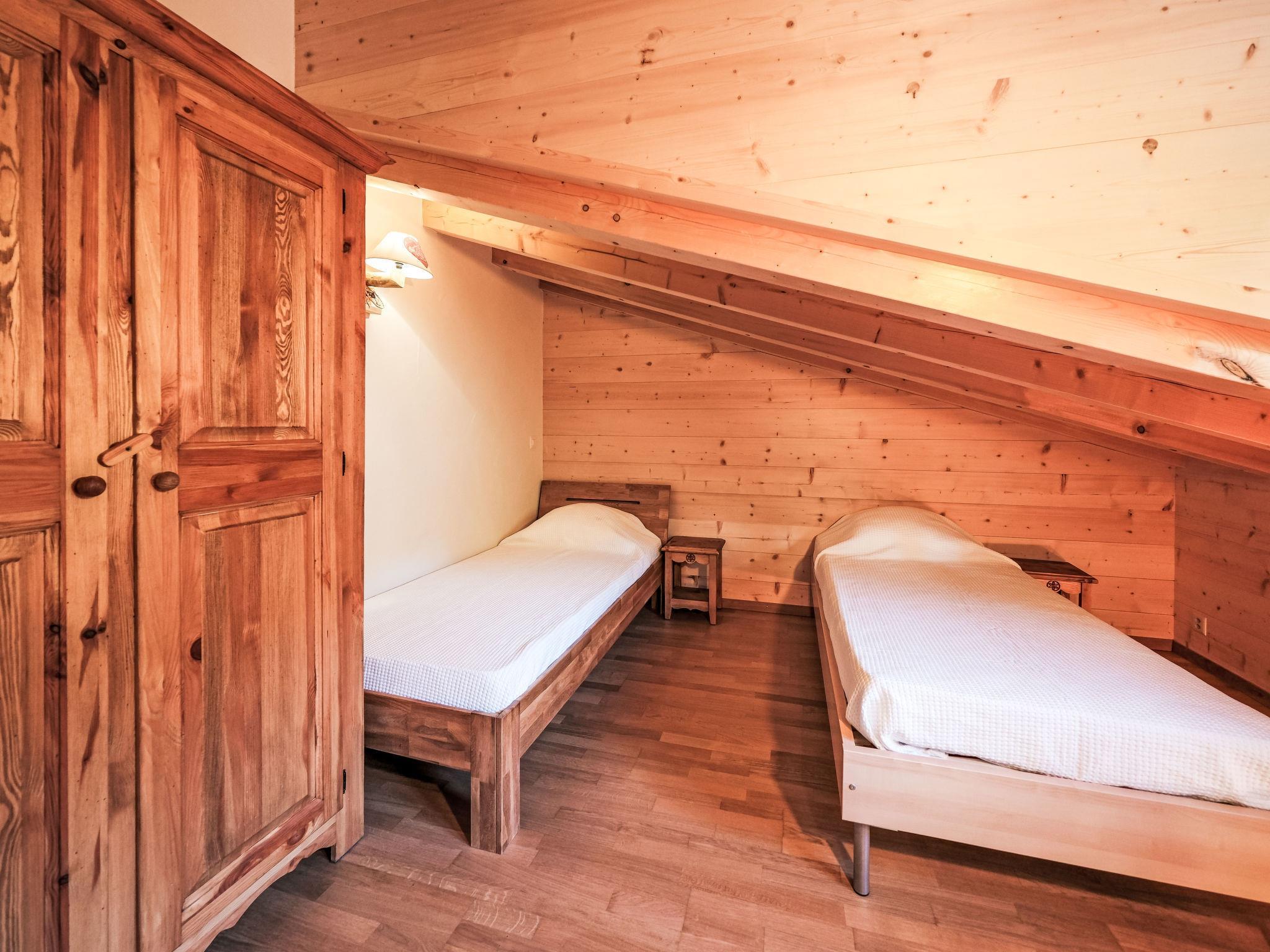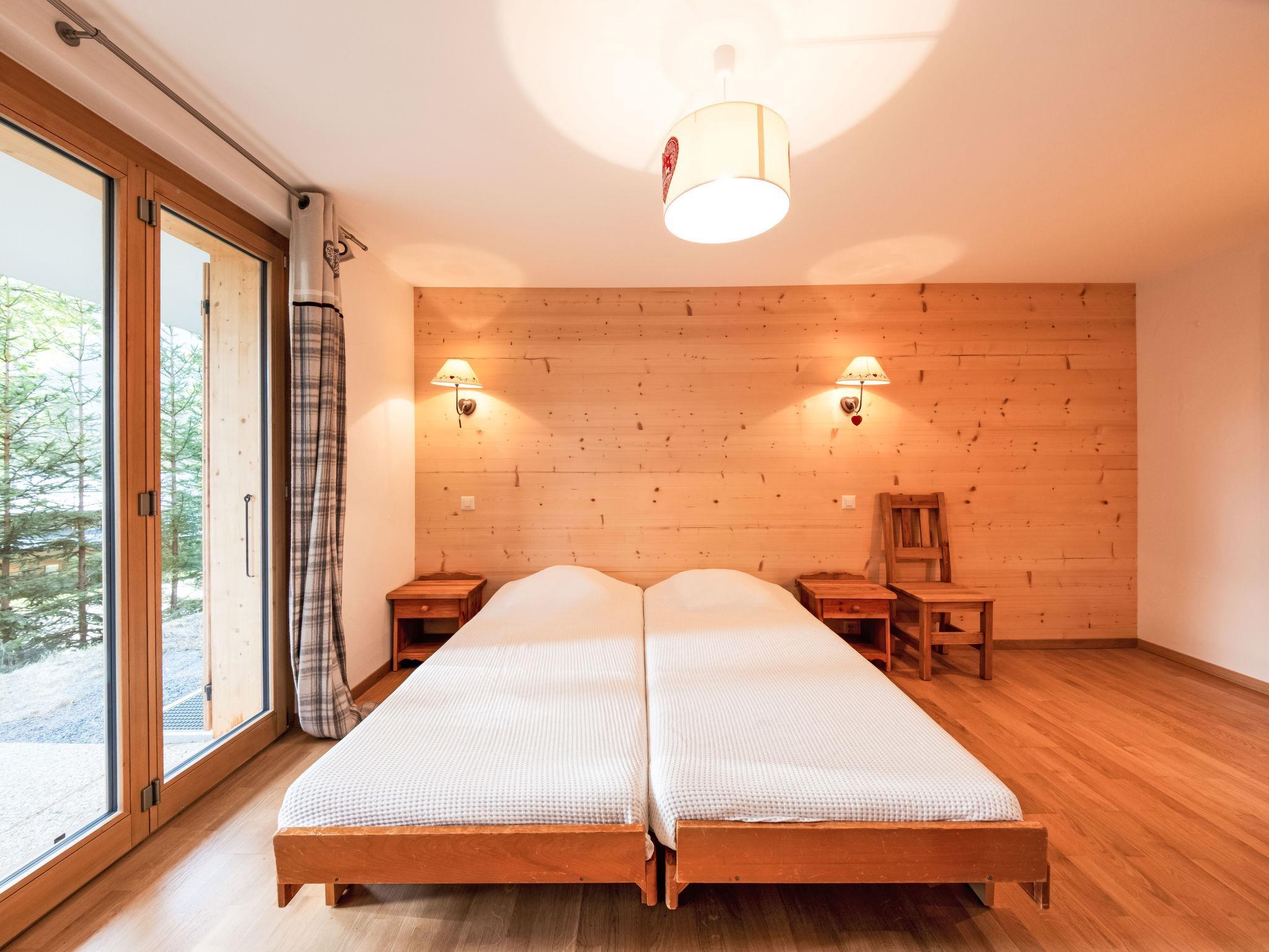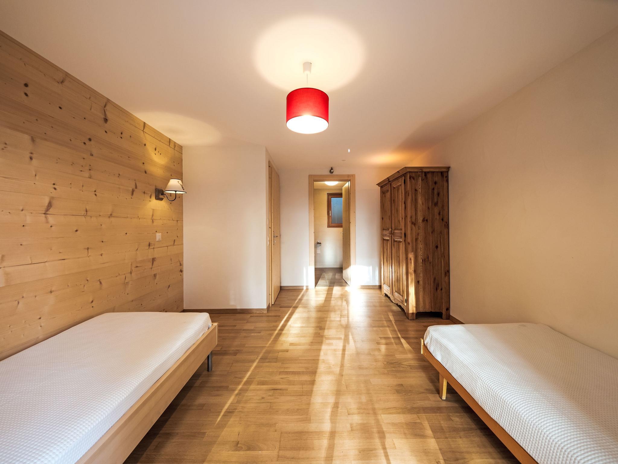 "Dipankar", 5-room chalet 150 m2 on 4 levels, south facing position. Spacious and bright, fully renovated, beautiful and modern furnishings: large living/dining room with Scandinavian wood stove, dining table, TV and flat screen. Exit to the balcony, west facing position. Open kitchen (oven, dishwasher, 4 induction hot plates, toaster, kettle, electric coffee machine, Capsules for coffee machine (Nespresso) extra, raclette grill, fondue Set (cheese)). On the lower ground floor: 1 room with 2 beds (80 cm), bath/WC. Exit to the garden, to the terrace. 1 room with 2 beds (80 cm), shower/WC. Exit to the garden, to the terrace. Upper floor: 1 room with 1 french bed (1 x 160 cm), shower/WC. Exit to the balcony, west facing position. 1 room with 3 beds (80 cm), bath/WC. 2 small balconies, west facing position, small patio. View of the forest. Facilities: washing machine, dryer, baby cot. Internet (WiFi, free). Parking (1 car), garage (1 car). Please note: non-smoking house.