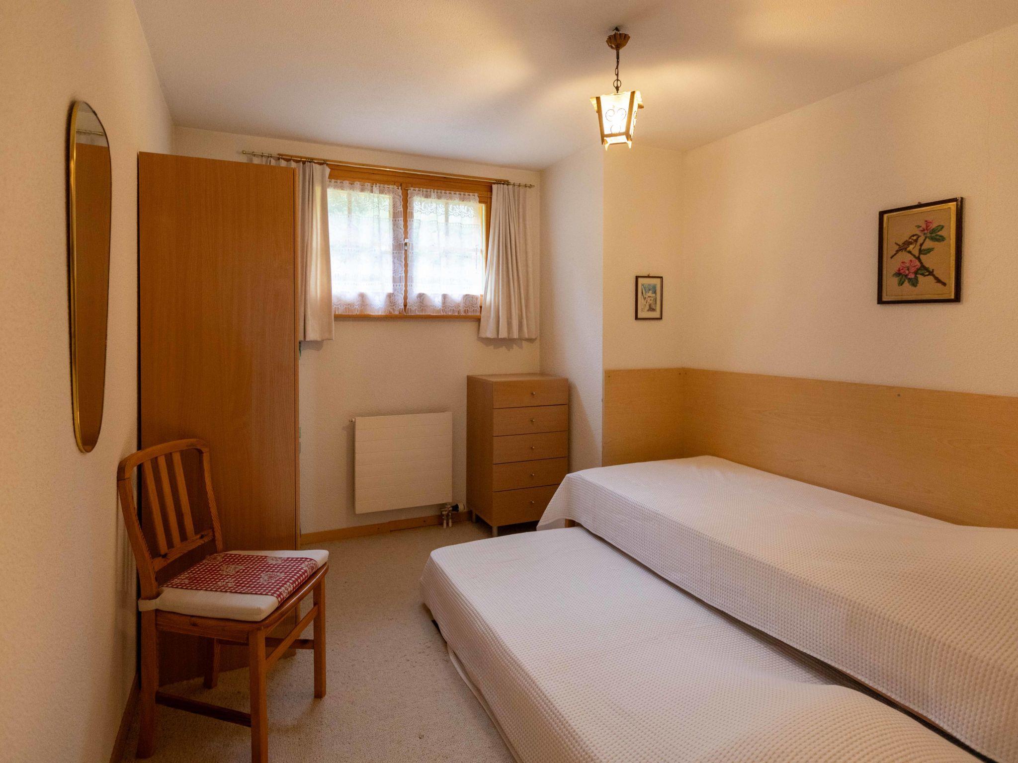 "Chaperon Rouge B5", 3-room apartment 65 m2 on 1st floor, south facing position. Practical and cosy furnishings: living/dining room with open-hearth fireplace, dining table and TV. Exit to the balcony, south facing position. 1 room with 1 pull-out bed (2 x 90 cm, length 190 cm). 1 room with 2 beds (90 cm, length 200 cm), bath/WC. Exit to the balcony, east facing position. Open kitchen (4 hot plates, oven, dishwasher, toaster, microwave, electric coffee machine, Capsules for coffee machine (Nespresso) extra, raclette grill, fondue Set (cheese)). Shower/WC. Carpet. Balcony 10 m2, south facing position. Balcony furniture. Very beautiful view of the mountains and the countryside. Facilities: iron, hair dryer. Internet (WiFi, free). Garage space n 19 (1 car). Please note: non-smokers only. No lift.