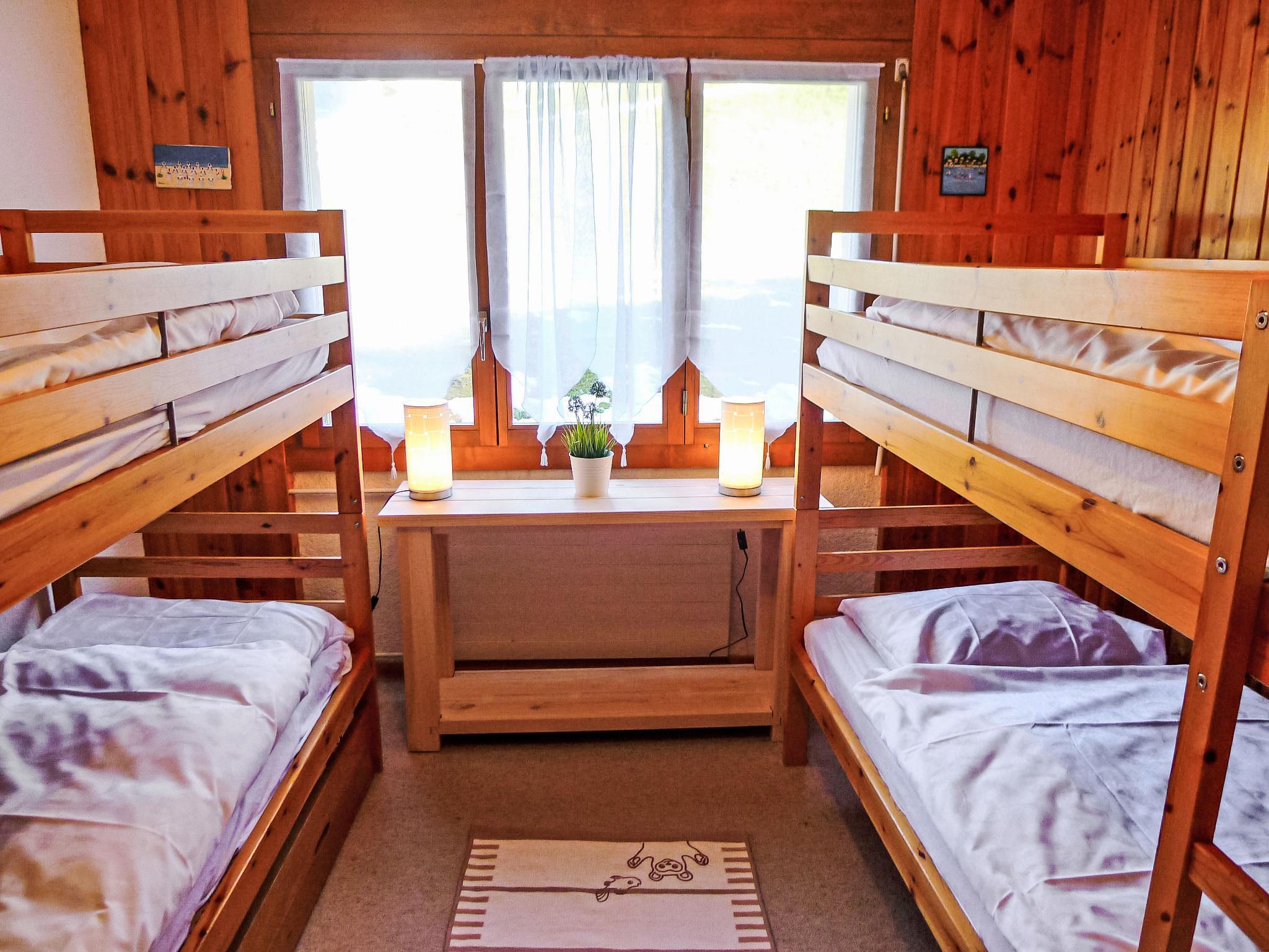 "Hyacinthe 2", 3-room apartment 80 m2, on the ground floor, south facing position. Practical and beautiful furnishings: living/dining room with cable TV. Exit to the garden, to the terrace. 1 room, without wardrobe with 1 double bed (160 cm, length 200 cm). 1 room with 2 x 2 bunk beds (80 cm, length 190 cm). Small kitchen (oven, dishwasher, 4 ceramic glass hob hotplates, toaster, kettle, microwave, freezer, electric coffee machine, Capsules for coffee machine (Martello) extra, raclette grill, fondue Set (cheese)) with hatch. Bath/bidet/WC, shower/WC. Parquet floors, carpet. Terrace. Terrace furniture. Beautiful view. Facilities: iron, hair dryer. Internet (WiFi, free). Garage space n 18.