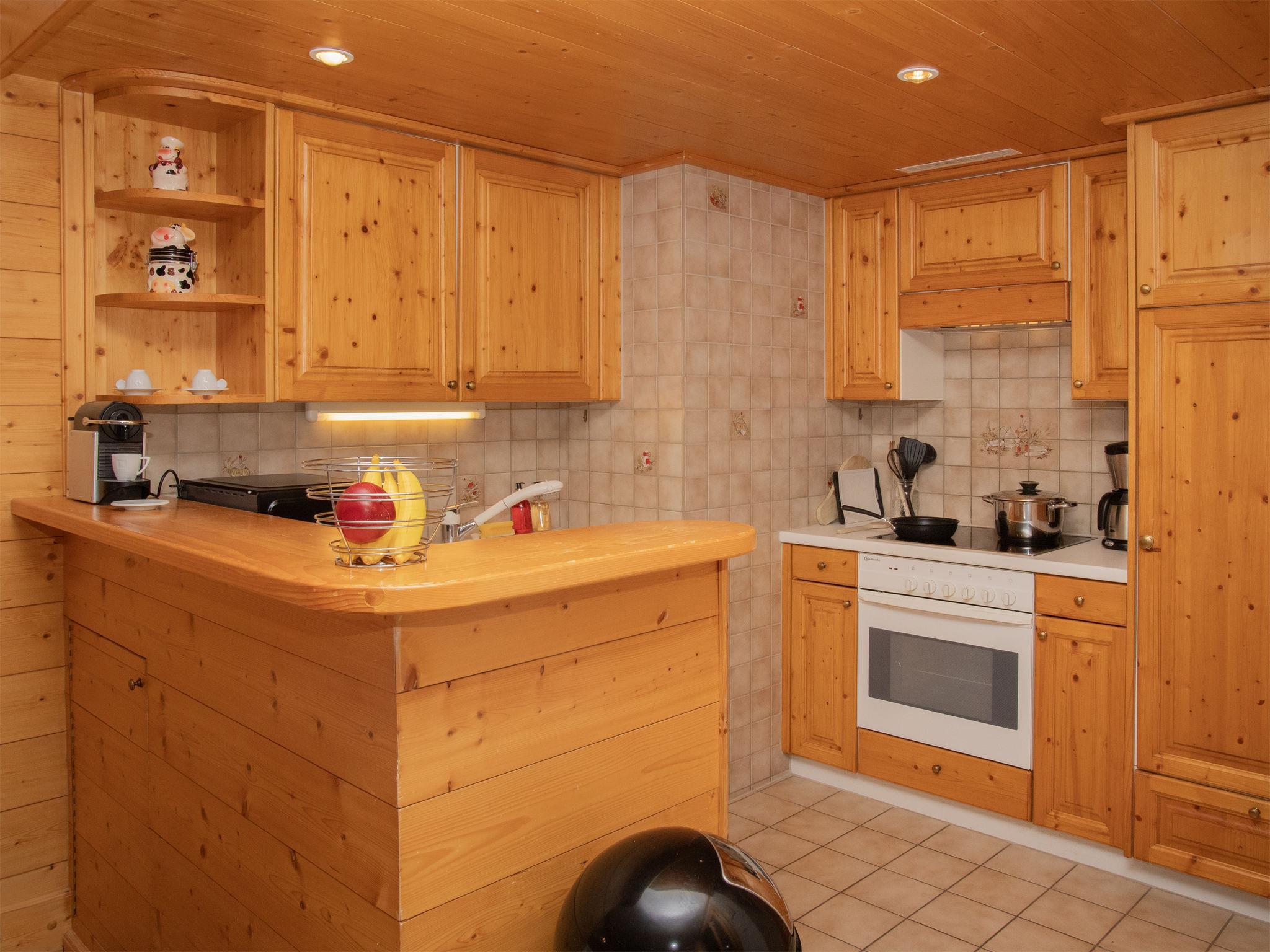 "Résidence Le Bristol 14", 3-room apartment 65 m2 on 2nd floor, south facing position. Bright, comfortable and beautiful furnishings: living/dining room with open-hearth fireplace (only for decoration), TV (flat screen). Exit to the balcony. 1 room, without window with 1 double bed (140 cm, length 200 cm), bath/WC. 1 room with 1 french bed (160 cm, length 200 cm). Exit to the balcony. Open kitchen (oven, dishwasher, 4 ceramic glass hob hotplates, toaster, kettle, microwave, electric coffee machine, raclette grill, fondue Set (cheese)). Sep. WC. Balcony 15 m2, south facing position. Terrace furniture. View of the mountains and the countryside. Facilities: iron, hair dryer. Internet (WiFi, free). Garage space n 7. Please note: non-smokers only.