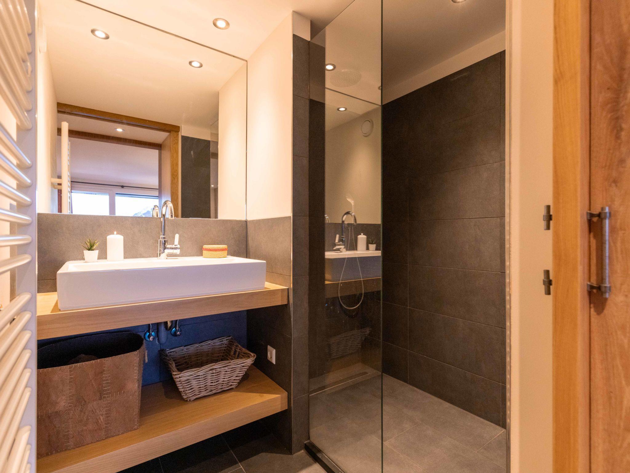 "Christina 9", 4-room penthouse 127 m2 on 2nd floor, south facing position. Object suitable for 6 adults + 1 child. Fully renovated, comfortable and modern furnishings: living/dining room with open-hearth fireplace (only for decoration), dining table, dining nook and TV (flat screen). Exit to the balcony, south facing position. 1 room with 2 beds (90 cm, length 200 cm), shower. Exit to the balcony, south facing position. Open kitchen (oven, dishwasher, 4 induction hot plates, toaster, kettle, microwave, freezer, electric coffee machine, Capsules for coffee machine (Nespresso) extra, raclette grill, fondue Set (cheese)) with bar. Sep. WC. Upper floor: 1 room with sloping ceilings, without wardrobe with 2 beds (90 cm, length 200 cm), 1 sleeping facility (1 x 80 cm, length 170 cm). 1 room with sloping ceilings, without wardrobe with 2 beds (90 cm, length 200 cm). Bath/shower/WC. 2 small balconies, south facing position. Terrace furniture. Very beautiful panoramic view of the mountains. Facilities: hair dryer. Garage space n 9 (1 car), height 190 cm. Please note: non-smokers only. No lift.