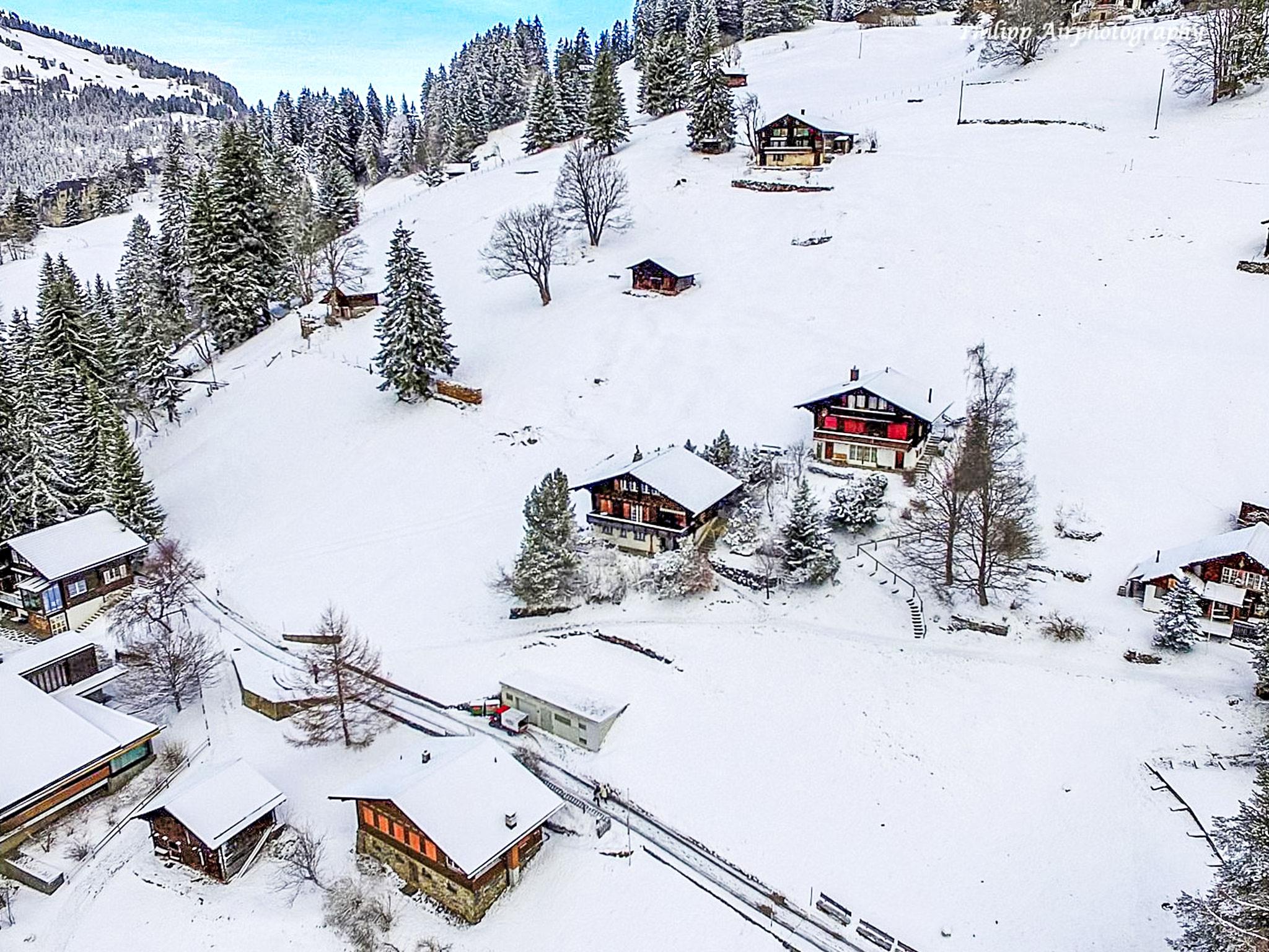 Wengen: Cosy chalet "Jungfrau an der Ledi", detached. Outside the resort, 1 km from the centre of Wengen, in the district Ledi, in a quiet, sunny position on a slope. For shared use: natural state property. Patio, garden furniture. Pre-arrival grocery service. Motor access to 50 m from the house. Shop 1 km, supermarket 1.2 km, restaurant 800 m, bakery 1 km, bus stop "Lauterbrunnen (by train)" 4.2 km, railway station "Wengen" 1.2 km. Cable car 1 km, skisport facilities 1 km, ski school 1 km, children's ski school 1 km. Well-known lakes can easily be reached: Thunersee 13 km, Brienzersee 13 km. Please note: car-free holiday complex. Arrival via mountain railway.