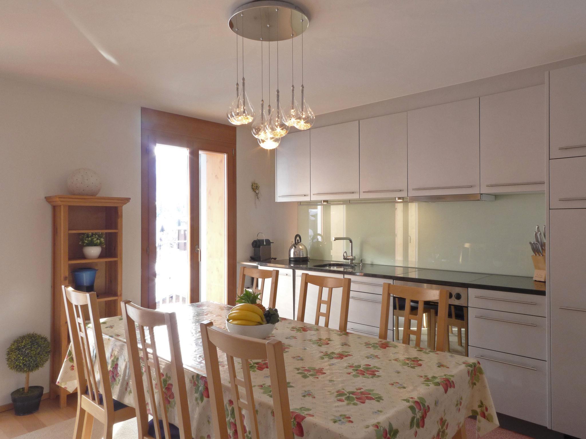 "Eden Apt.D", 3-room apartment 61 m2 on 2nd floor. Stylish and cosy furnishings: living/dining room with cable TV, radio, CD-player and DVD. 2 rooms, each room with 2 beds (90 cm, length 200 cm). Open kitchen (oven, dishwasher, 4 ceramic glass hob hotplates, toaster, kettle, microwave, electric coffee machine, Capsules for coffee machine (Nespresso) extra, fondue Set (cheese)). Shower/WC, bath/shower/WC. Small balcony. Very beautiful panoramic view of the mountains. Facilities: washing machine, dryer, iron, hair dryer. Internet (WiFi, free). Please note: non-smokers only.