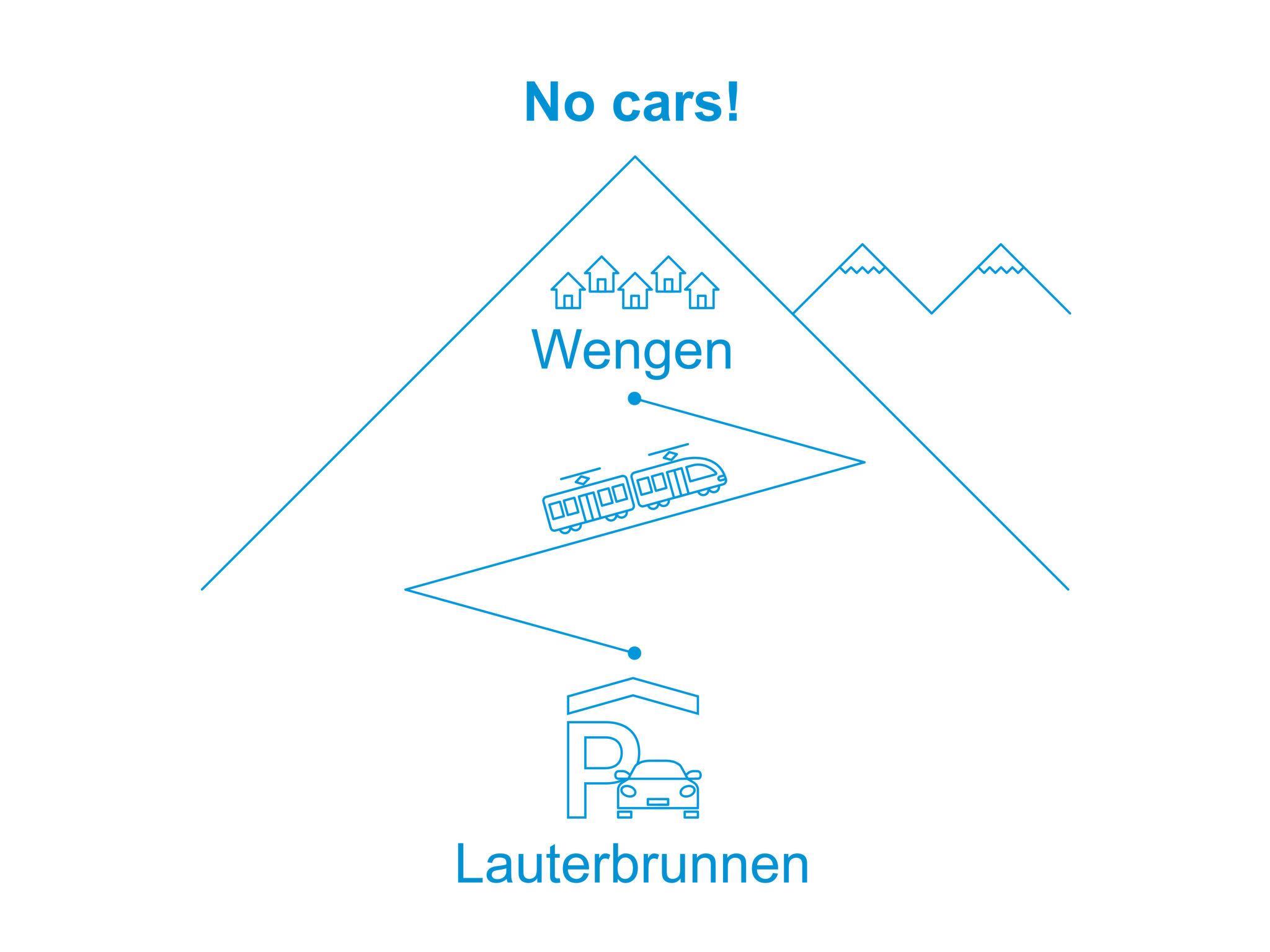 Apartment block "Fortuna", built in 2006. 400 m from the centre of Wengen, on a slope, excellent location: right in the centre but still quiet. In the house: central heating system, washing machine, tumble dryer (for shared use). Pre-arrival grocery service. Shop, supermarket 400 m, restaurant 200 m, bar, bakery 400 m, 5 minute walk to the centre, bus stop "Lauterbrunnen (by train)" 3.4 km, railway station "Wengen" 400 m, outdoor swimming pool 700 m. Cable car, skisport facilities 400 m, children's playground 200 m. Well-known lakes can easily be reached: Thunersee 13 km, Brienzersee 13 km. Please note: car-free holiday complex. Arrival via mountain railway. Arrival is only possible by train from Lauterbrunnen – 14 minutes driving time.