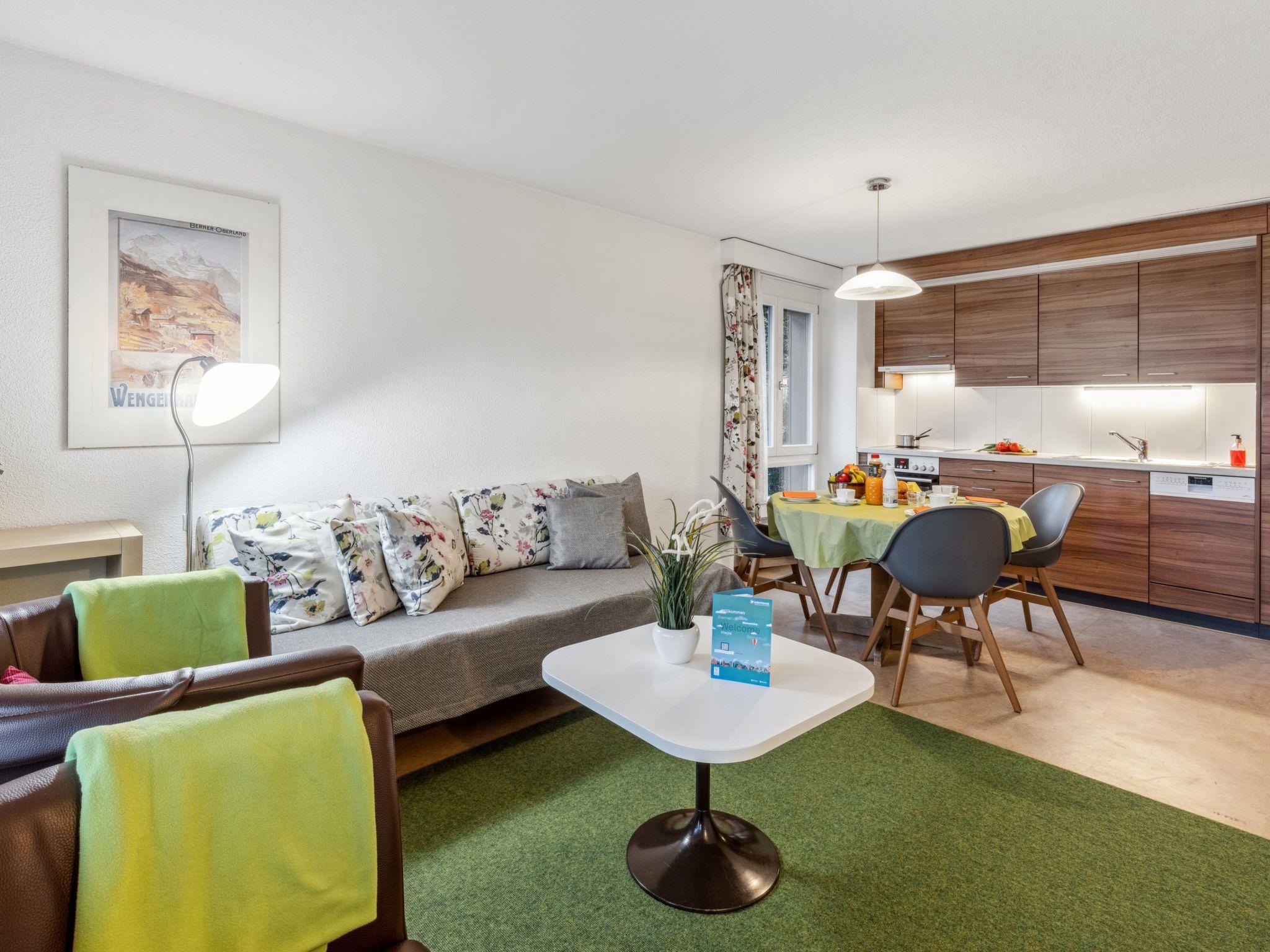 Apartment block "Residence". In the resort 100 m from the centre of Wengen, in a central, sunny position. In the house: restaurant, lift, central heating system. Pre-arrival grocery service. Shop 100 m, grocery 50 m, supermarket 100 m, bar 50 m, bakery 100 m, bus stop "Lauterbrunnen (by train)" 3.2 km, railway station "Wengen" 150 m, outdoor swimming pool 500 m. Cable car, skisport facilities 100 m, children's playground 30 m. Well-known lakes can easily be reached: Thunersee 13 km, Brienzersee 13 km. Please note: car-free holiday complex. Arrival via mountain railway. Arrival is only possible by train from Lauterbrunnen – 14 minutes driving time.