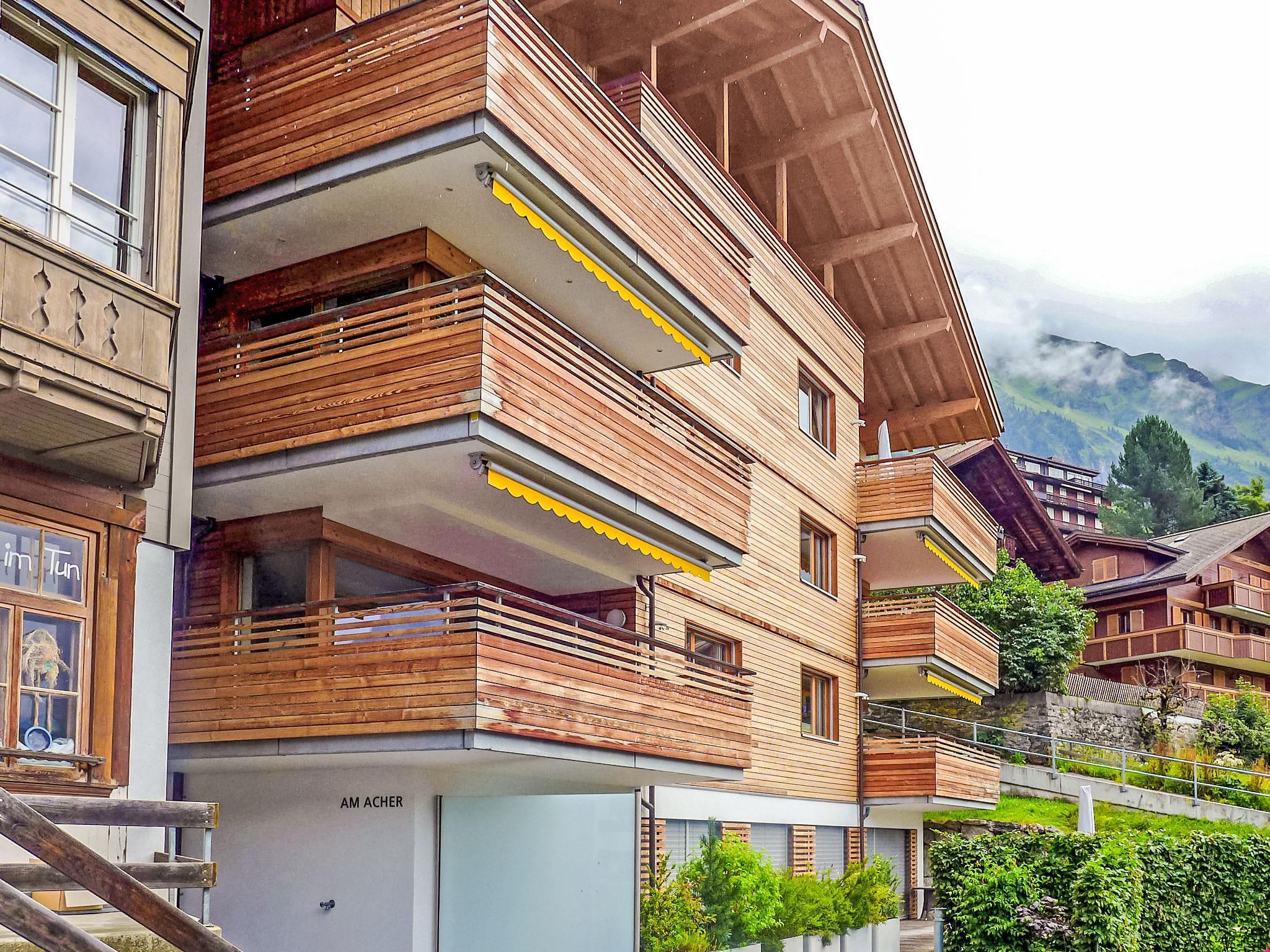 Apartment block "Am Acher II", built in 2008. In the district of Am Acher 250 m from the centre of Wengen, on a slope, excellent location: right in the centre but still quiet. In the house: lift, central heating system. Pre-arrival grocery service. Shop, supermarket 250 m, restaurant 100 m, bar, bakery 250 m, 3 minute walk to the centre, bus stop "Lauterbrunnen (by train)" 3.3 km, railway station "Wengen" 250 m, outdoor swimming pool 600 m. Cable car, skisport facilities 250 m, children's playground 100 m. Well-known lakes can easily be reached: Thunersee 13 km, Brienzersee 13 km. Please note: car-free holiday complex. Arrival via mountain railway. Arrival is only possible by train from Lauterbrunnen – 14 minutes driving time.
