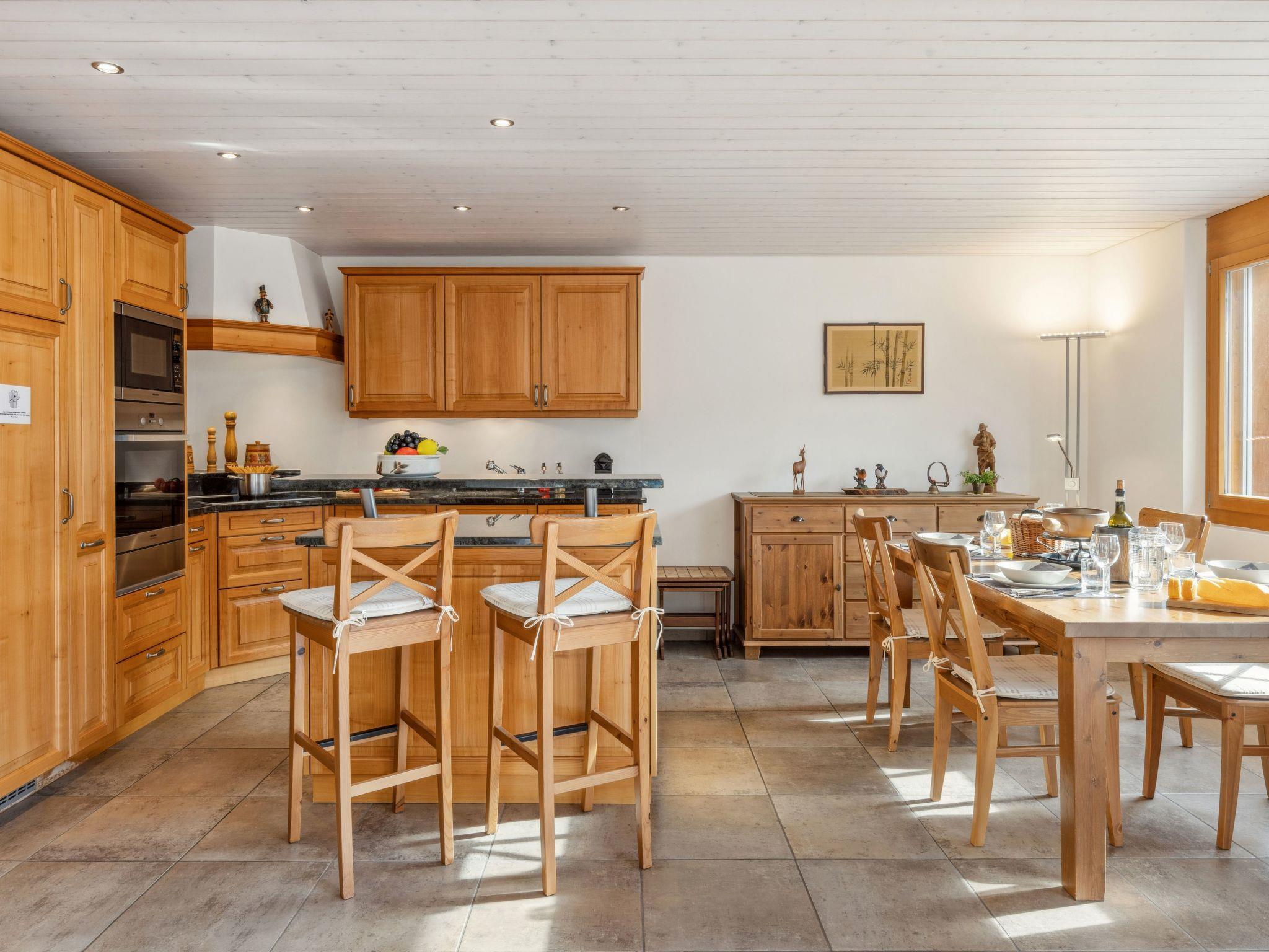 "Am Acher II Apt. F", 3-room apartment 93 m2 on 3rd floor. Spacious and bright, modern and stylish furnishings: living/dining room with Scandinavian wood stove, cable TV and DVD. 1 room with 1 double bed (1 x 180 cm, length 200 cm), bath/shower/WC. 1 room with 2 beds (90 cm, length 200 cm). Large, open kitchen (oven, dishwasher, 4 induction hot plates, toaster, kettle, microwave, electric coffee machine, Capsules for coffee machine (Nespresso) extra, raclette grill, fondue Set (cheese)). Shower/WC. Large balcony. Balcony furniture. Marvellous panoramic view of the mountains. Facilities: washing machine, dryer, iron, hair dryer, logs (extra). Internet (WiFi, free). Please note: non-smokers only.