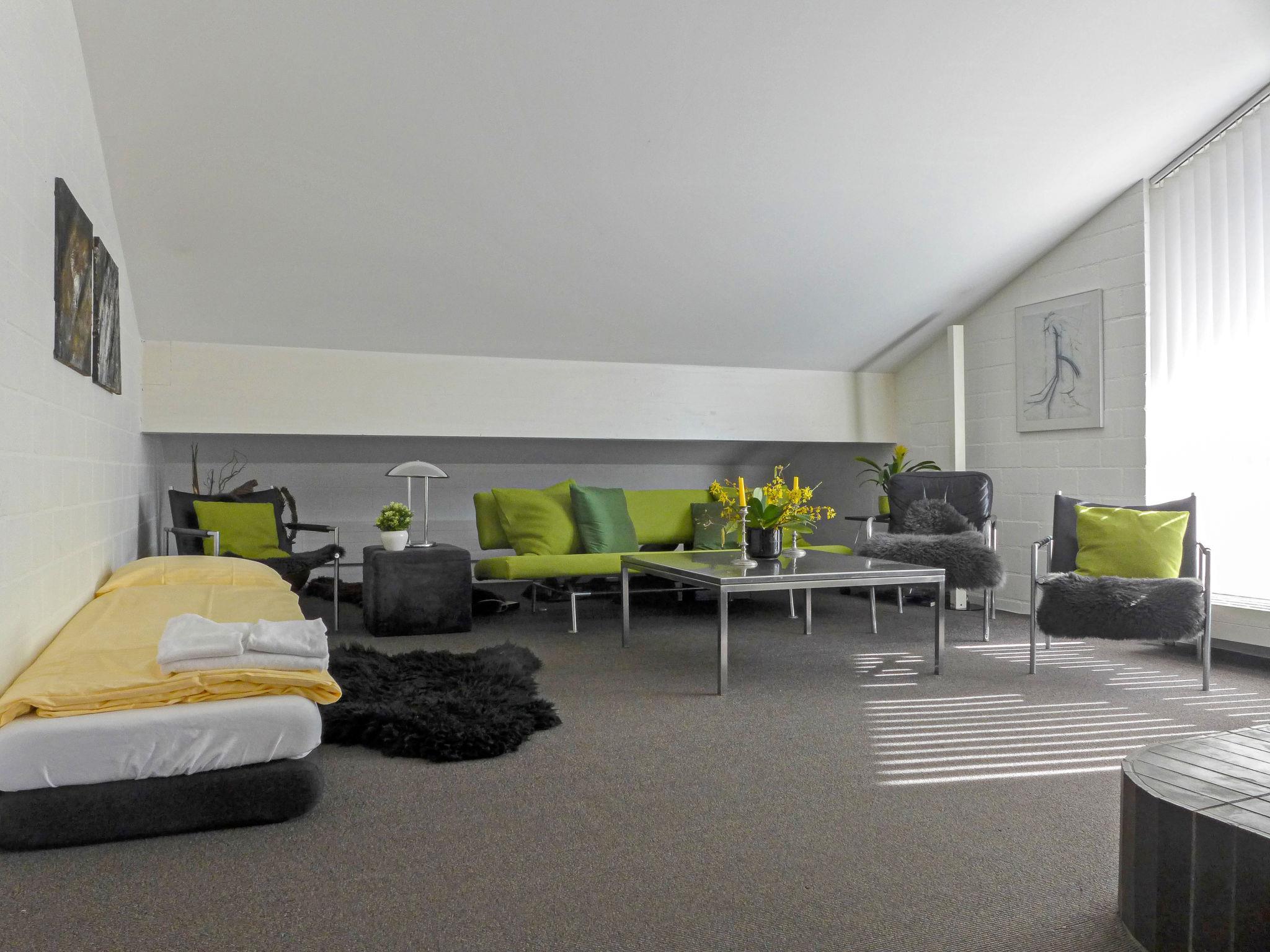 "Im Gruebi Apt.5", 3-room penthouse 105 m2 on 2nd floor, south facing position. Spacious and bright, partly with sloping ceilings, comfortable and tasteful furnishings: living/dining room with panoramic window with 1 sleeping facility (65 cm, length 195 cm), open-hearth fireplace, cable TV and flat screen. Exit to the balcony. 1 room with 2 beds (90 cm, length 200 cm). 1 room with 2 beds (90 cm, length 190 cm). Large, open kitchen (oven, dishwasher, 4 ceramic glass hob hotplates, toaster, kettle, electric coffee machine, Capsules for coffee machine (Nespresso) extra, raclette grill, fondue Set (cheese)). Bath/WC, shower/WC. Heating. Balcony, south facing position. Balcony furniture. Marvellous view of the mountains and Jungfrau. Facilities: washing machine, hair dryer, logs (extra). Internet (WiFi, free). Please note: non-smokers only.