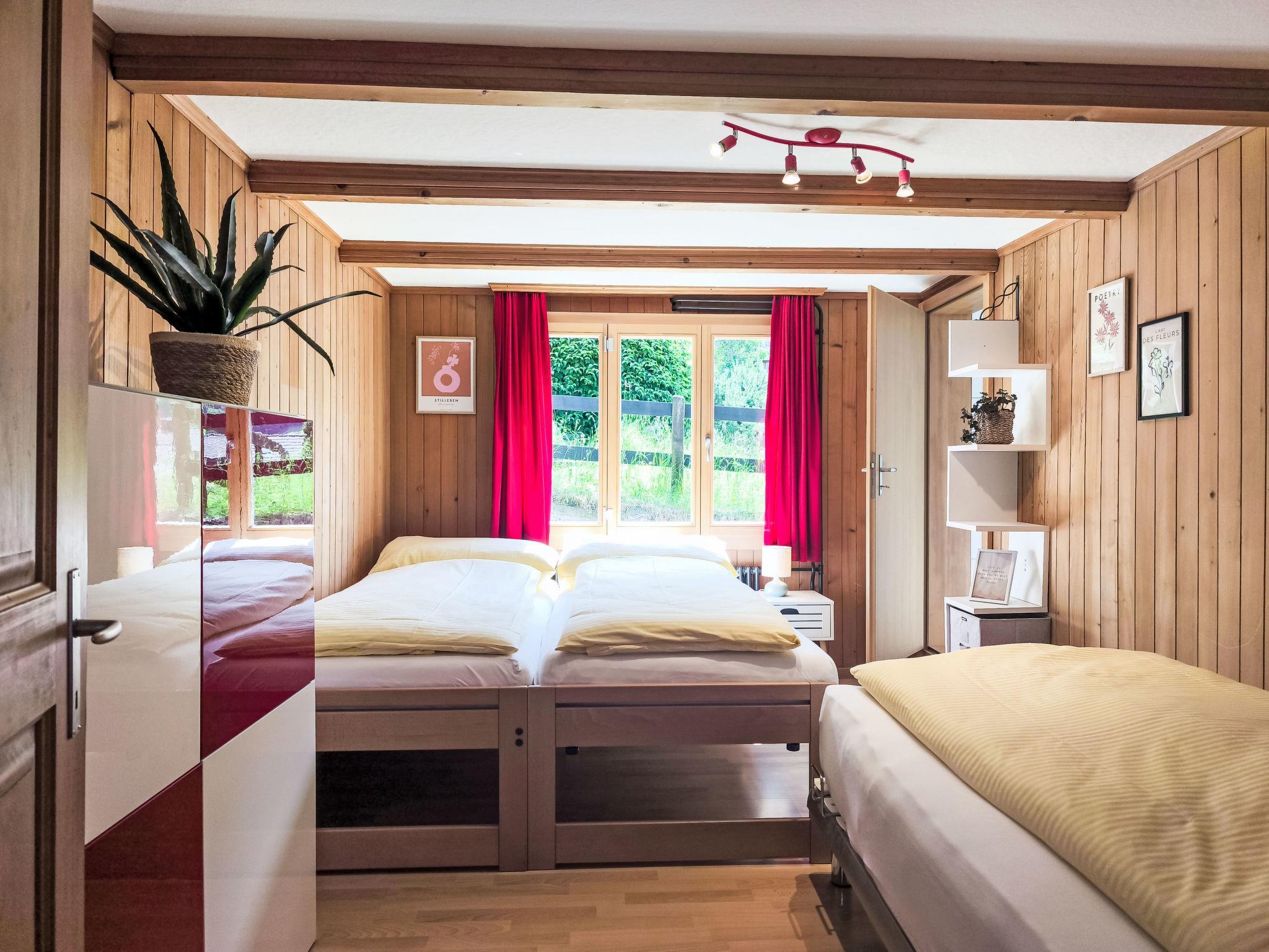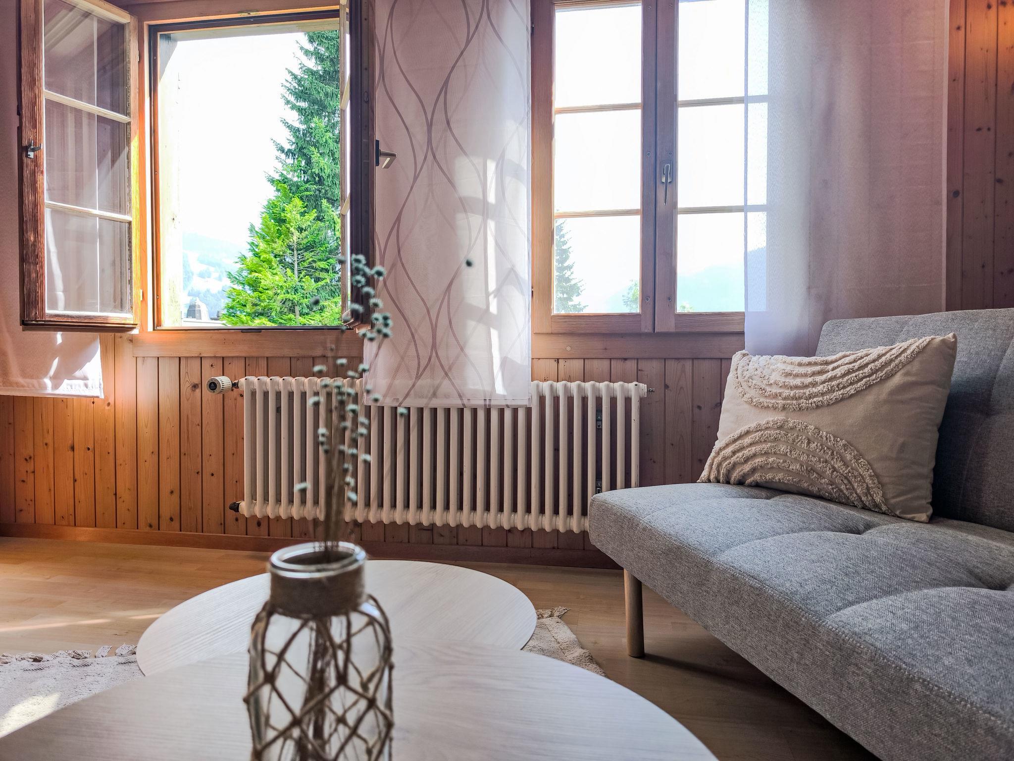 "Galliweidli", 3-room apartment 90 m2 on 1st floor. Spacious and bright, comfortable and cosy furnishings: living room with cable TV and flat screen. 1 room with 1 french bed (140 cm, length 200 cm). 1 room with 2 beds (90 cm, length 200 cm), 1 french bed (120 cm, length 200 cm). Large kitchen-/living room (oven, dishwasher, 4 ceramic glass hob hotplates, toaster, kettle, electric coffee machine, Capsules for coffee machine (Nespresso) extra, raclette grill). Bath/WC, sep. WC. Small terrace. Terrace furniture. Beautiful view of the mountains. Facilities: iron. Internet (WiFi, free). Please note: suitable for families. Non-smokers only.