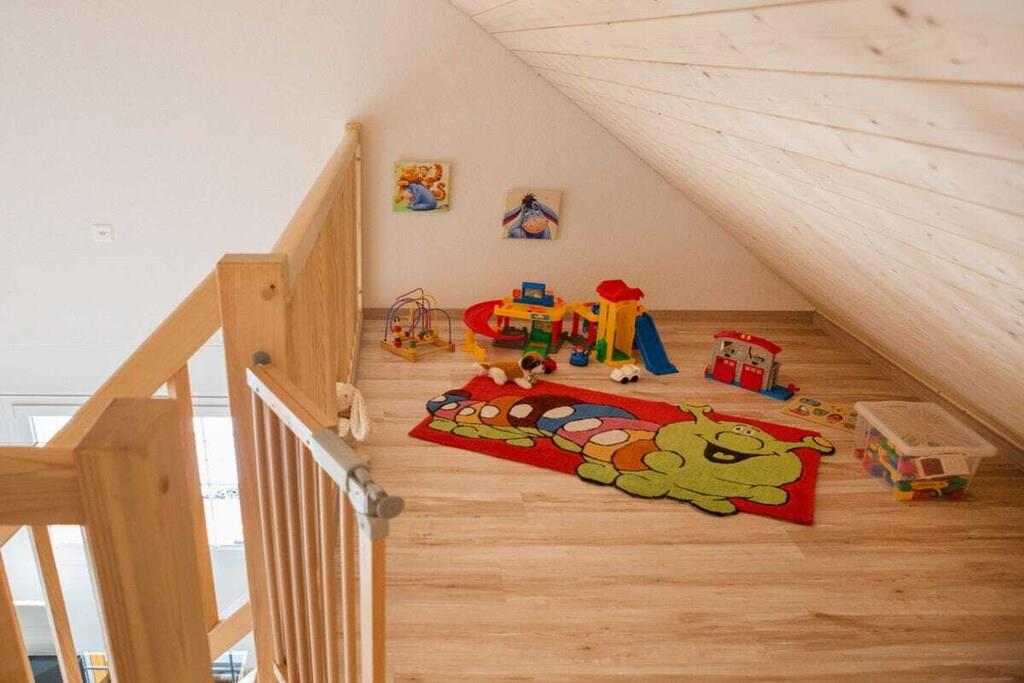 Mellemetage: (soveværelse(, enkeltseng, dobbeltseng, barneseng)) På 1. etage: (åbent køkken(, , tekøkken, Fjernsyn, radio, kogeplade, elkedel, brødrister, komfur, kaffemaskine, mikrobølgeovn, køleskab, fryser), stue / spisestue(Fjernsyn, spisebord, radio), soveværelse(, dobbeltseng, tremmeseng), badeværelse(toilet, tørretumbler, bruser, håndvask, føntørrer), pulterkammer(tørretumbler, vaskemaskine)) , , Internetadgang, balkon(havemøbler, solstole), varme, terrasse(Grill center, grill, havemøbler, solstole), have, parkering, trappegitter, tørreskab