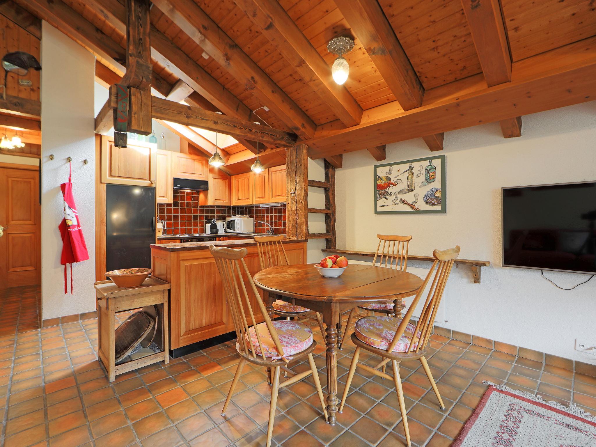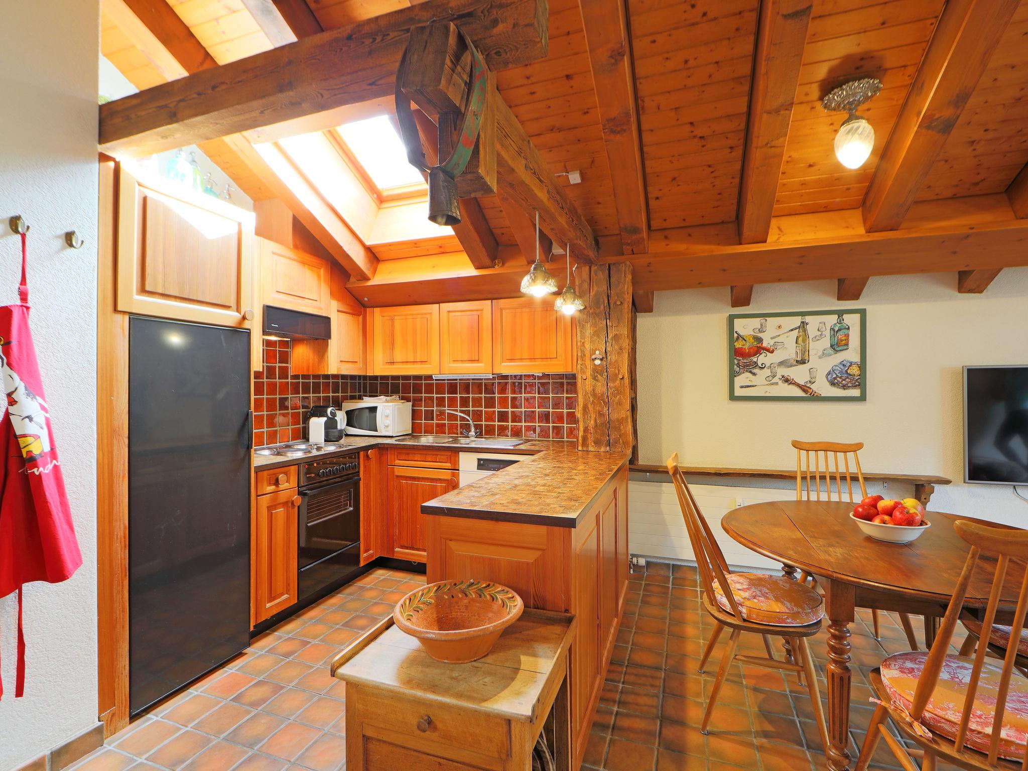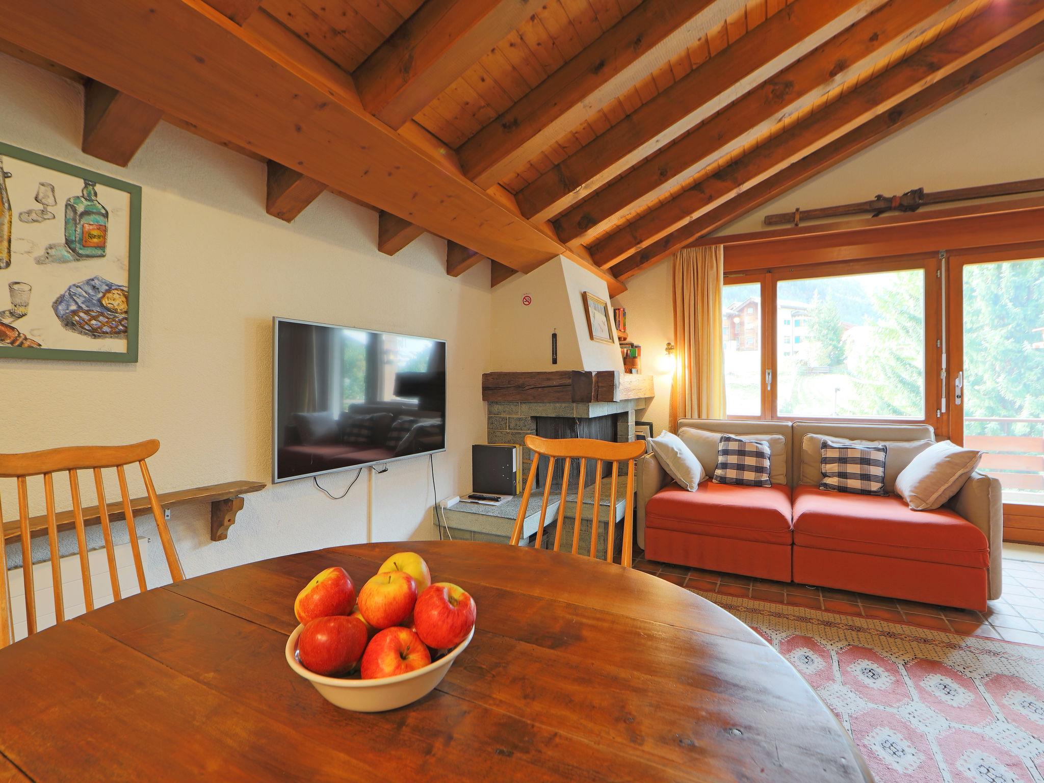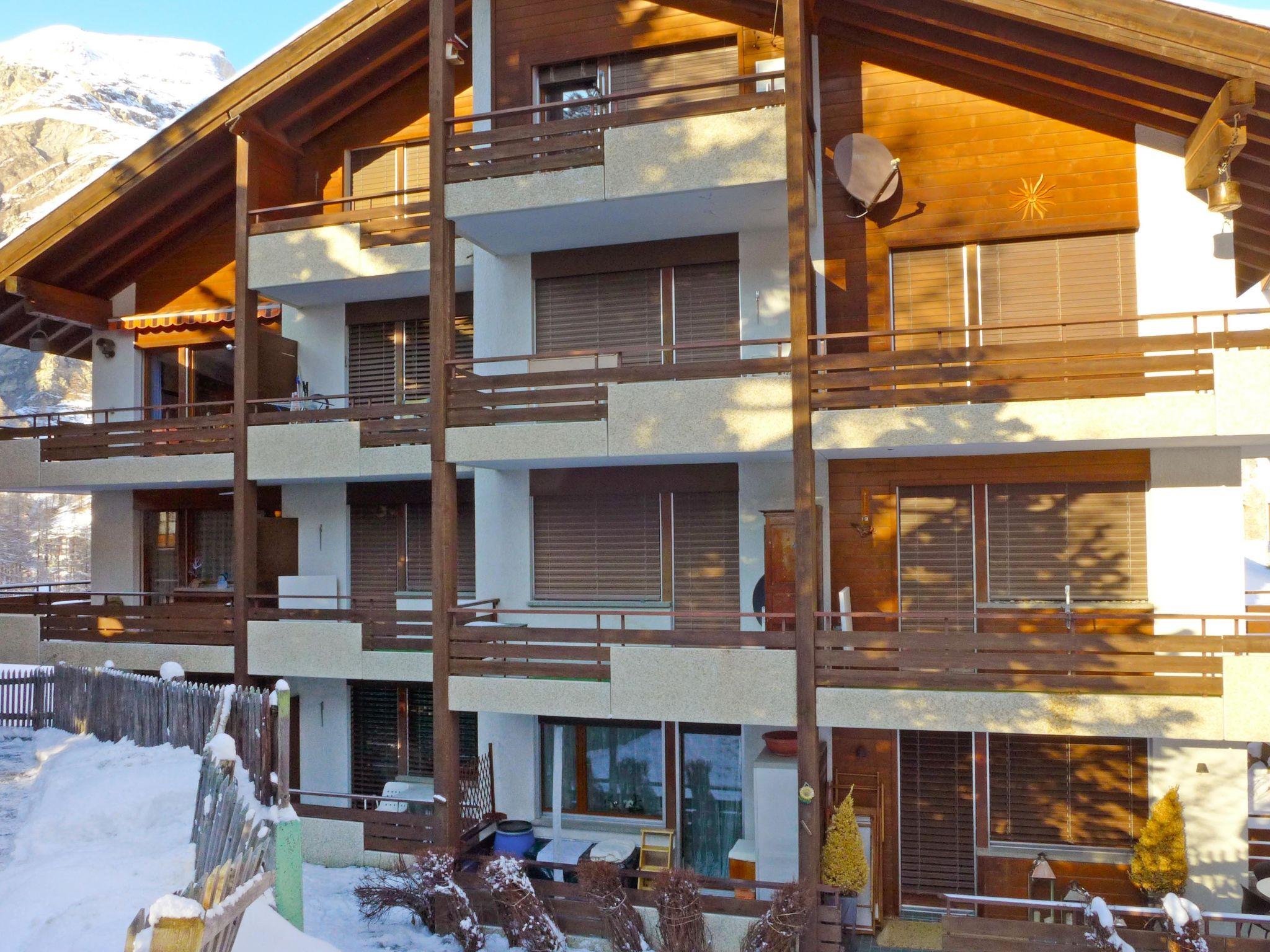 2-room apartment 65 m2, on the top floor. Partly with sloping ceilings, simple and cosy furnishings: living/sleeping room with 2 sofabeds (80 cm, length 200 cm), open-hearth fireplace (only for decoration), dining table and TV. Exit to the balcony. 1 room with 2 beds (90 cm, length 210 cm). Open kitchen (4 hot plates, oven, dishwasher, toaster, kettle, microwave, freezer, electric coffee machine, raclette grill, fondue Set (cheese)). Bath/WC. Balcony. Balcony furniture. Beautiful view of the mountains and Matterhorn. Facilities: hair dryer. Internet (WiFi, free). Please note: non-smokers only.