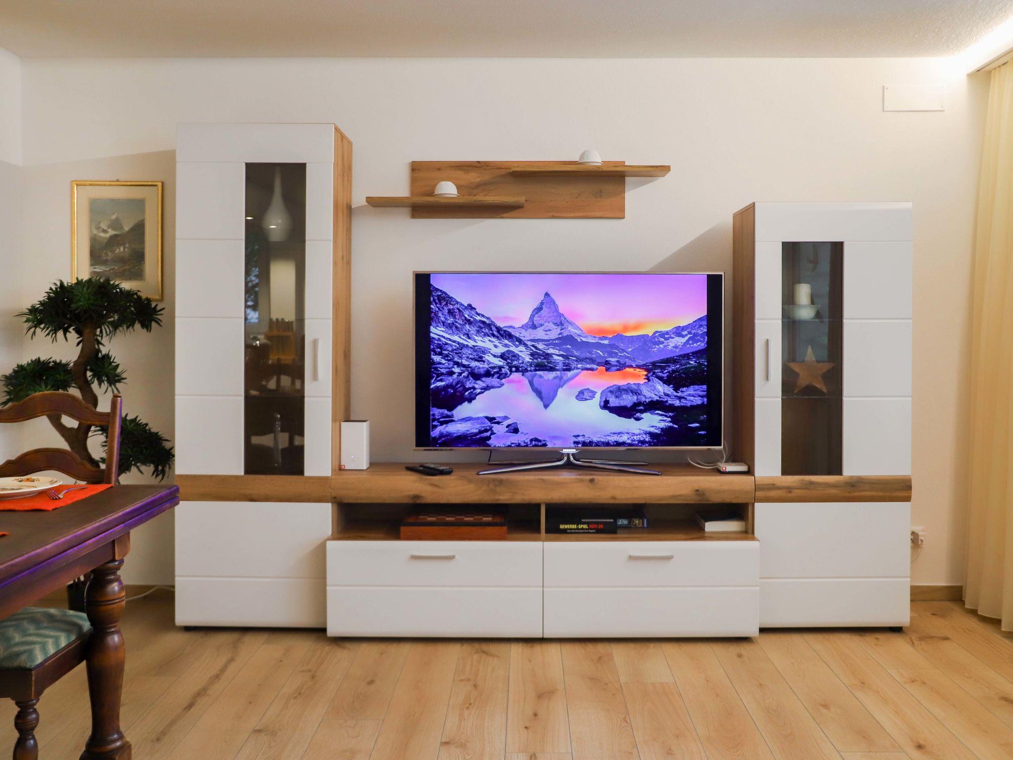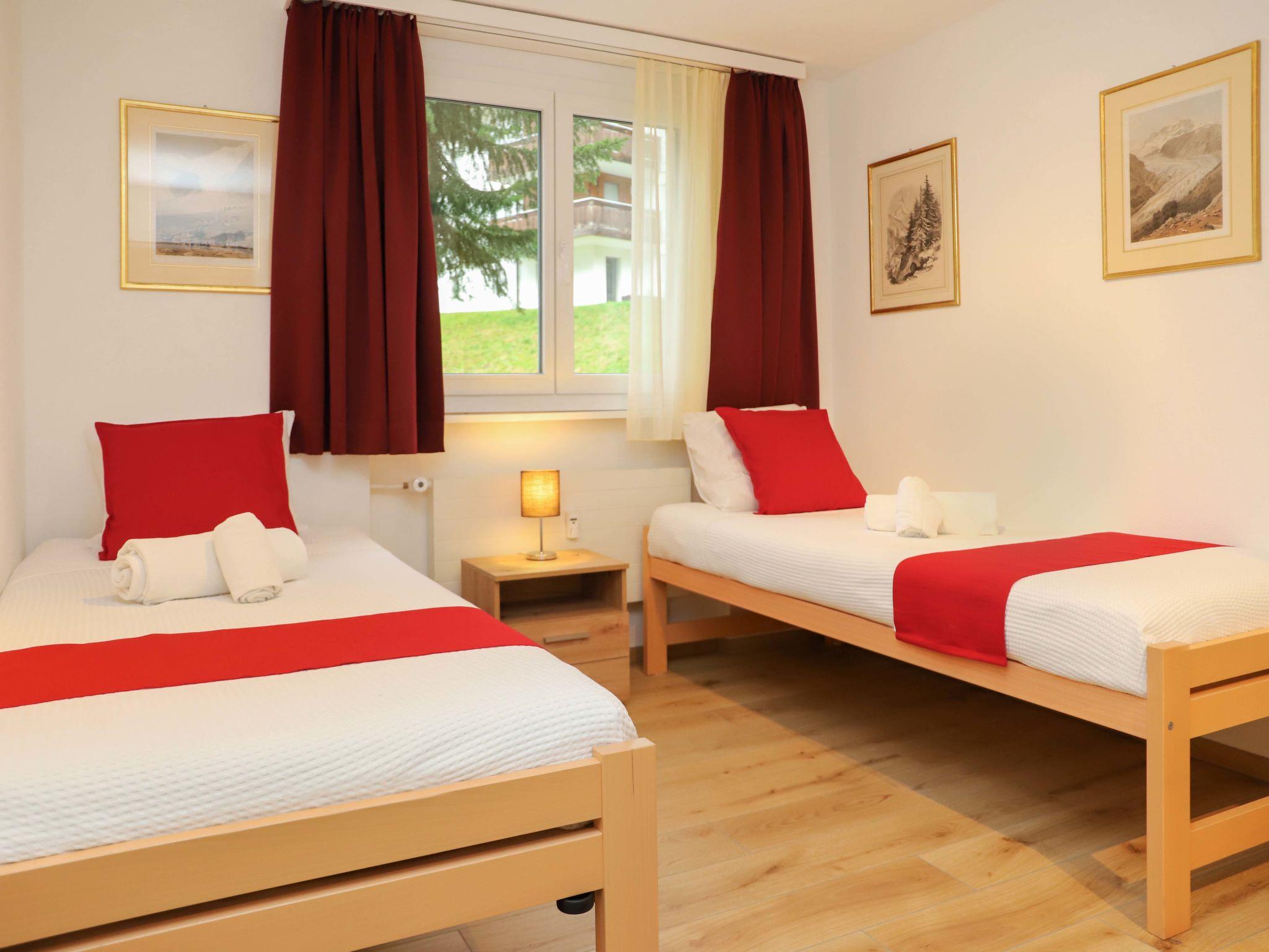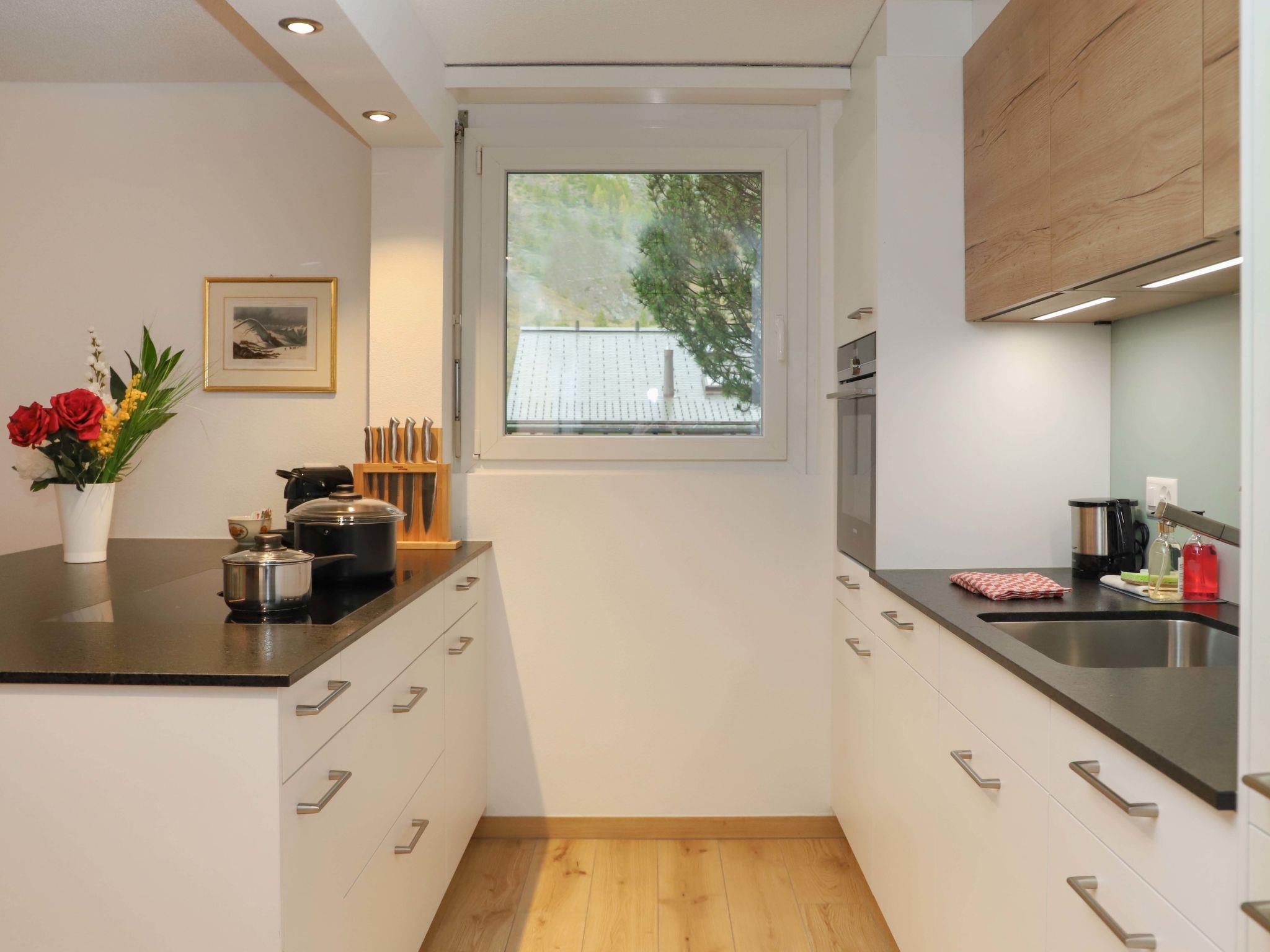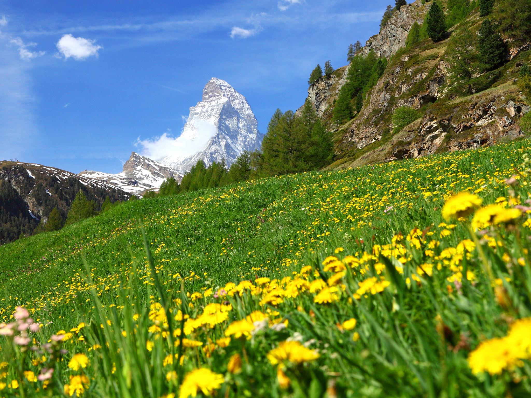 "Grillon", 3-room apartment 90 m2, on the ground floor, south facing position. Bright, fully renovated in 2022, beautiful and modern furnishings: open living/dining room with dining table and TV. Exit to the balcony, south facing position. 1 double bedroom with 1 double bed (1 x 180 cm, length 200 cm). 1 room with 2 beds (90 cm, length 200 cm). Open kitchen (oven, dishwasher, 4 induction hot plates, toaster, kettle, freezer, electric coffee machine, cooking island). Shower/WC, double hand-basin. Parquet floors. Balcony, south facing position. Balcony furniture. Side view of the Matterhorn. Facilities: hair dryer. Internet (WiFi, free). Please note: non-smokers only.