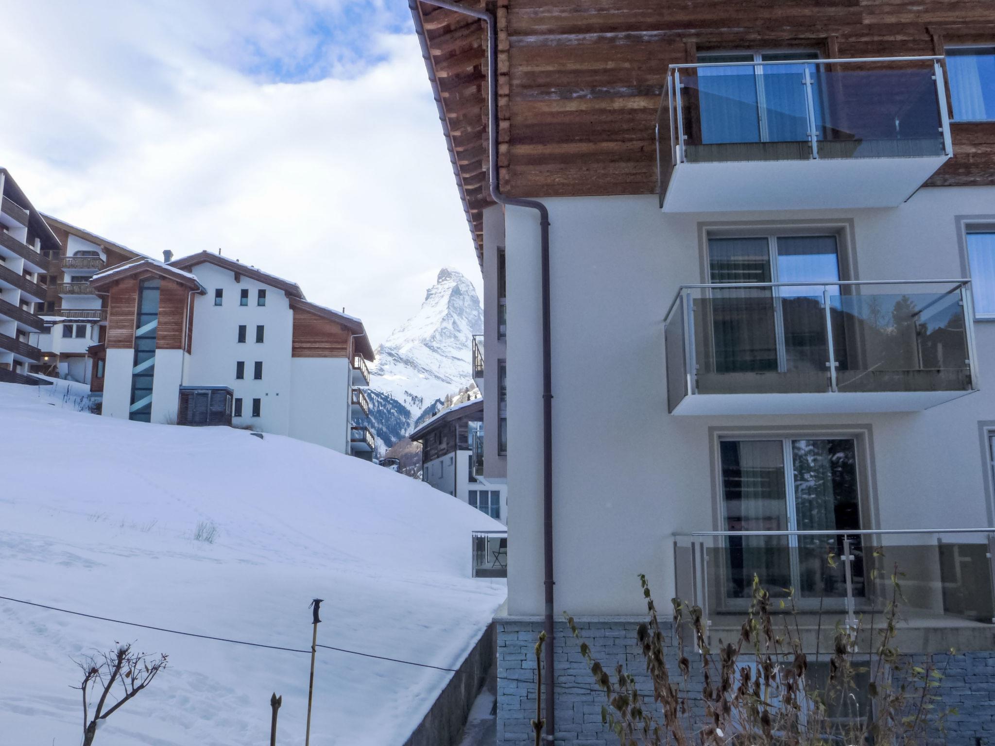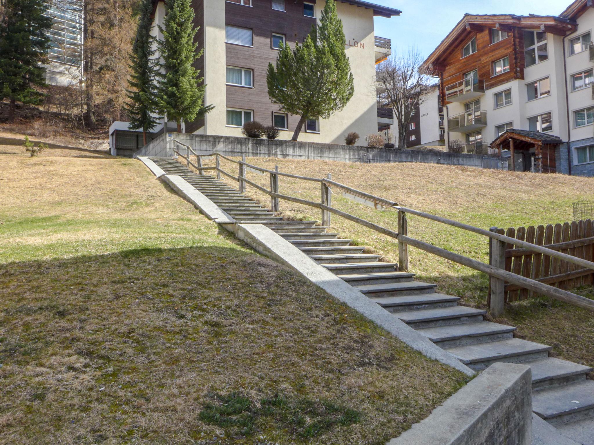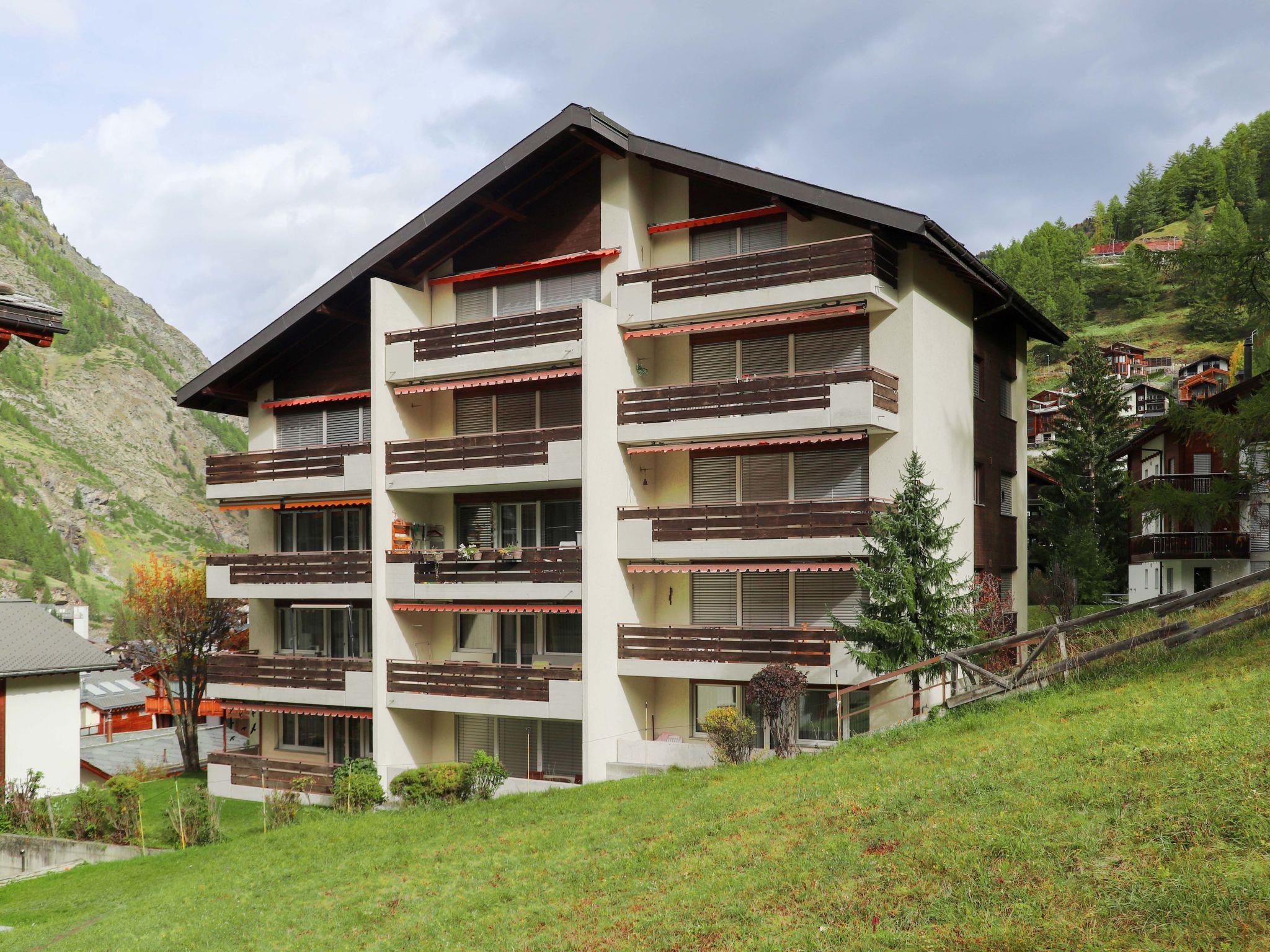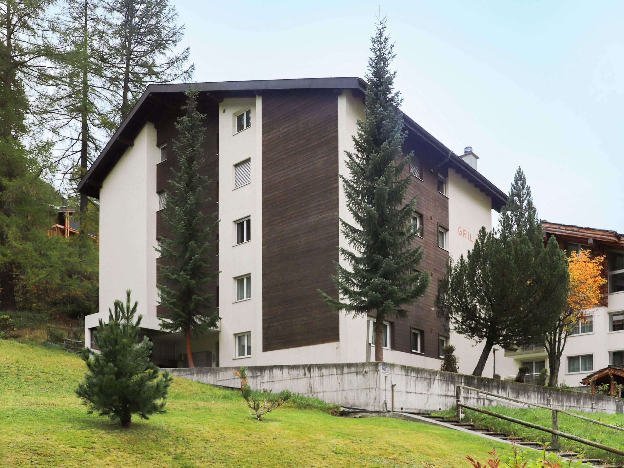 Simple apartment house "Grillon", 4 storeys. In the district of Wiesti 650 m from the centre of Zermatt, in a quiet, elevated position, south facing position. In the house: lift, storage room for skis, central heating system. Stepped path to the house. Supermarket 500 m, restaurant 100 m, bakery 400 m, 10 minute walk to the centre, bus stop "Wiestibrücke" 260 m, railway station "Bahnhof Zermatt" 650 m. Mountain railway 350 m, ski rental 350 m, ski bus stop, ski school 750 m, children's ski school. Cabs cannot stop right in front of the house. The keys‘ handover takes place by the agency Interhome in Zermatt.