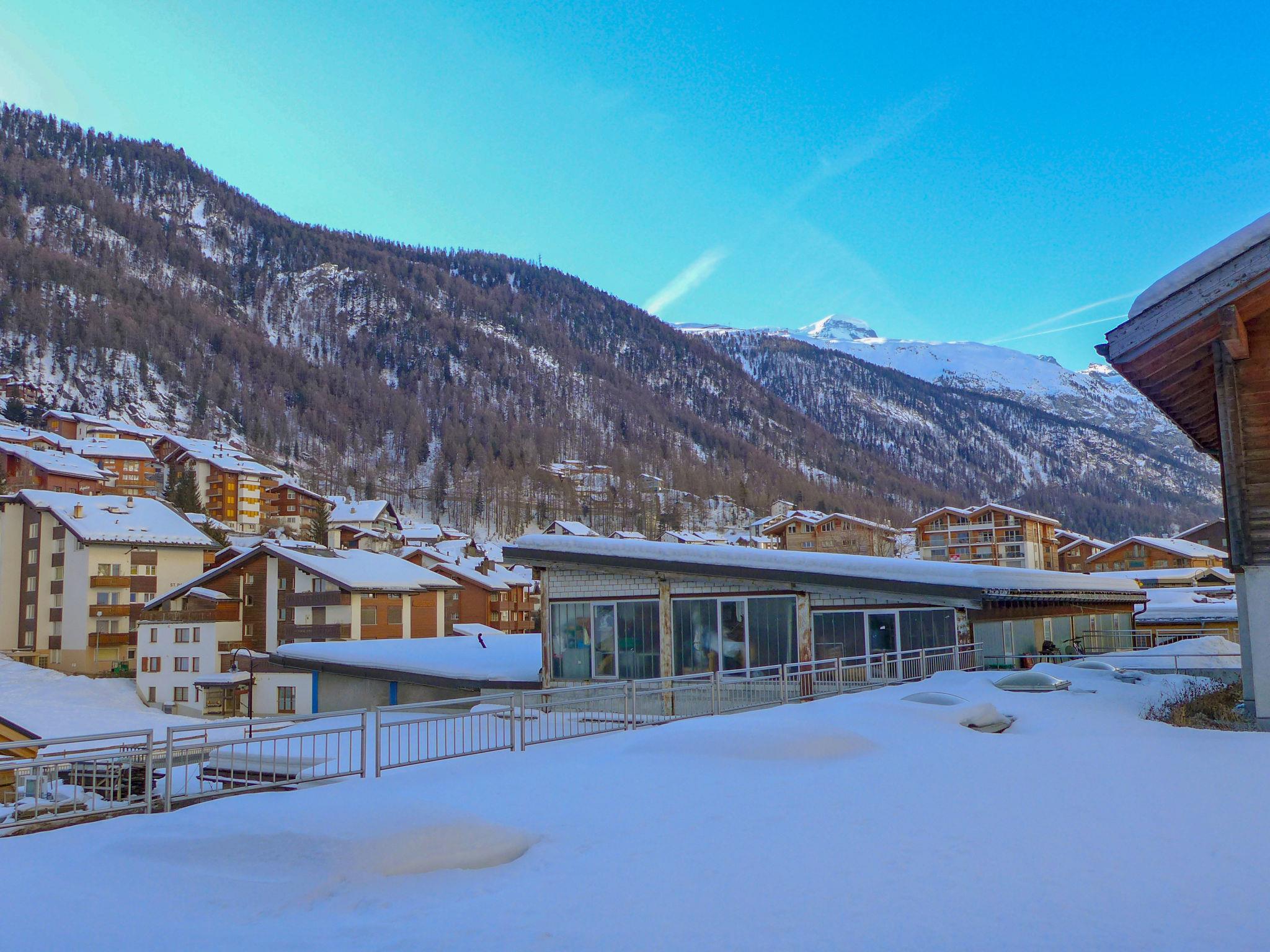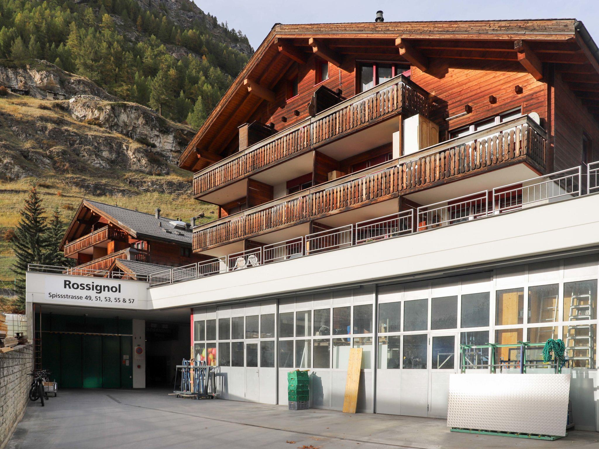 Small apartment house "Rossignol B", 3 storeys. In the district of Spiss, 650 m from the centre, in an elevated position, south facing position. In the house: lift, storage room for skis, central heating system. Supermarket, restaurant 450 m, bakery 550 m, bicycle rental 550 m, 8 minute walk to the centre, bus stop "Spiss" 95 m, railway station "Bahnhof Zermatt" 550 m. Mountain railway 650 m, ski rental 550 m, ski bus stop 95 m, ski school, children's ski school 950 m. Cabs cannot stop right in front of the house.