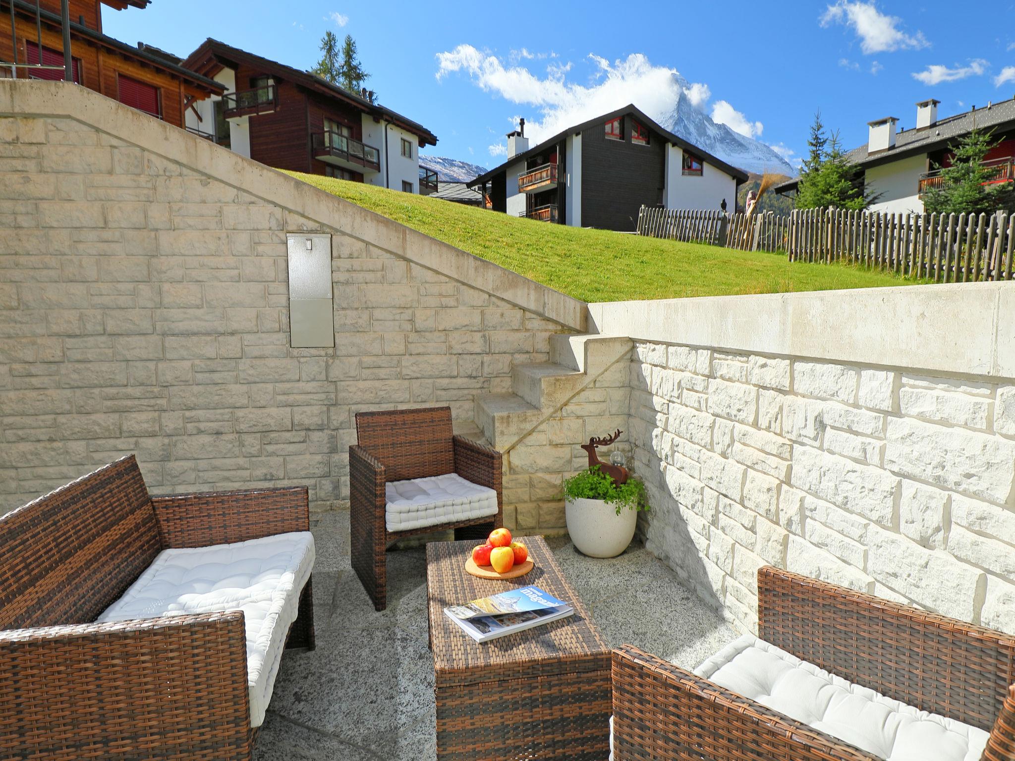Modern, beautiful, cosy apartment house "Haus Findelbach / Apt. Happy Lily", 4 storeys, built in 2011. In the district of Winkelmatten 1.2 km from the centre of Zermatt, in a quiet, sunny position, south facing position. For shared use: garden (fenced). Barbecue. In the house: storage room for skis, central heating system. Grocery 900 m, supermarket 1.3 km, restaurant 300 m, bakery 900 m, 22 minute walk to the centre, bus stop "Winkelmatten Kapelle" 300 m, railway station "Bahnhof Zermatt" 1.7 km. Mountain railway 700 m, ski rental 700 m, ski bus stop 300 m, ski school 1.3 km, children's ski school 1.3 km. The keys‘ handover takes place by the agency Interhome in Zermatt.