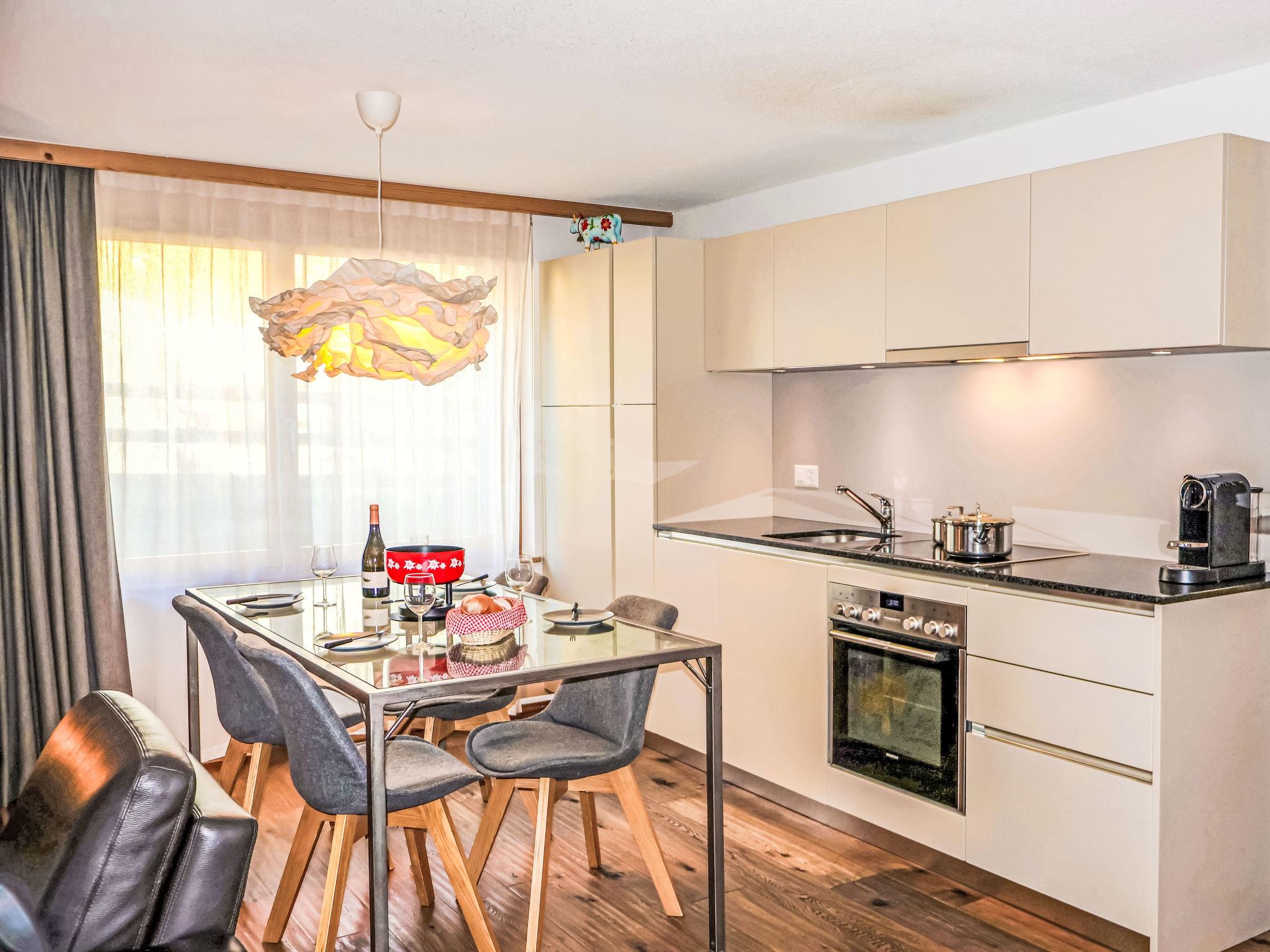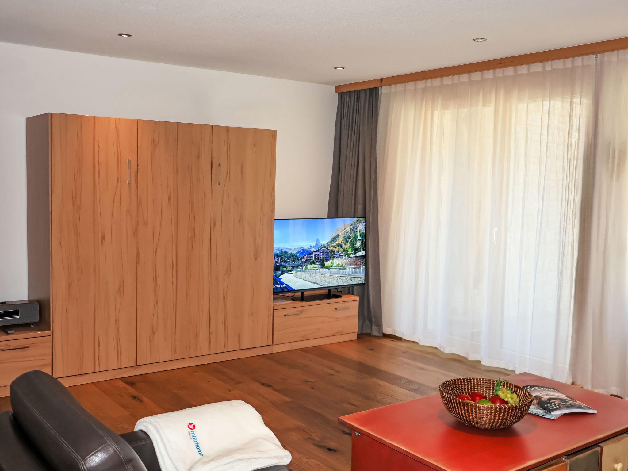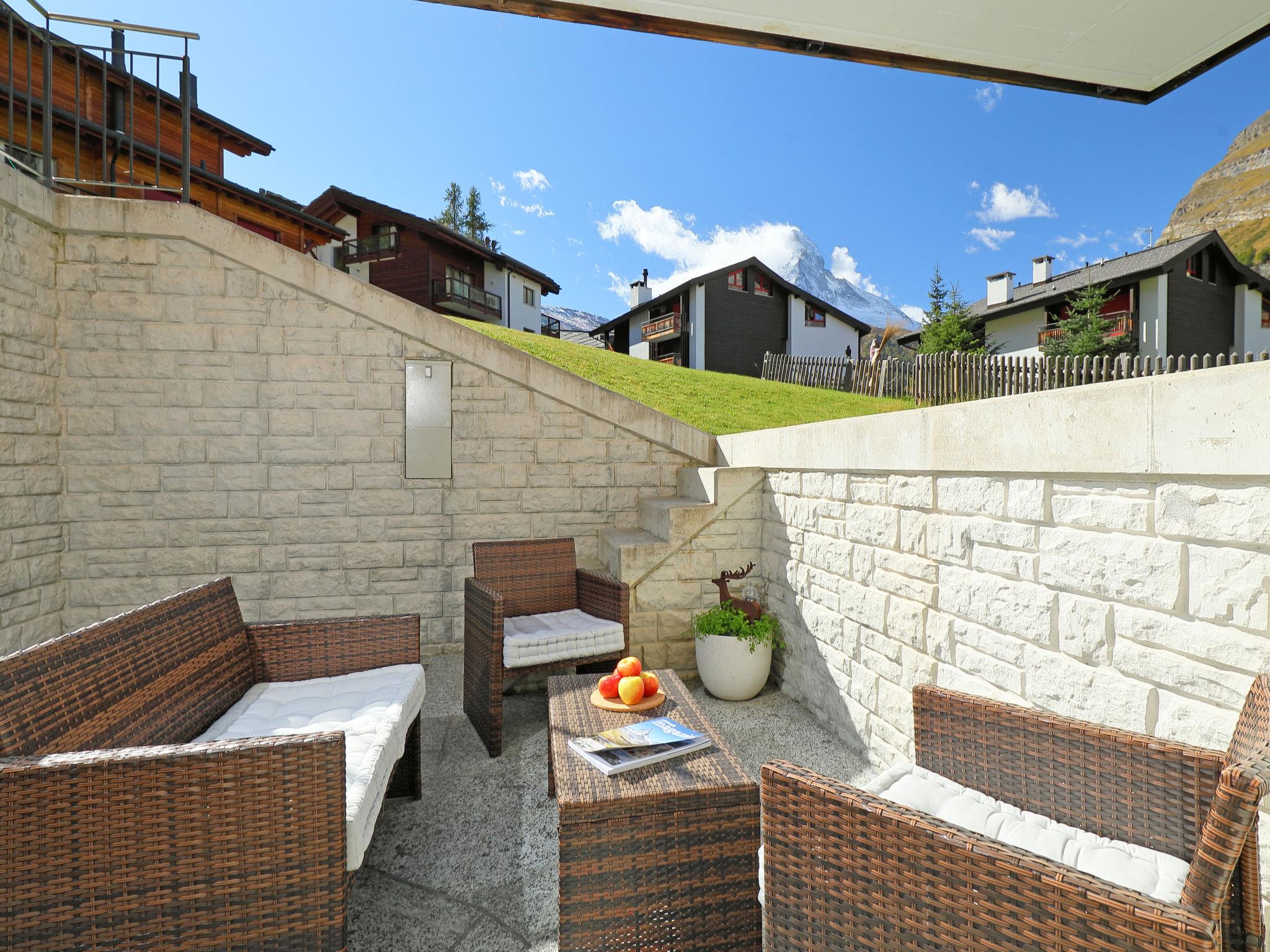 "Haus Findelbach / Apt. Happy Lily", 2-room apartment 70 m2, on the lower ground floor, south-west facing position. Spacious and bright, beautiful and modern furnishings: living/sleeping room with 1 double fold-away bed (2 x 90 cm, length 200 cm), flat screen, radio and DVD. Exit to the terrace, south facing position. 1 room with 1 double bed (2 x 90 cm, length 200 cm). Open kitchen (oven, dishwasher, 4 ceramic glass hob hotplates, toaster, kettle, freezer, electric coffee machine, fondue Set (cheese)) with dining table. Shower/WC, hydro massage shower. Underfloor heating. Parquet floors. Terrace, south facing position. Terrace furniture, barbecue. Beautiful view of the Matterhorn. Facilities: hair dryer. Internet (WiFi). Please note: non-smokers only. CH3920.75.2
