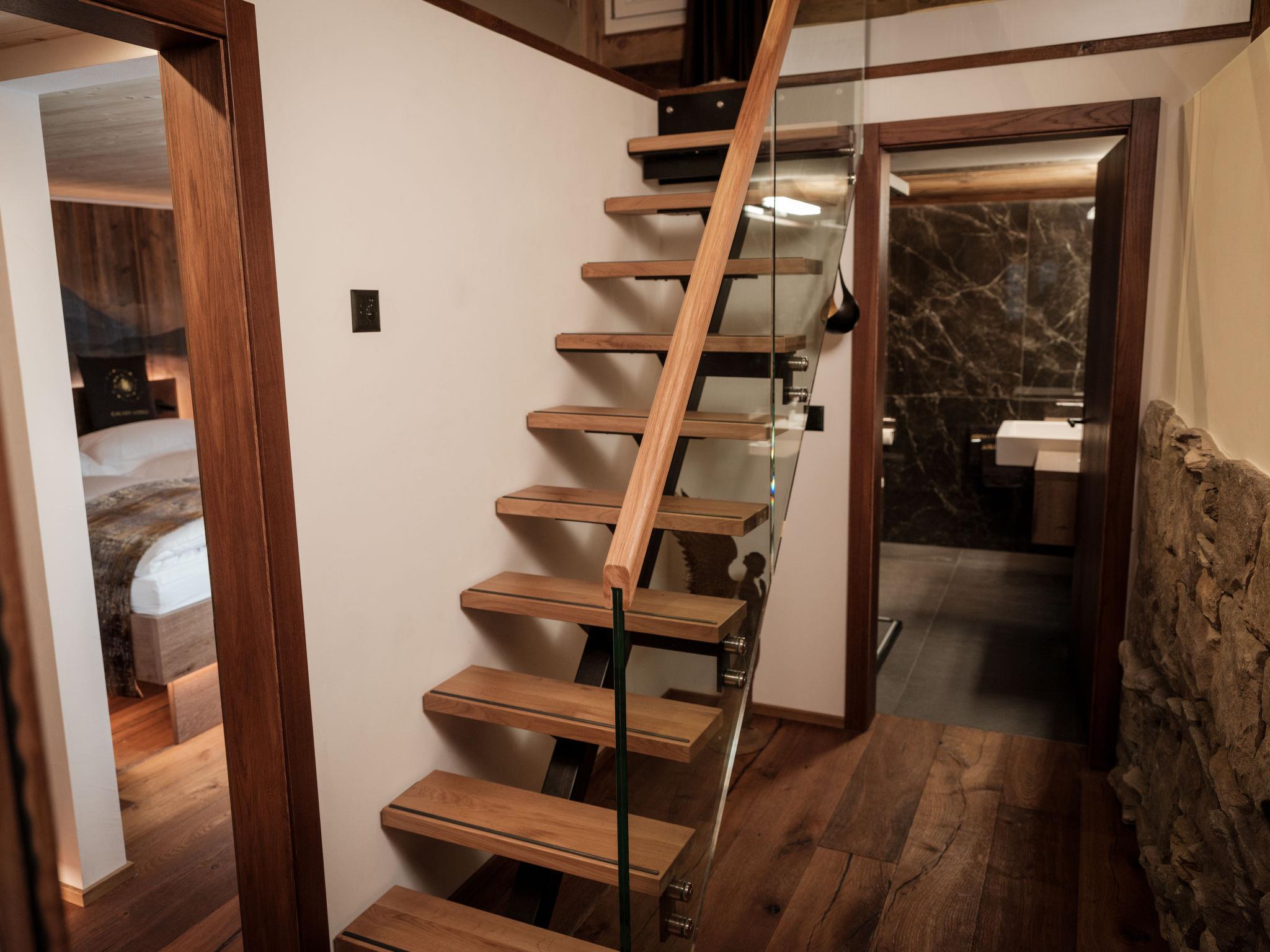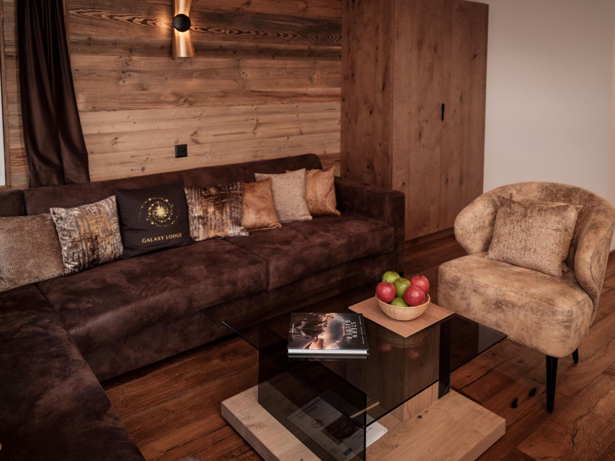 "Galaxy Lodge", 3-room apartment 52 m2 on 2 levels on 1st floor, east facing position. Fully renovated in 2023, beautiful and modern furnishings: living room with 1 double sofabed (160 cm, length 200 cm), TV. Exit to the balcony. 1 room with 1 double bed (1 x 180 cm, length 200 cm). Kitchen (oven, dishwasher, 4 ceramic glass hob hotplates, toaster, kettle, freezer, electric coffee machine). Shower/WC. Heating. Upper floor: 1 room with 1 double bed (1 x 180 cm, length 200 cm). Small balcony, west facing position. Partial view of the mountains. Facilities: hair dryer. Internet (WiFi, free). Please note: non-smokers only.