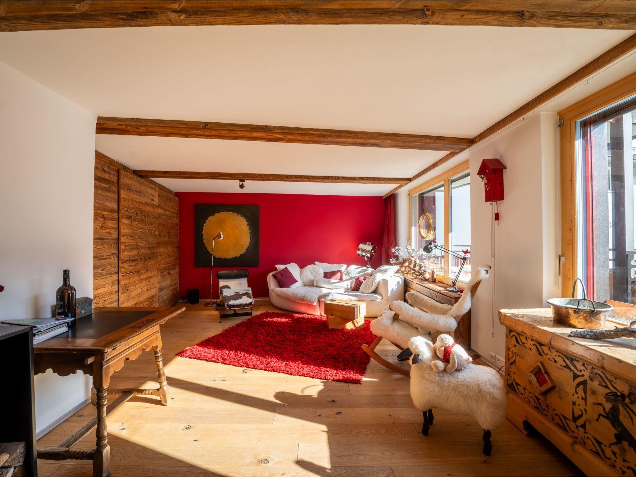 Spacious, cosy 3 ½-room duplex flat with Matterhorn view in the sunny, quiet Winkelmatten district. Furnished with lots of old wood, selected antiques and various modern elements.