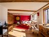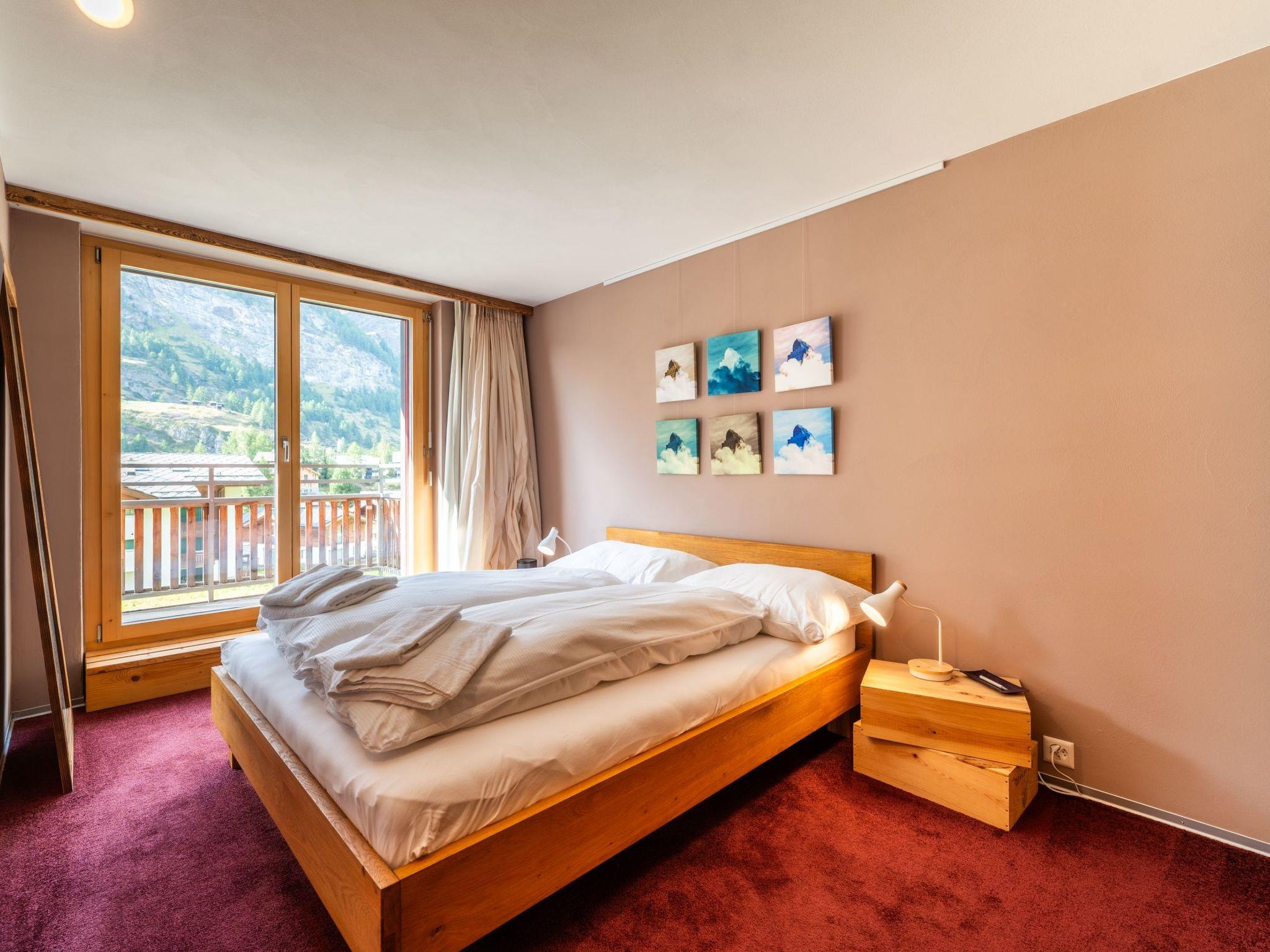 - Bedroom with double bed, sliding wardrobe and west-facing balcony with Matterhorn view
