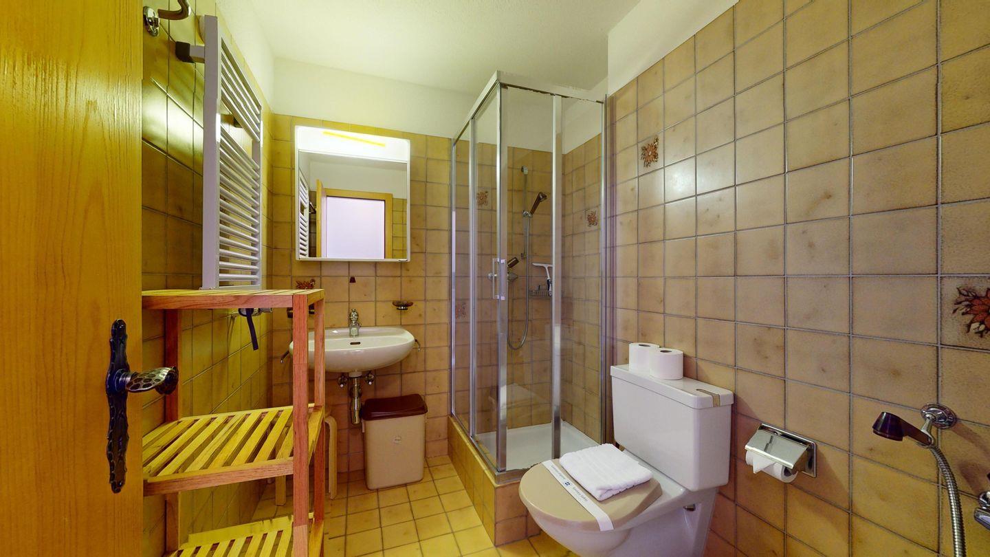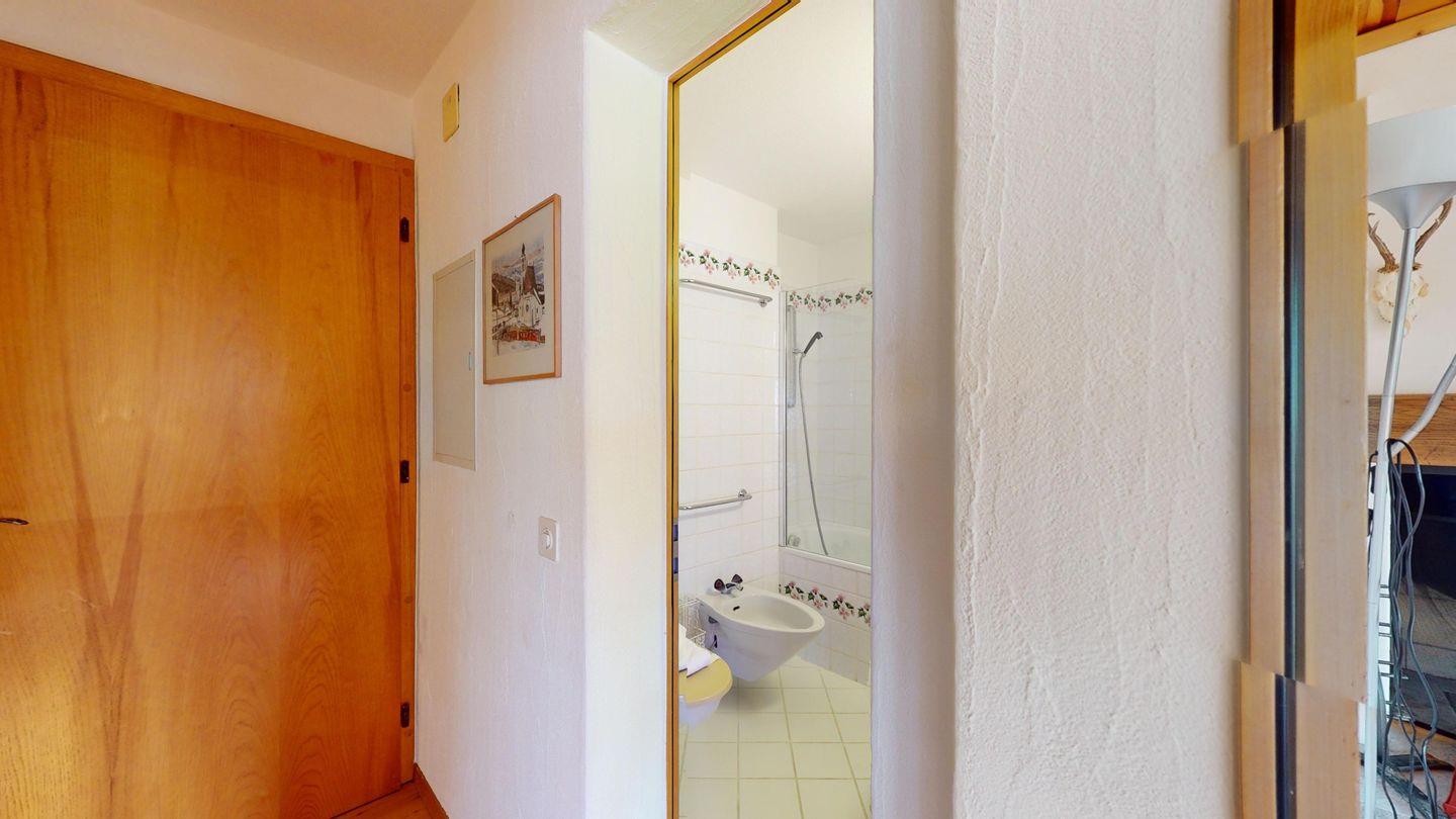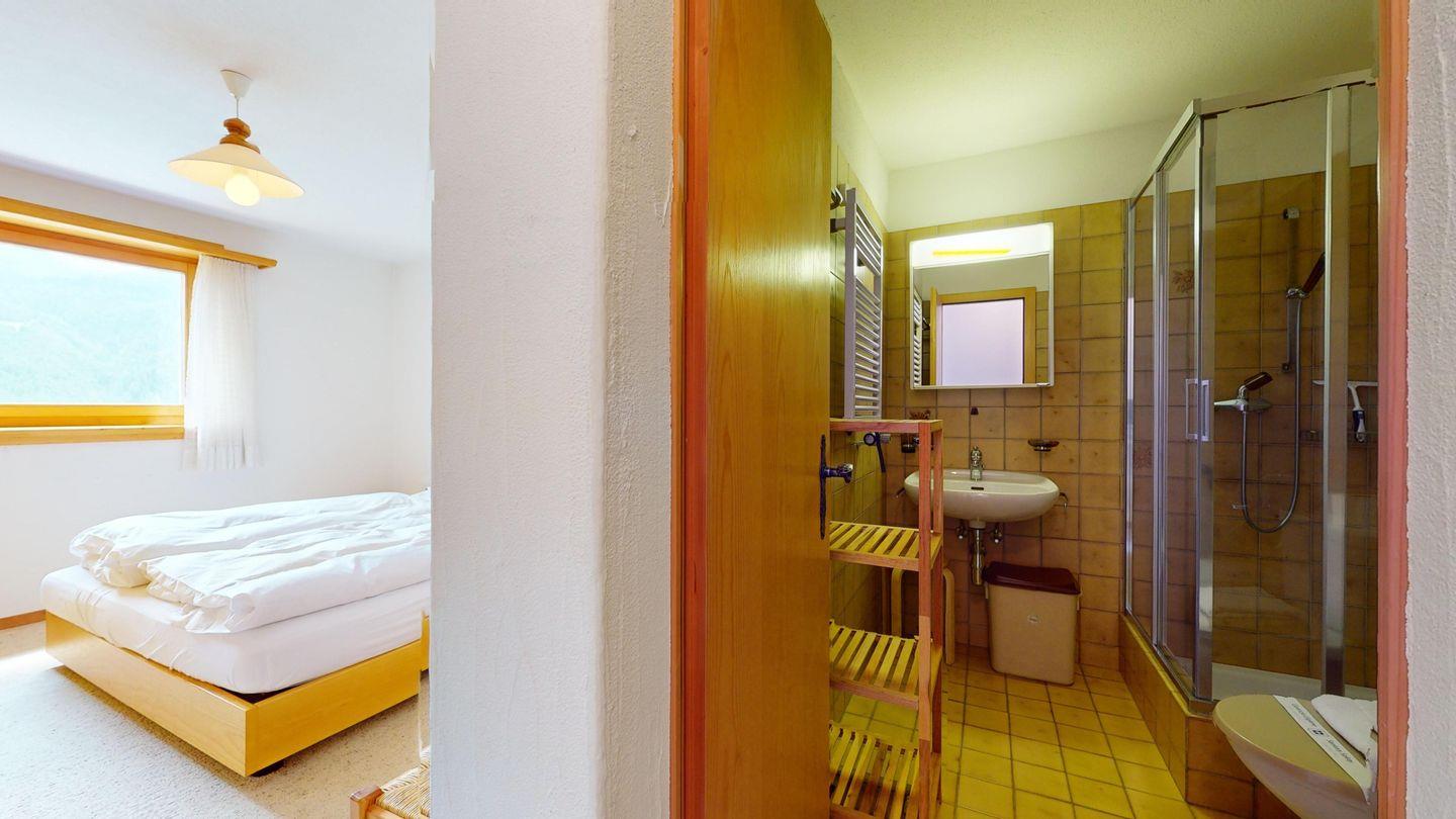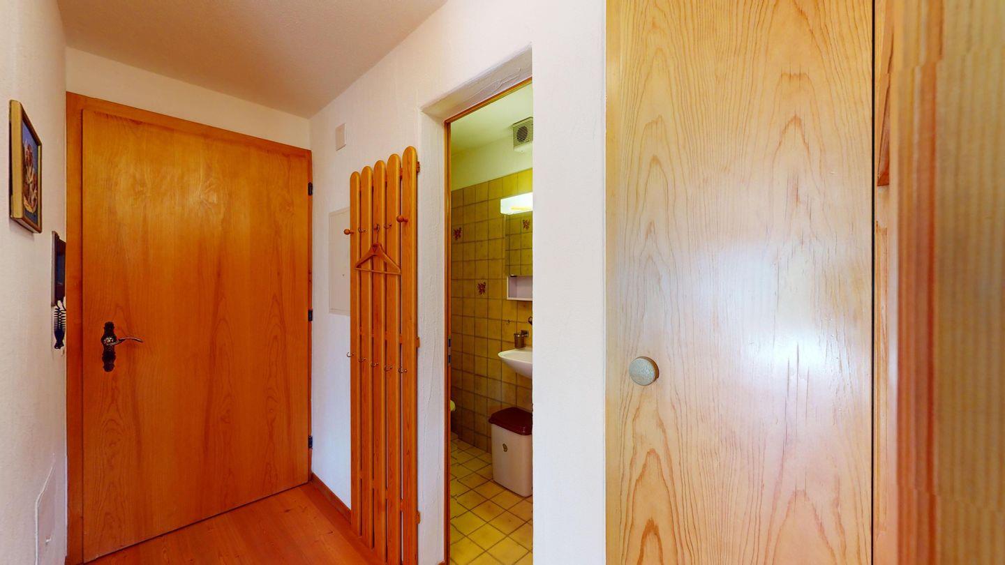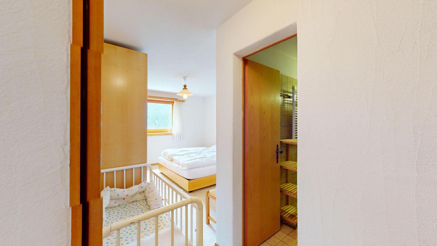 5-½ Zimmerwohnung an sonniger Lage, mit herrlicher Sicht ins Tal und auf mehreren Etagen verteilt. Eingang mit Garderobe und Badezimmer mit Wanne, WC, Bidet und Waschbecken. Wohnzimmer mit TV, Kamin, Terrasse und Garten. Küche mit Herd, Ofen, Kühlschrank und Geschirrspüler. Esszimmer mit zwei Esstischen und Terrasse. Gäste-WC. Ein Einzelschlafzimmer. Ein Doppelschlafzimmer mit eigenem Badezimmer (Dusche, WC, Bidet und Lavabo). Ein Doppelschlafzimmer, und ein Schlafzimmer mit zwei Etagenbetten. Badezimmer mit Wanne, WC, Bidet und Waschbecken. Gemeinsame Waschküche und Skiraum. Zwei gedeckte Parkplätze. Haustiere sind nicht erlaubt. Nichtraucherwohnung.