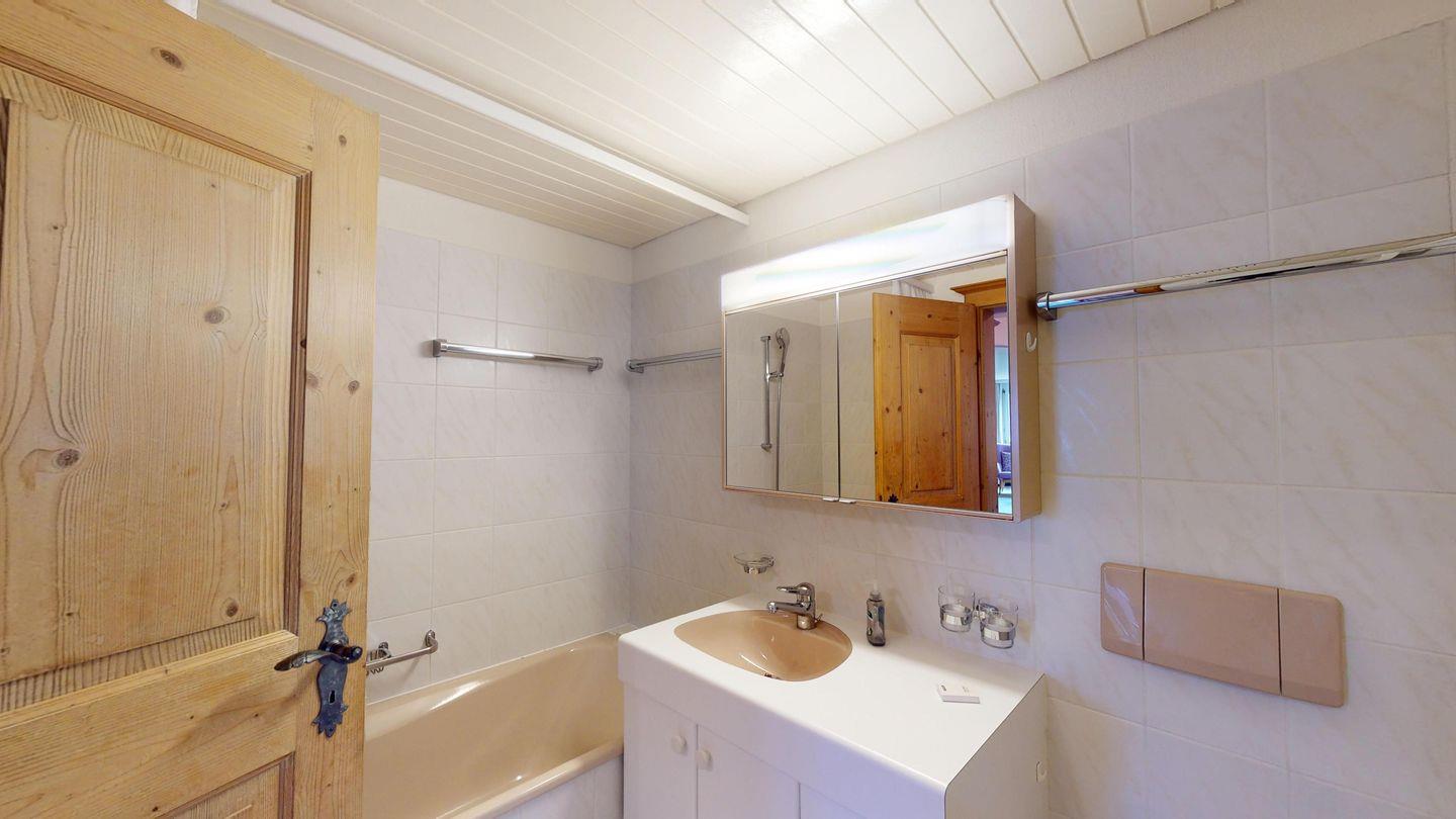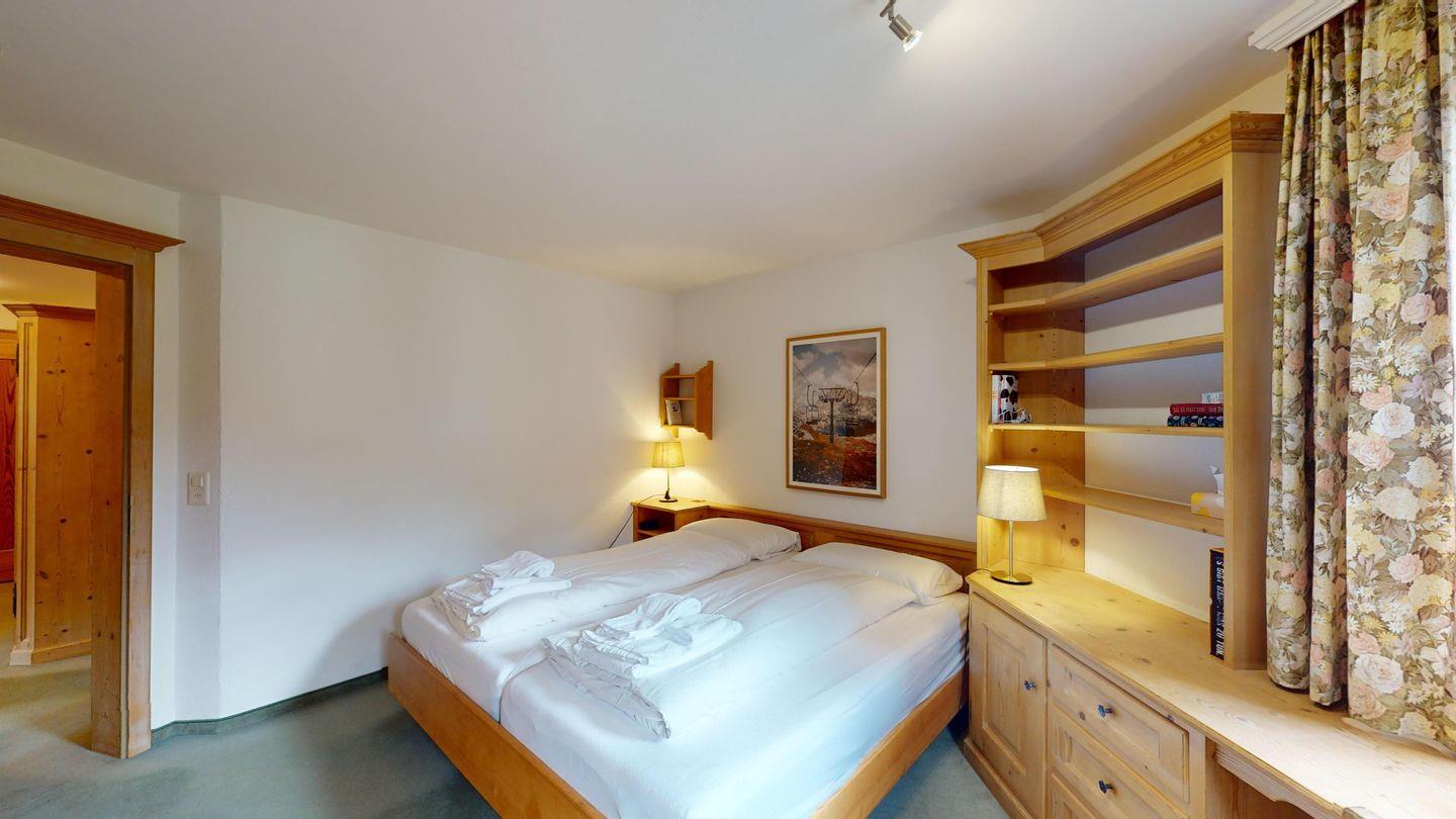 Die Ferienwohnung hat ein Schlafzimmer mit Doppelbett sowie ein Schlafzimmer mit zwei getrennten Betten. Sie verfügt über ein Badezimmer mit Dusche und ein Badezimmer mit Badewanne. Weiter finden Sie ein geräumiges Wohnzimmer mit Essecke, Apple TV mit Netflix (eigener Account notwendig), einer offenen und komplett eingerichteten Küche sowie einem Cheminée. Vom Wohnzimmer gelangen Sie auf den sonnigen Südbalkon. Ein Skiraum steht zur gemeinschaftlichen Nutzung zur Verfügung. Ein Garagenplatz kann kostenpflichtig dazu gebucht werden.