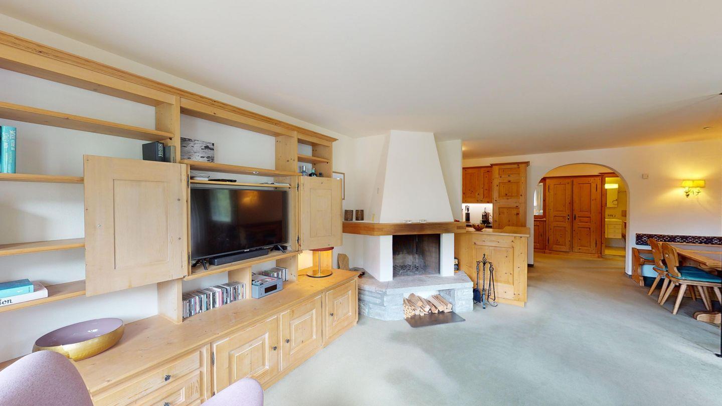 Gepflegte und ruhig gelegene 3.5 Zimmer-Wohnung in der Residenza Belvair. Die Wohnung wurde mit viel Holz ausgestattet und dies verleiht eine heimelige Atmosphäre.