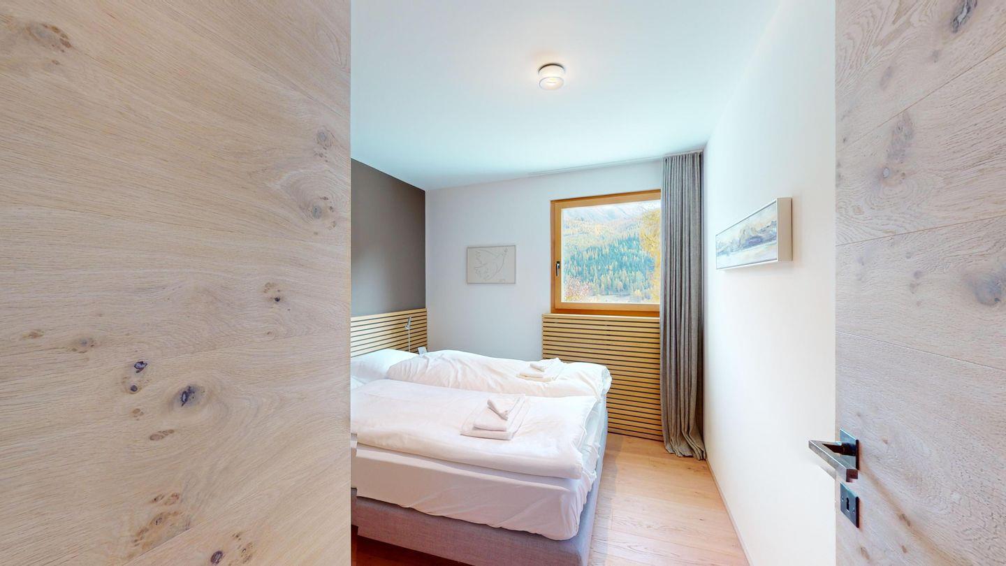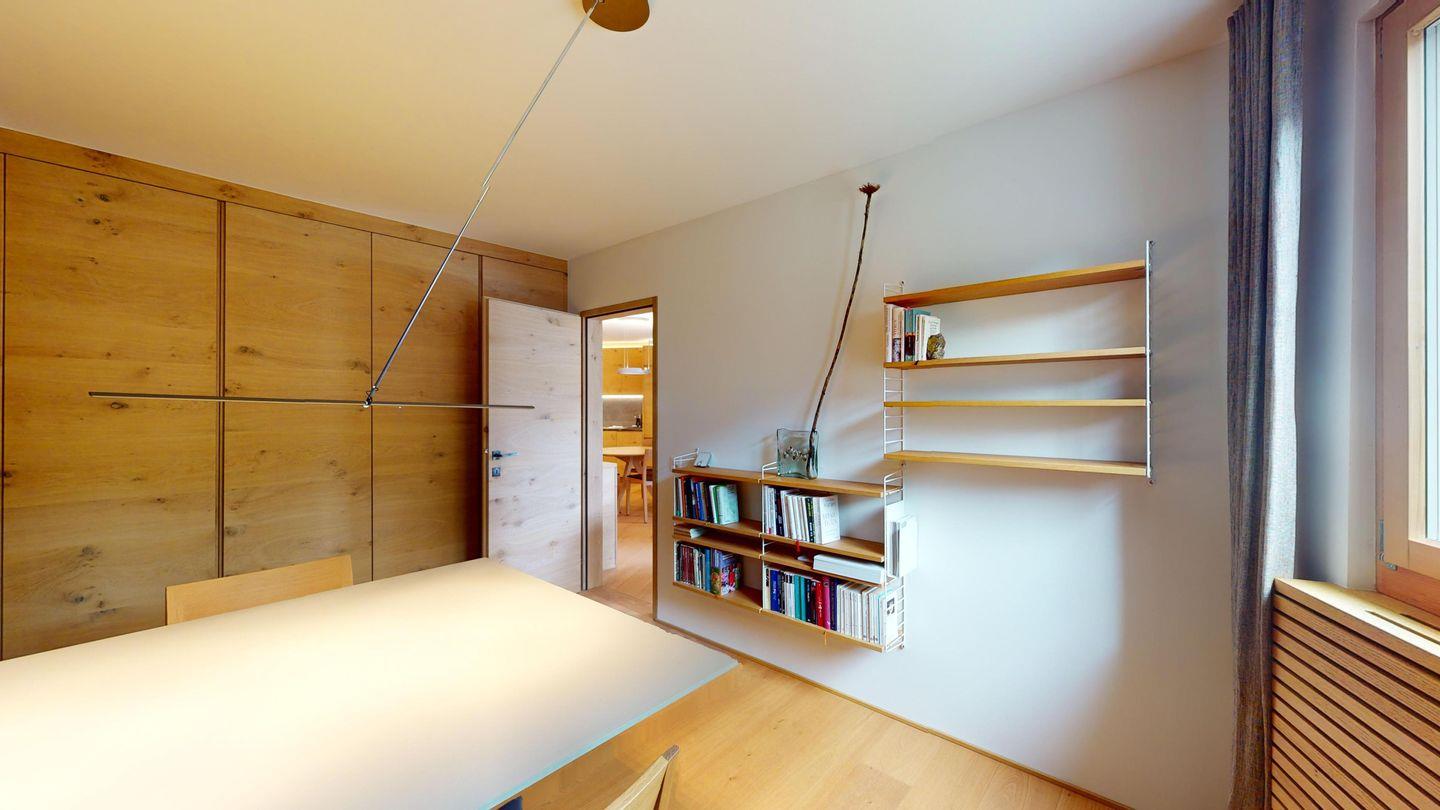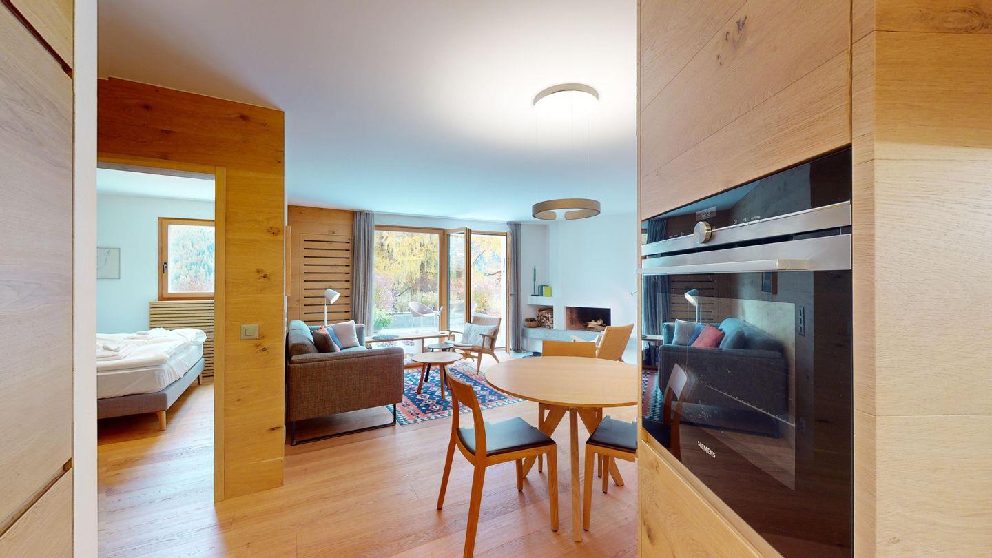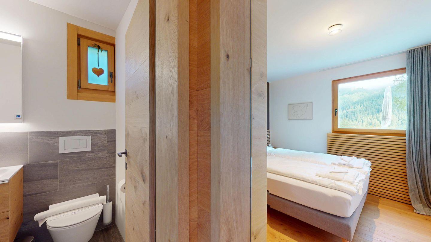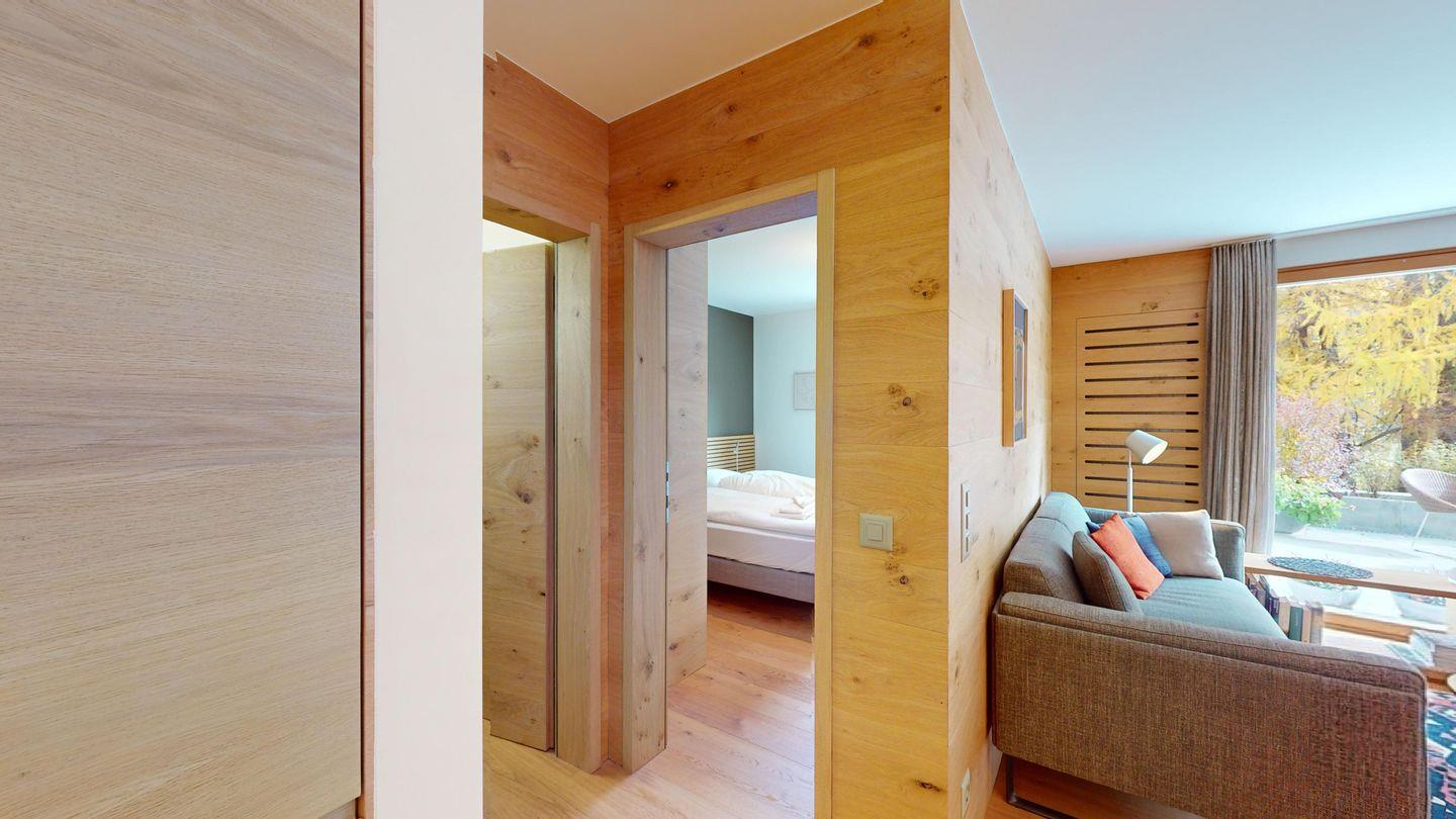 Gemütliche 3½-Zimmerwohnung im 1. Stock. Eingang mit Garderobe. Wohnzimmer mit Cheminée und grosse Terrasse mit Esstisch und Gasgrill. Internet und Fernseher. Schlafzimmer mit Doppelbett (160cm breit). Offene Küche mit Herd, Ofen, Geschirrspüler, Kühlschrank und Chicco d'Oro Kaffeemaschine. Geschlossenes Büro mit Schreibtisch. Badezimmer mit Dusche, WC, Lavabo. Parkplatz in einer Einzelbox. Gemeinschaftliche Waschküche und Skiraum mit zwei Schlitten. Nichtraucherwohnung. Haustiere sind nicht erlaubt.